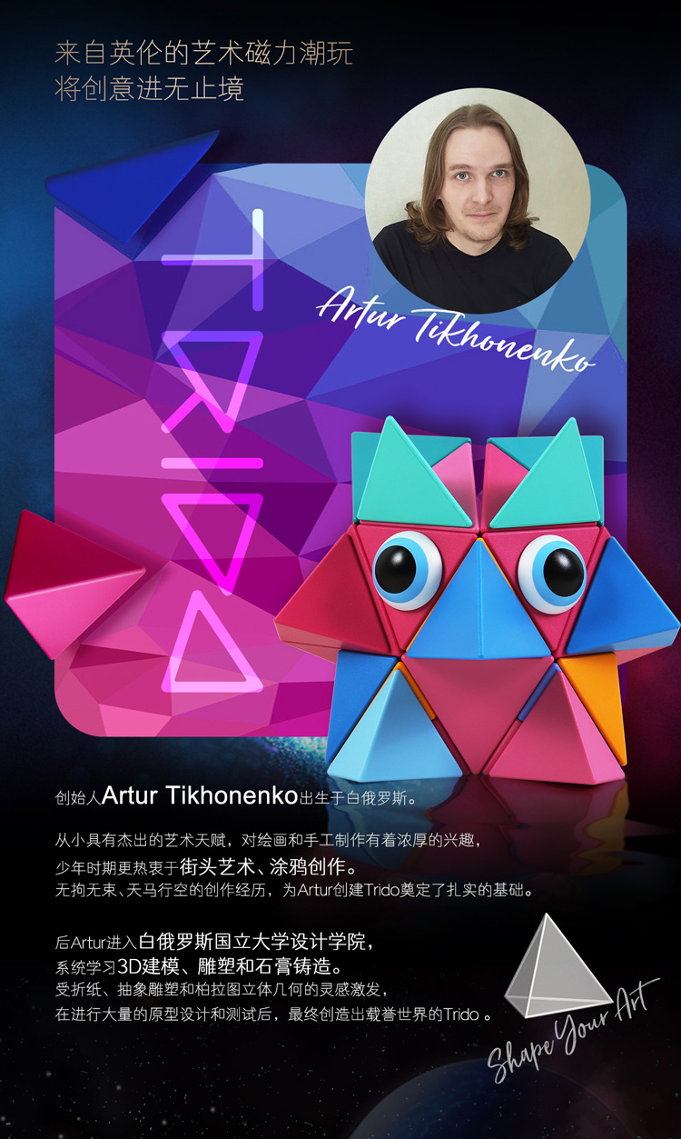 Trido磁力积木百变几何造型拼搭磁性艺术柏拉图积木儿童益智玩具