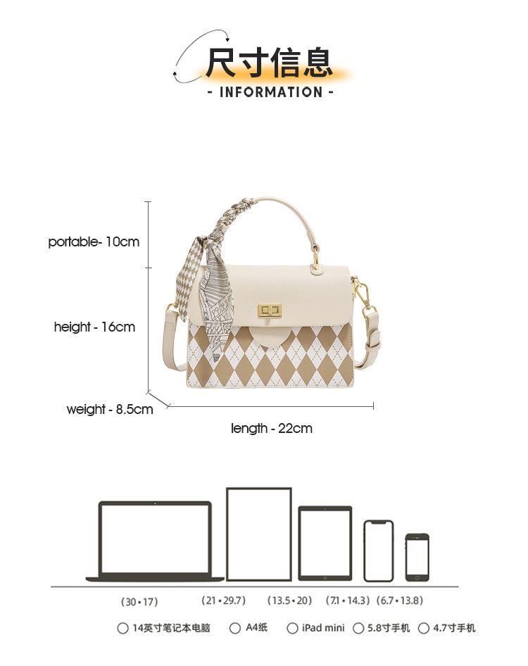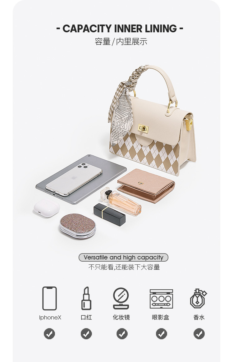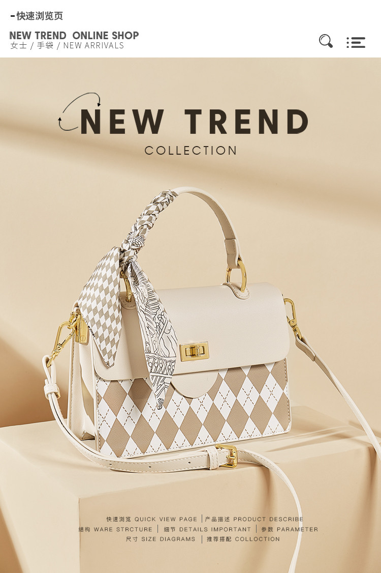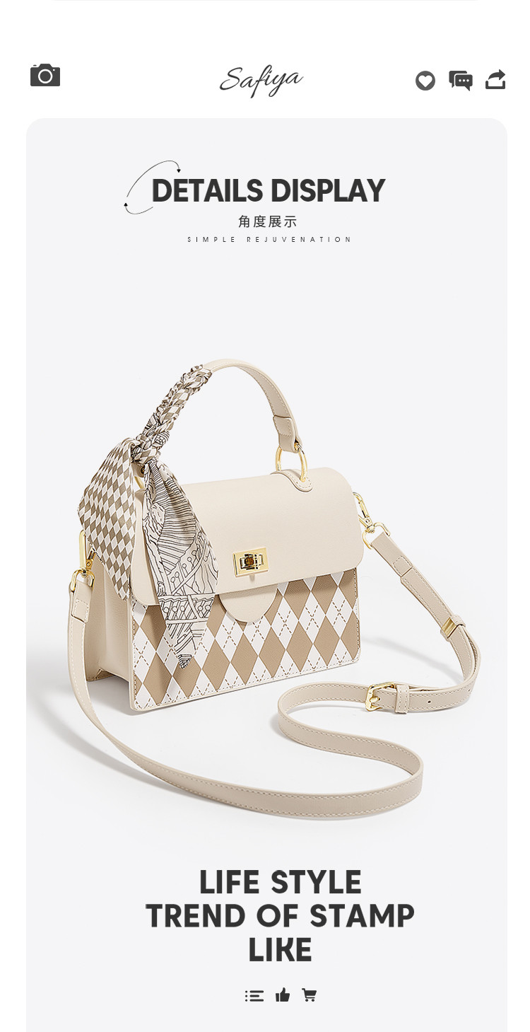 Safiya/索菲娅2022新款菱格百搭轻奢单肩包包女斜挎包手提女包 SF900156Y