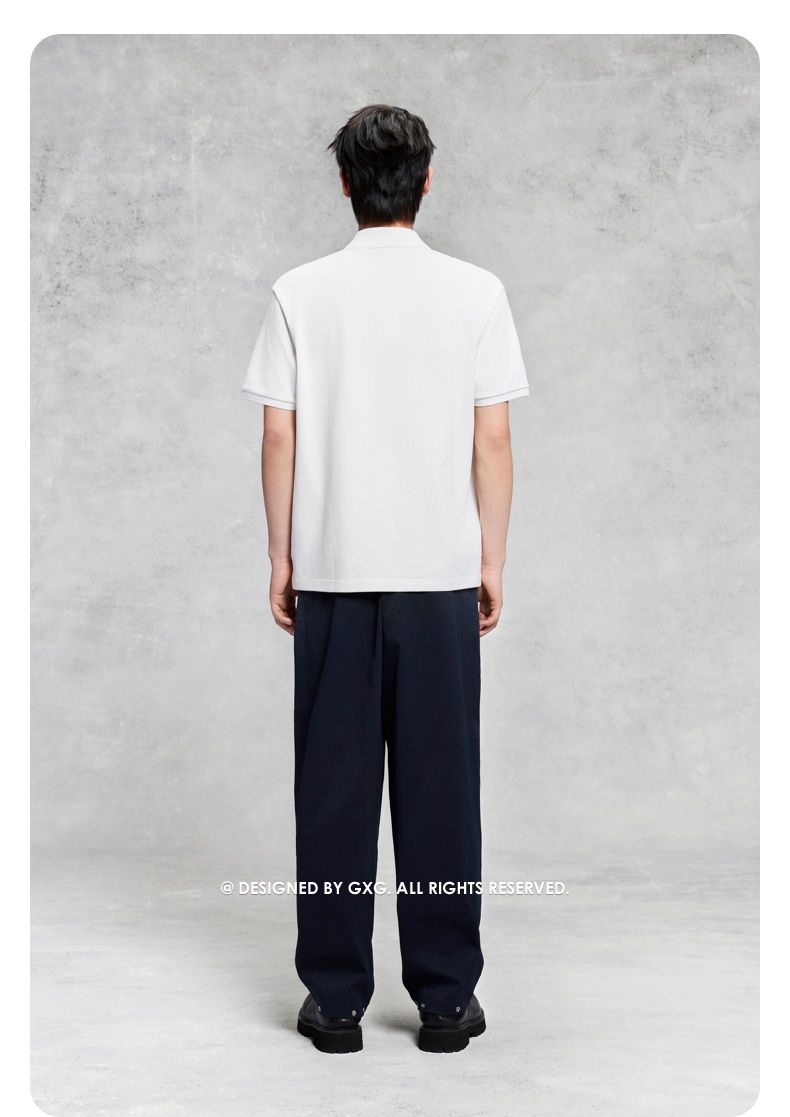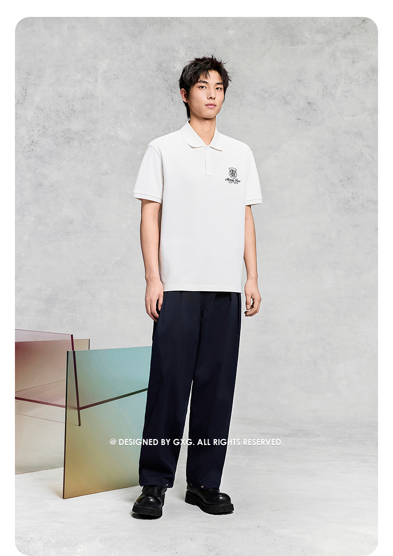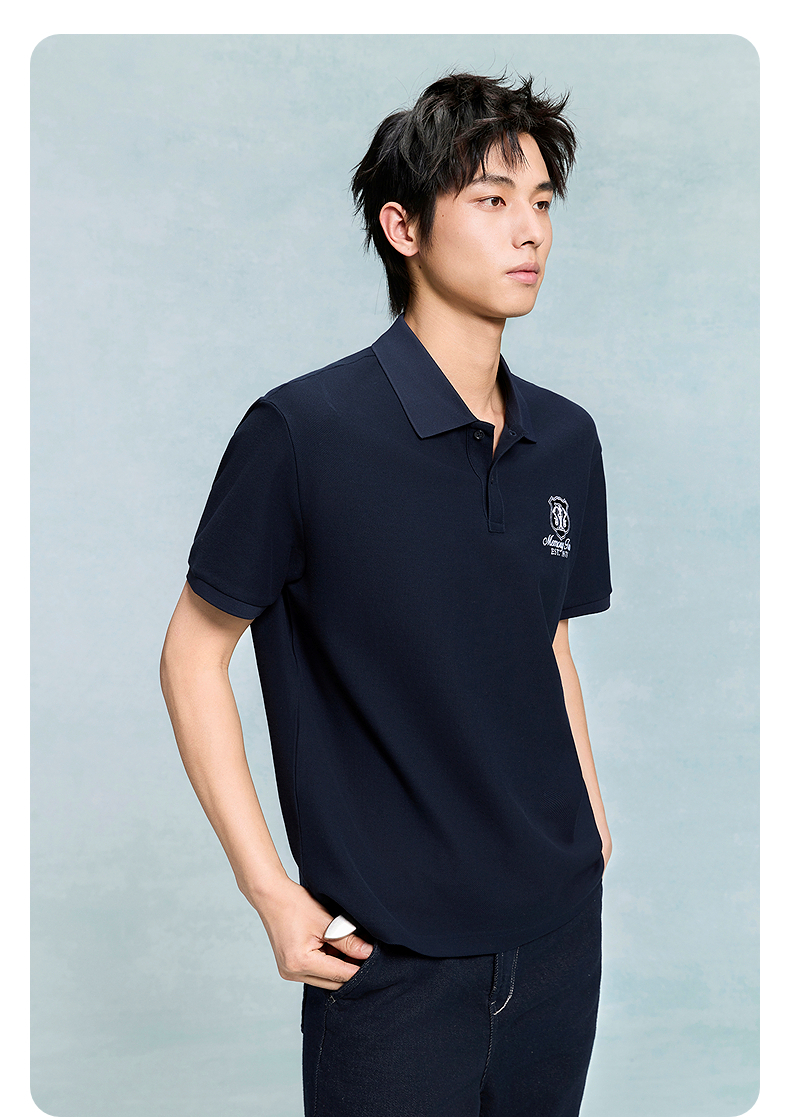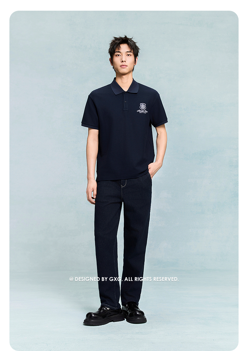 GXG男装 藏青色通勤polo衫男士上衣简约翻领短袖 25夏热卖