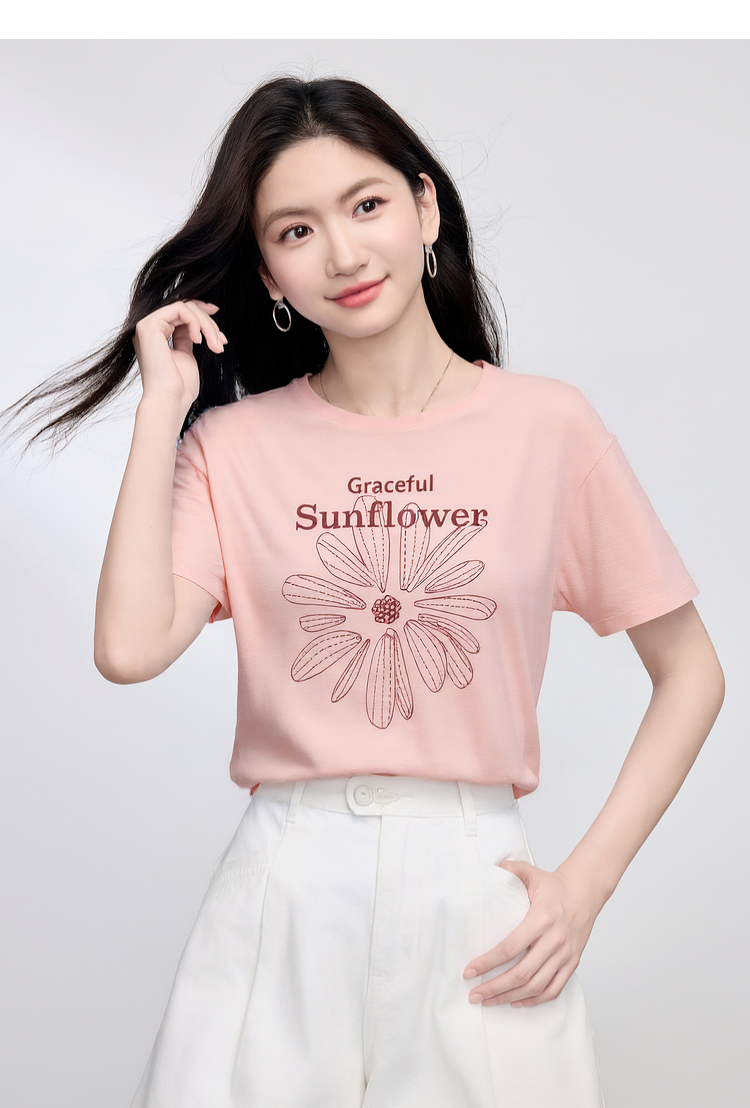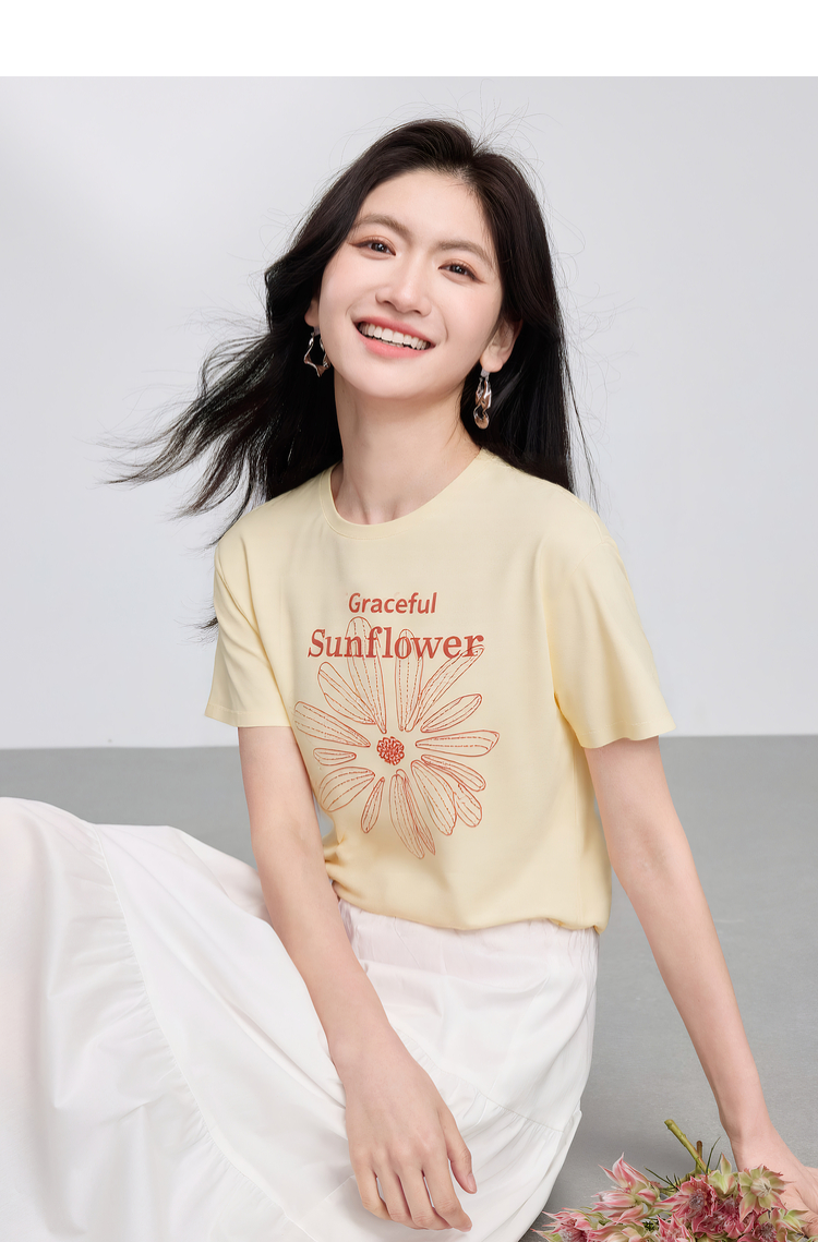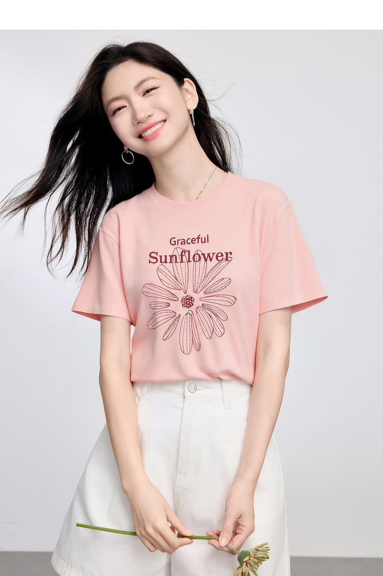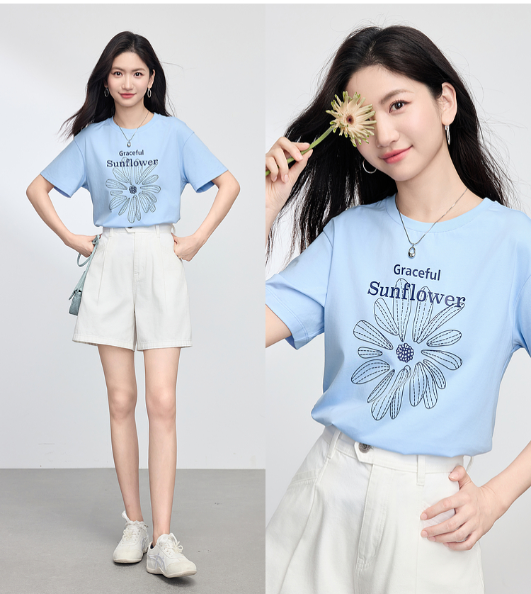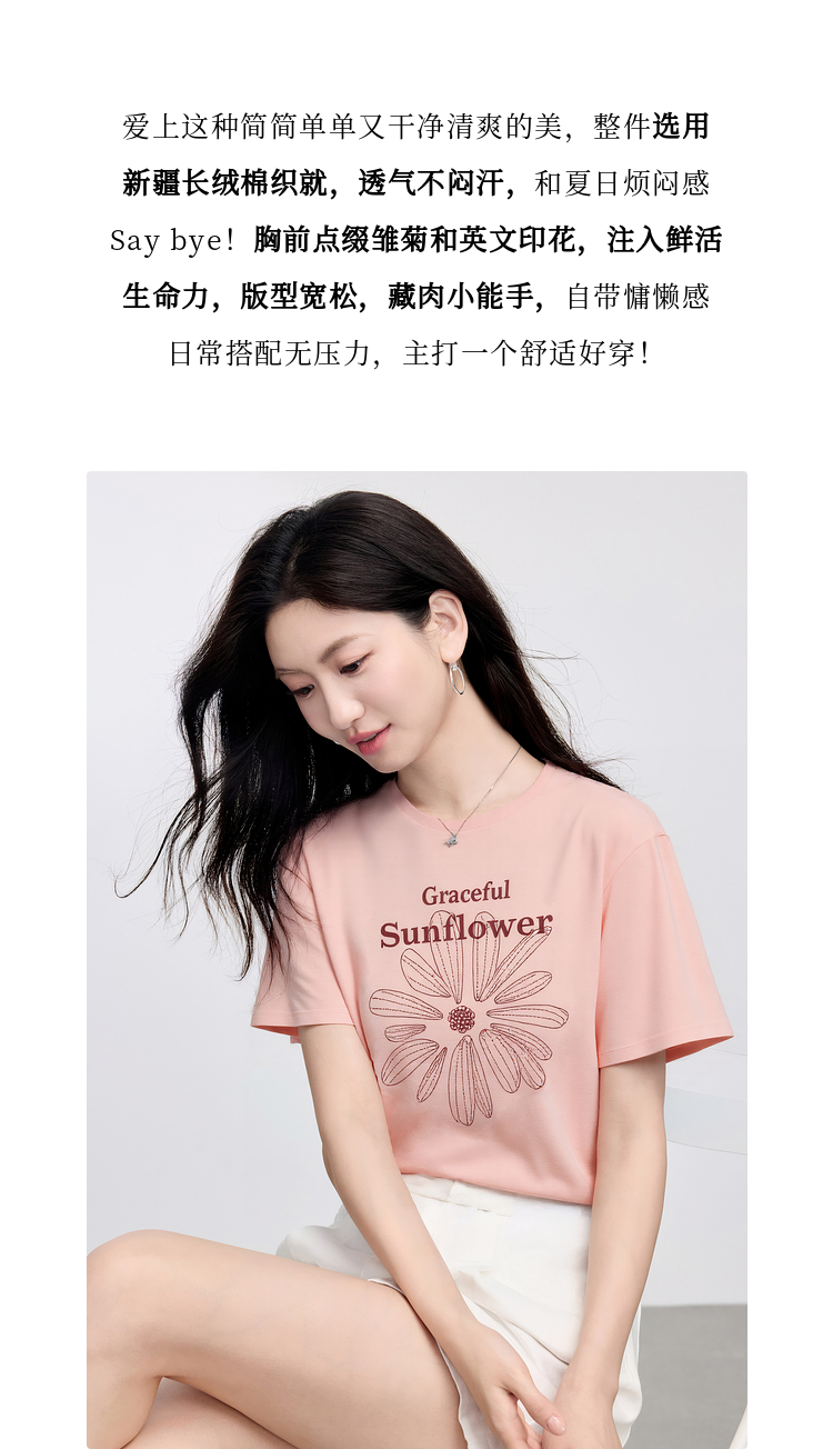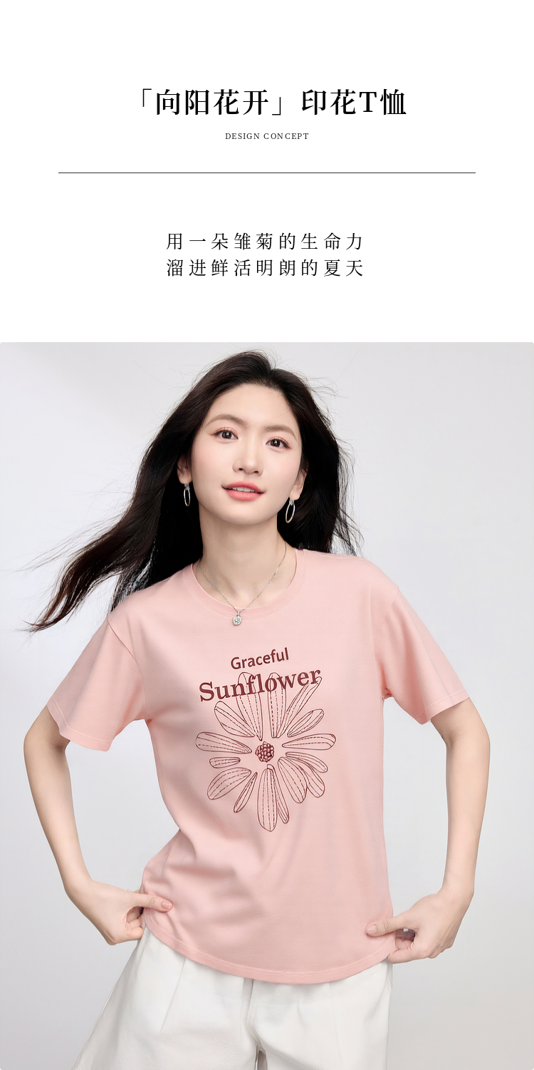 【专属特价】熙世界小雏菊印花t恤女短袖显瘦通勤休闲时尚减龄上衣2025夏新款
