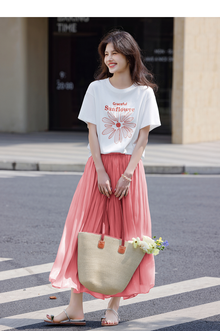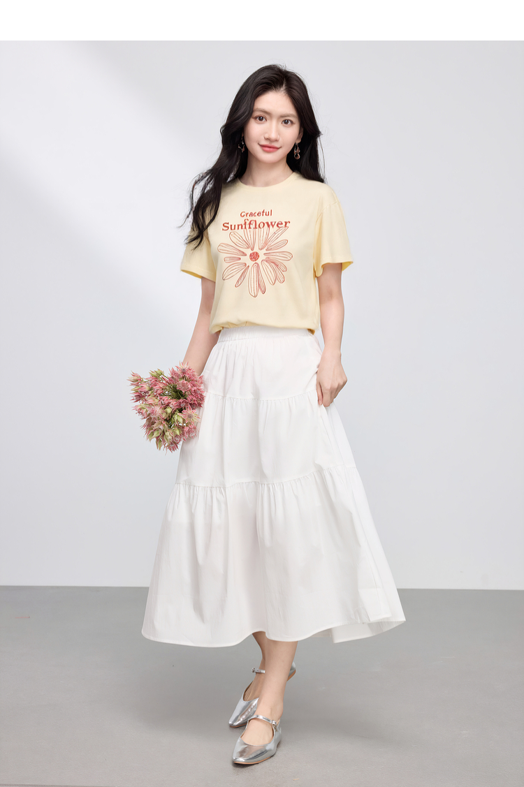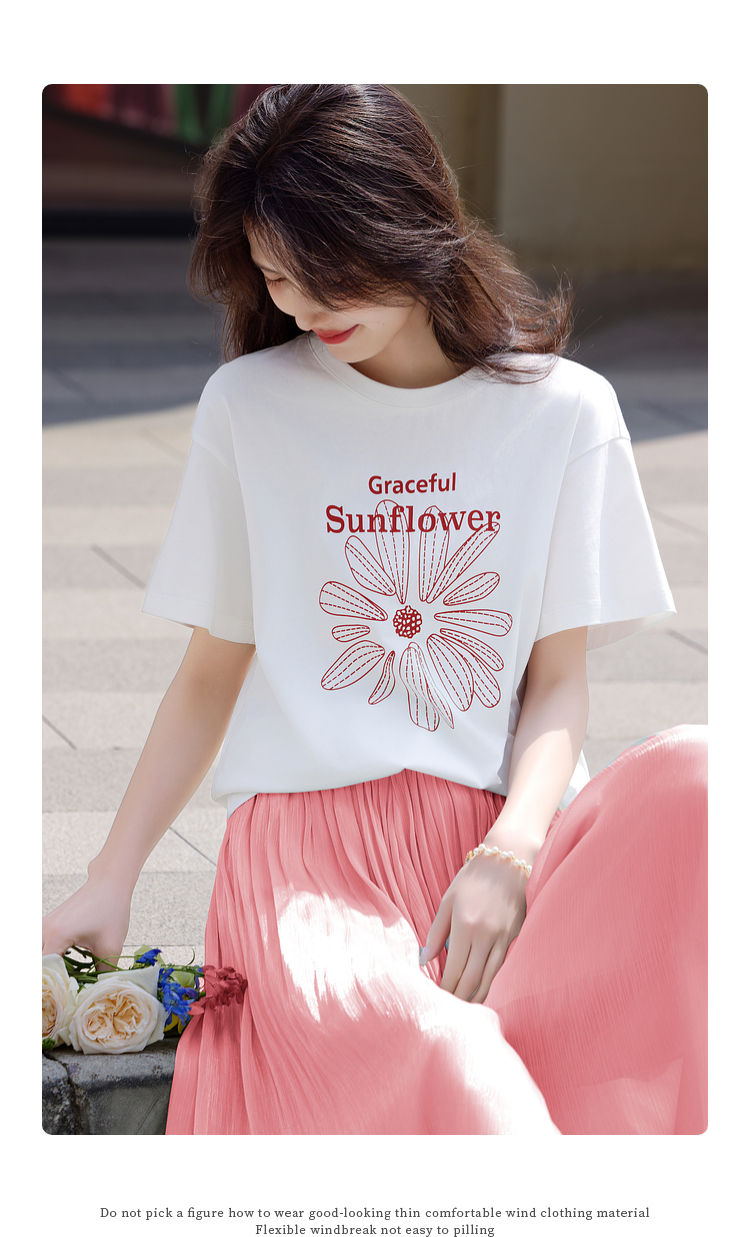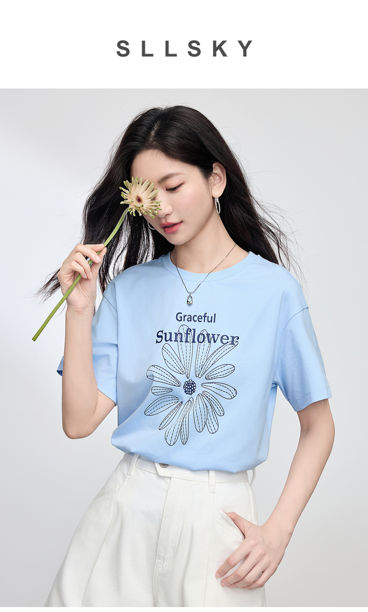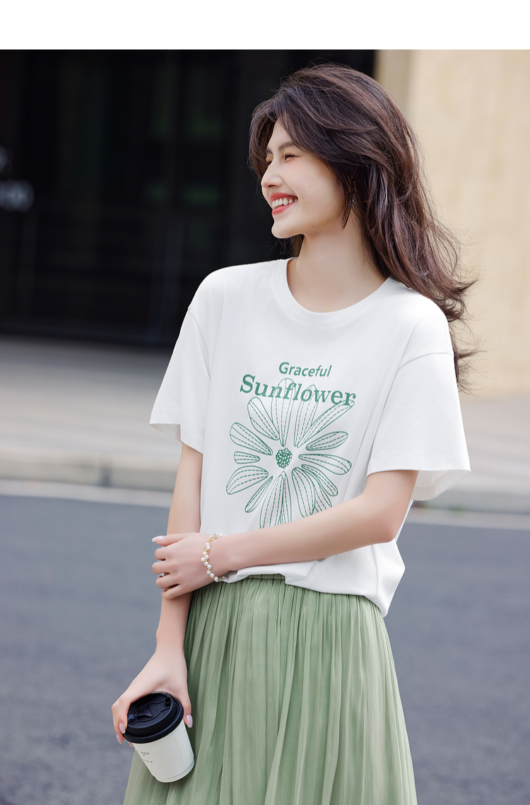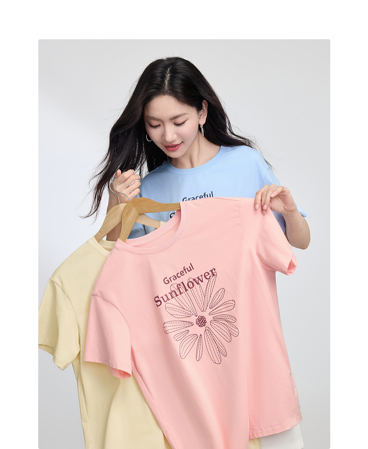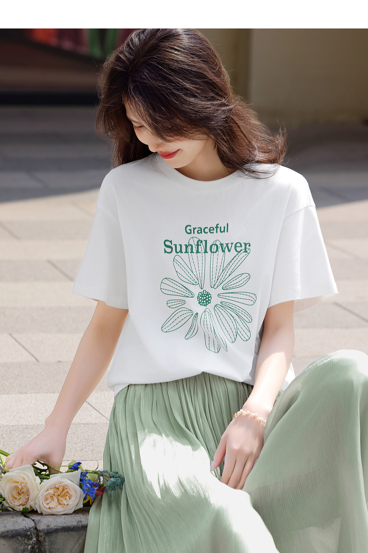 【专属特价】熙世界小雏菊印花t恤女短袖显瘦通勤休闲时尚减龄上衣2025夏新款