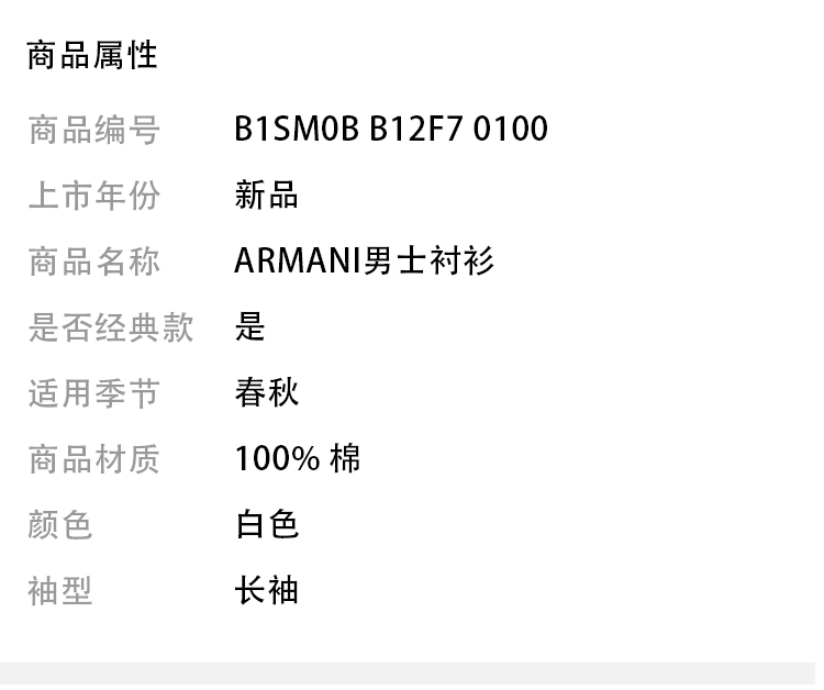 EMPORIO ARMANI 阿玛尼 男士长袖衬衫 白色 B1SM0B B12F7 0100