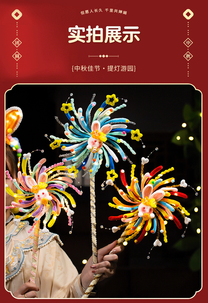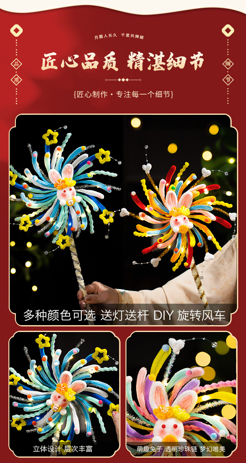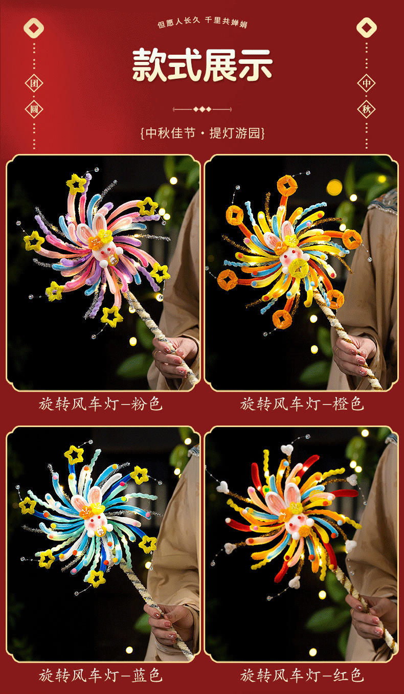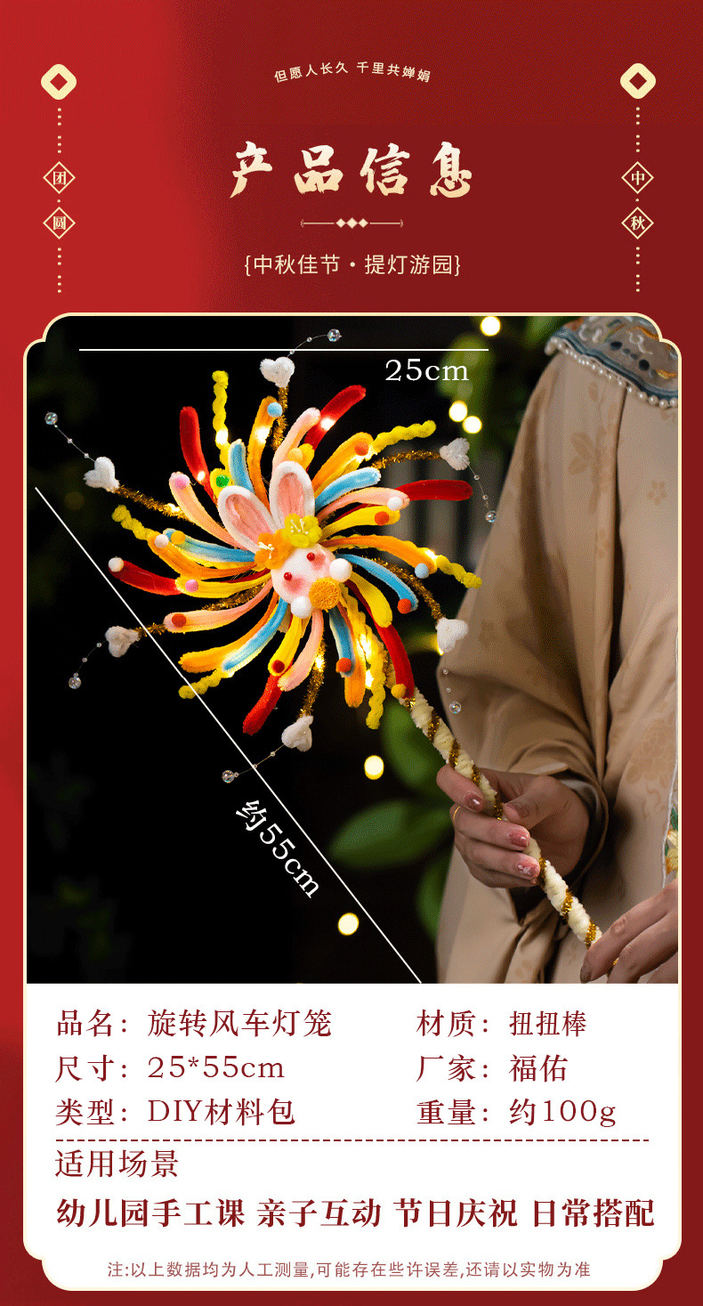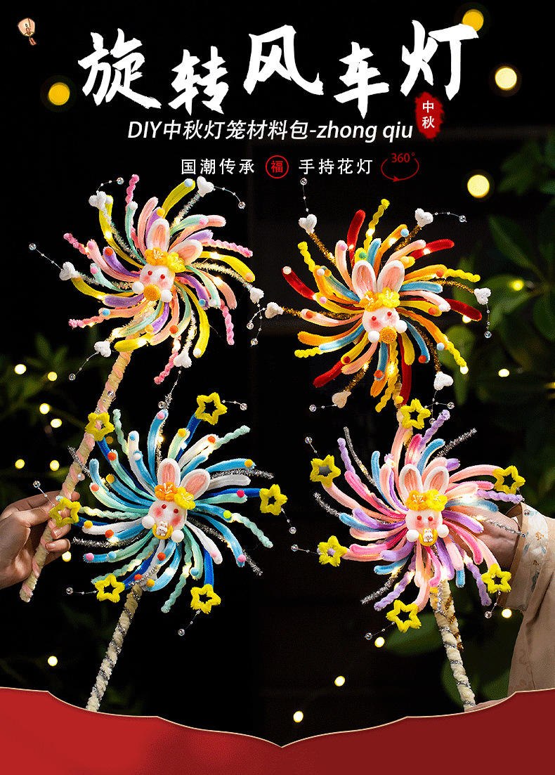 【手持花灯风车灯】福佑DIY中秋灯笼材料包灯笼 手持蜻蜓蝴蝶灯笼 能发光的手持花灯立体设计材料包小花灯