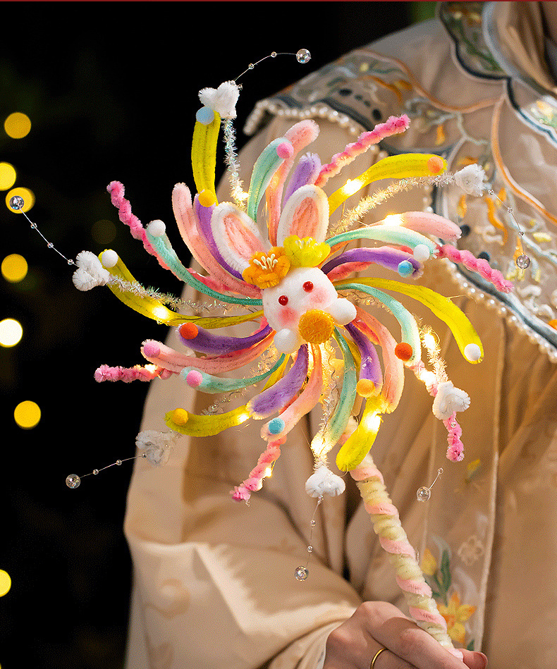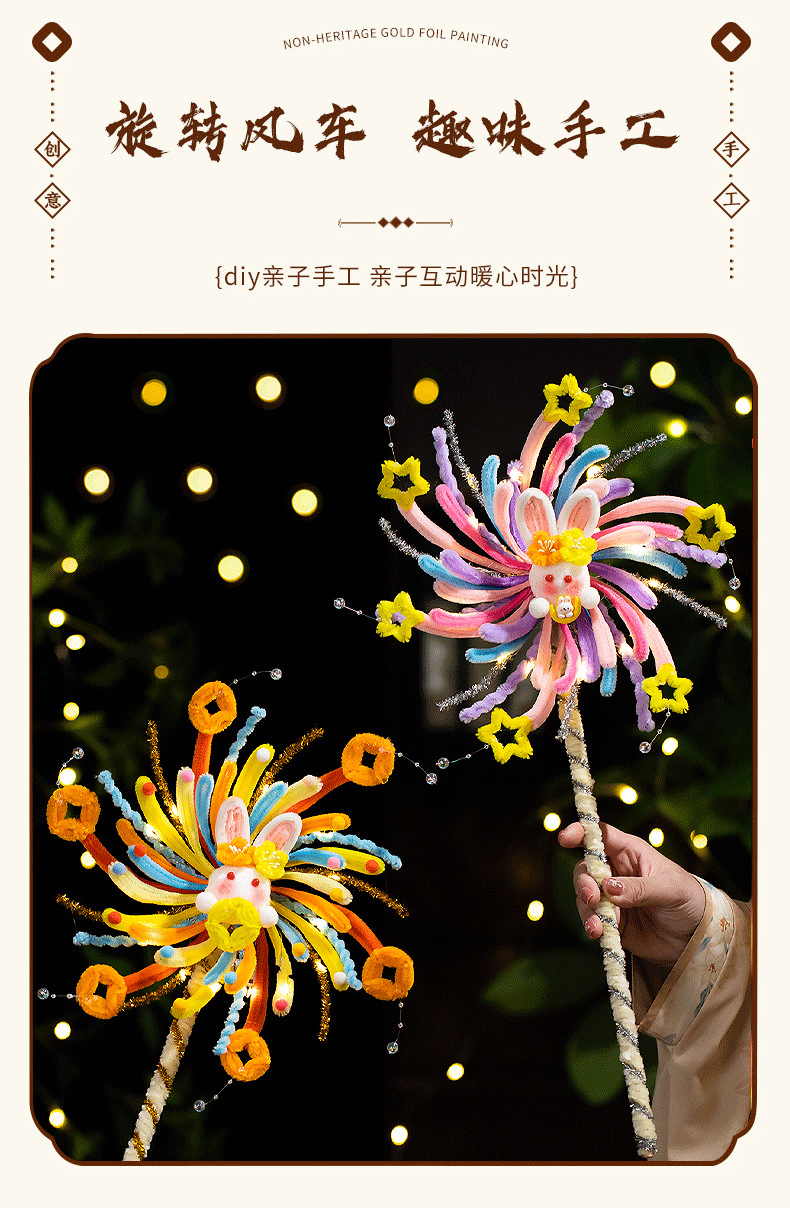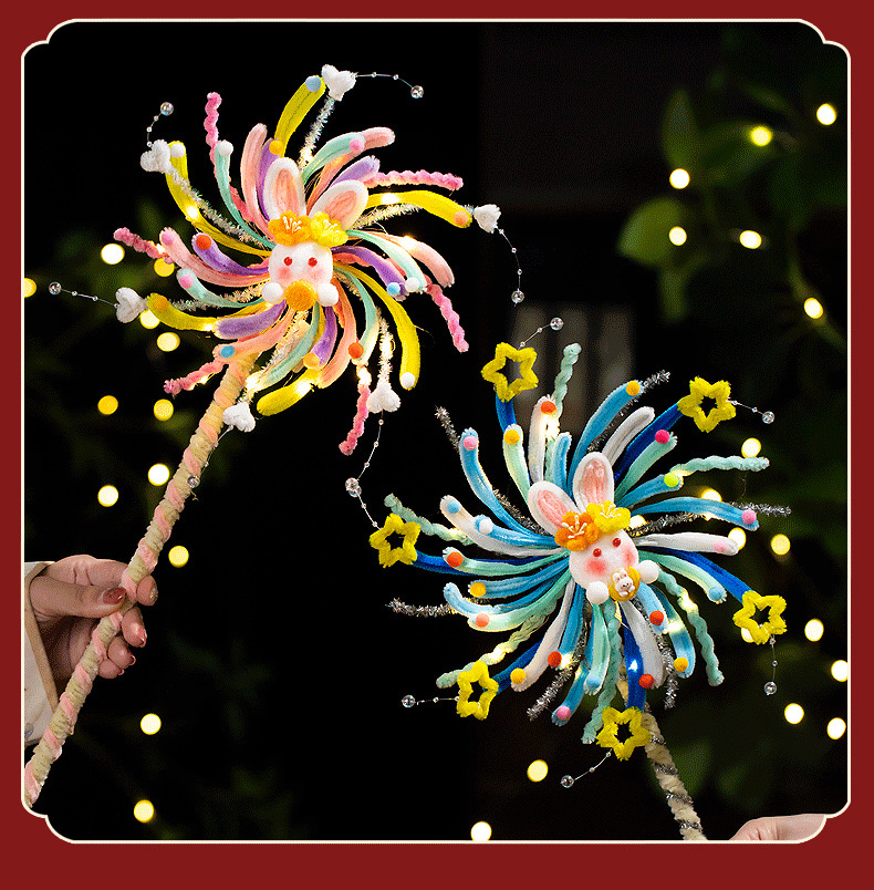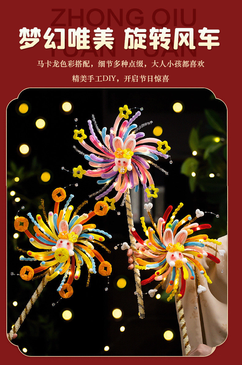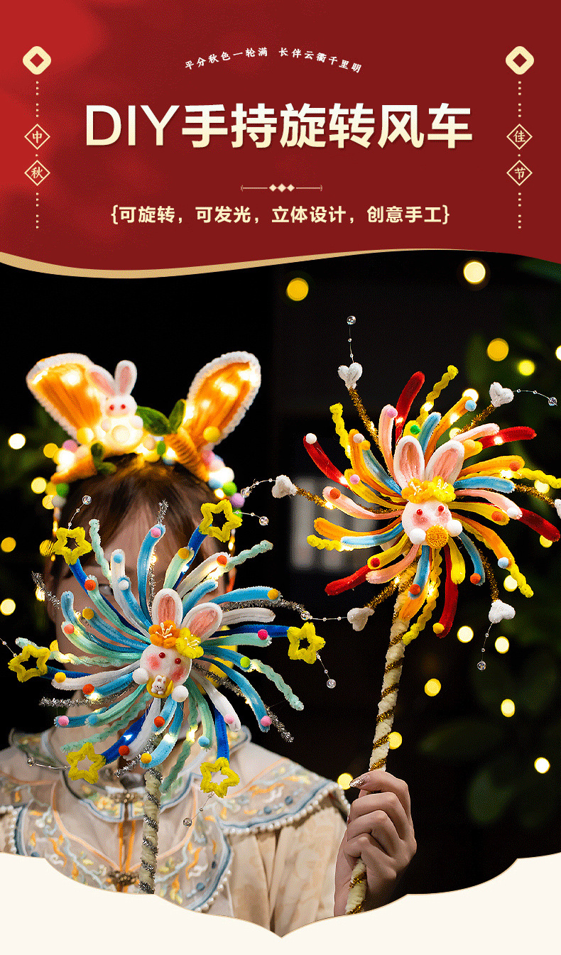 【手持花灯风车灯】福佑DIY中秋灯笼材料包灯笼 手持蜻蜓蝴蝶灯笼 能发光的手持花灯立体设计材料包小花灯
