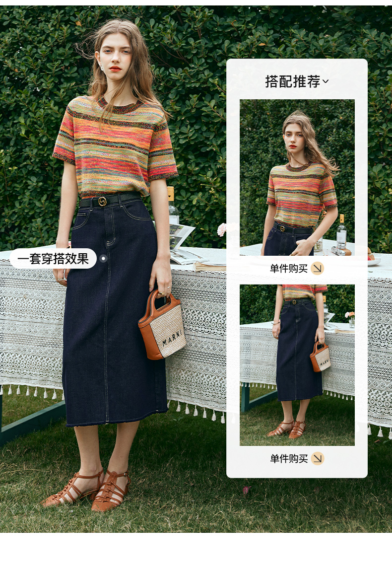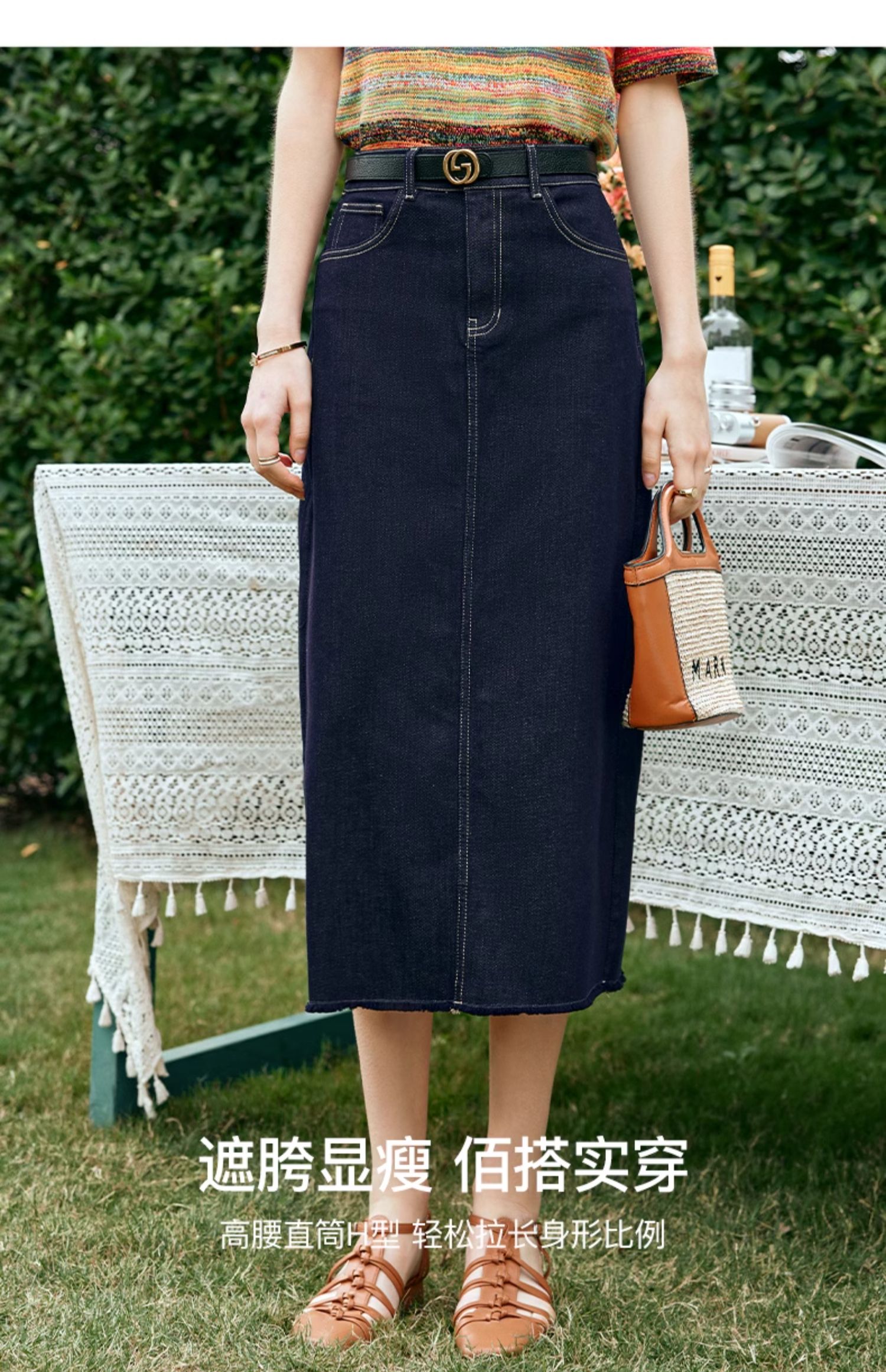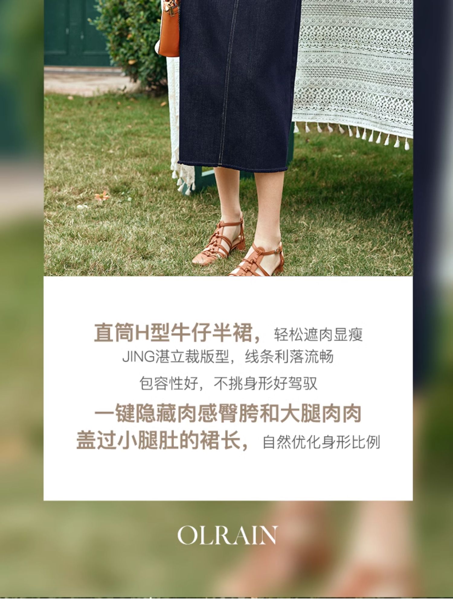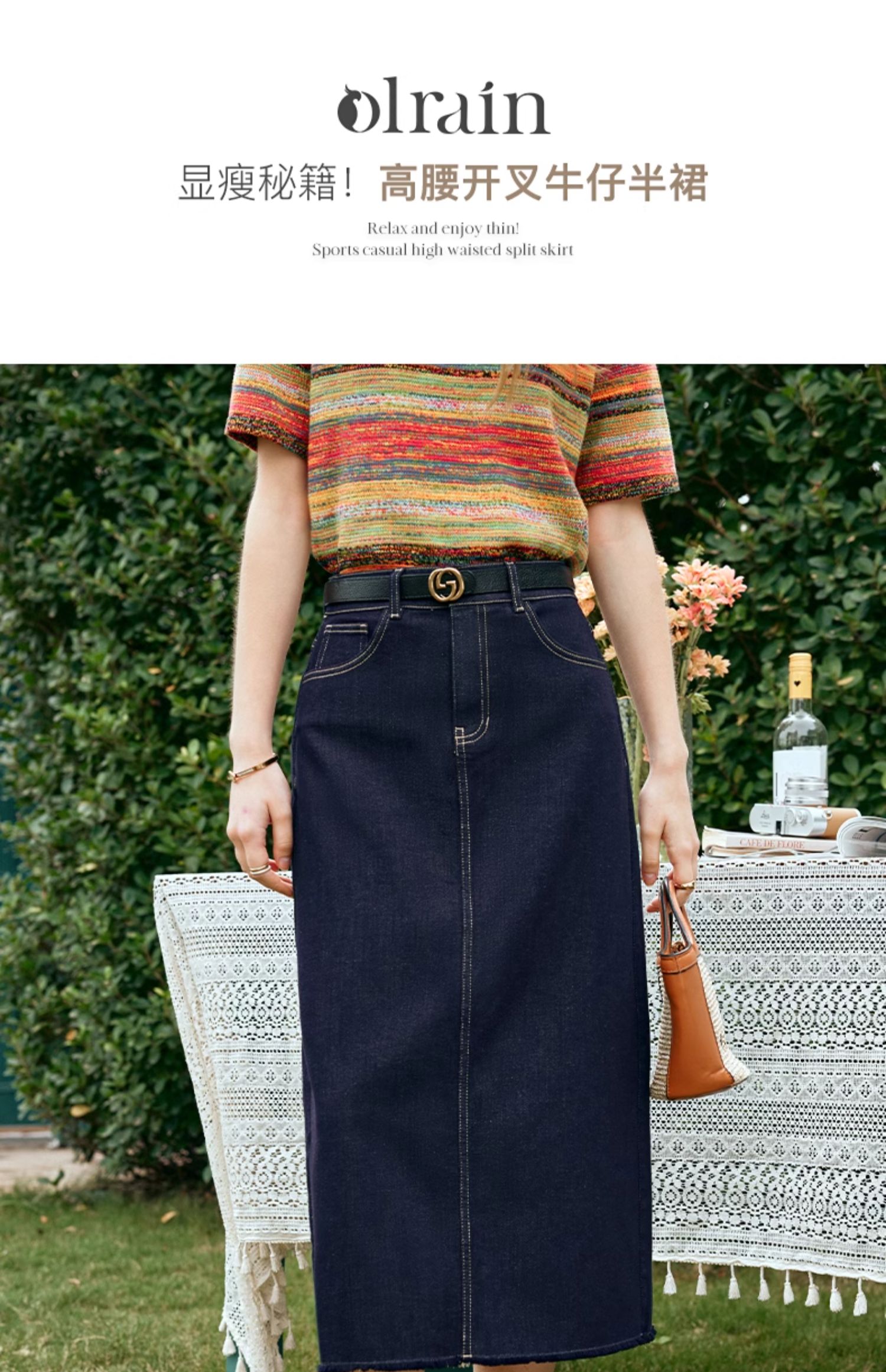 OLrain欧芮儿牛仔蓝半身裙女早春2024年新款高腰开叉A字包臀裙