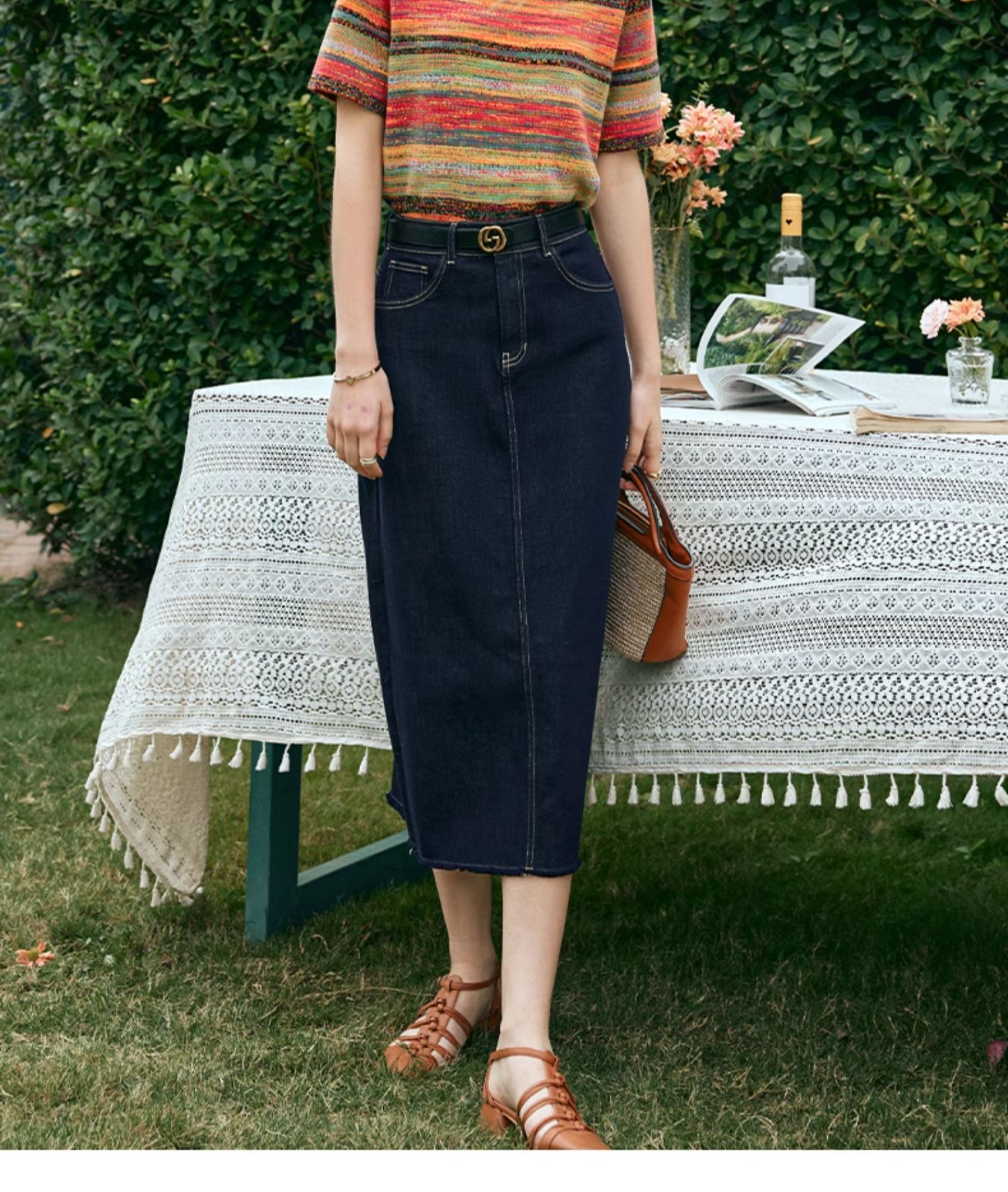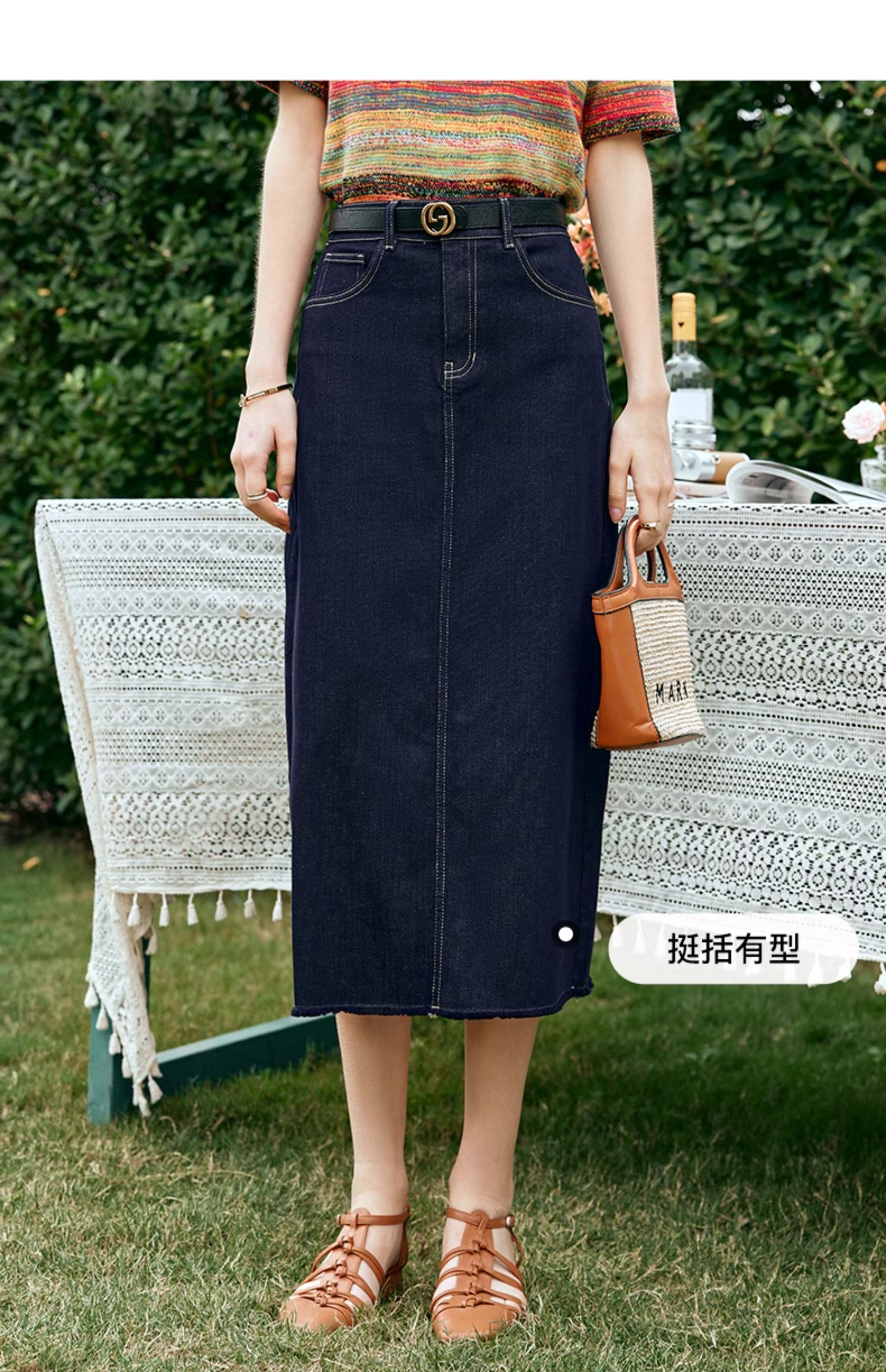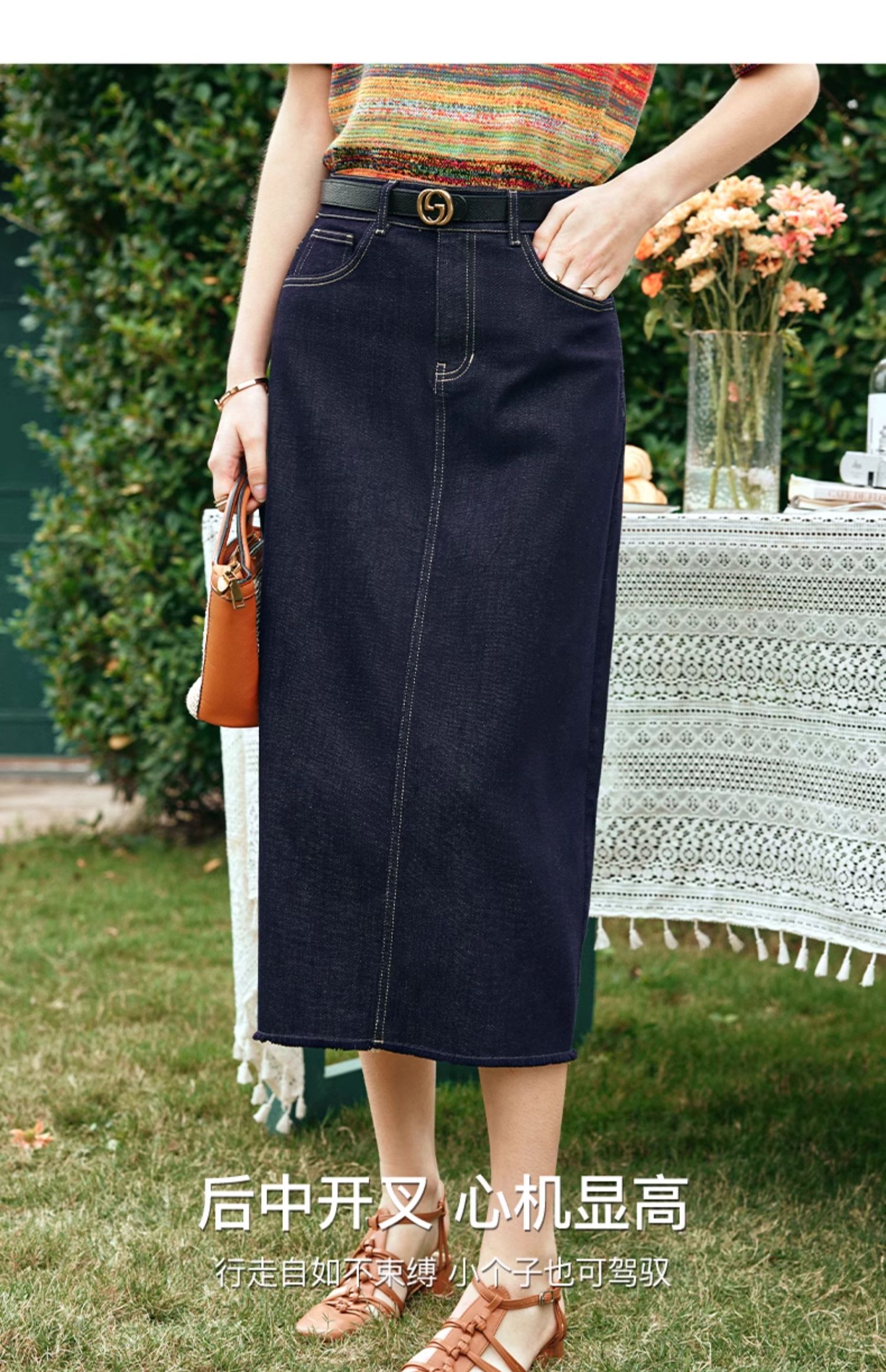 OLrain欧芮儿牛仔蓝半身裙女早春2024年新款高腰开叉A字包臀裙