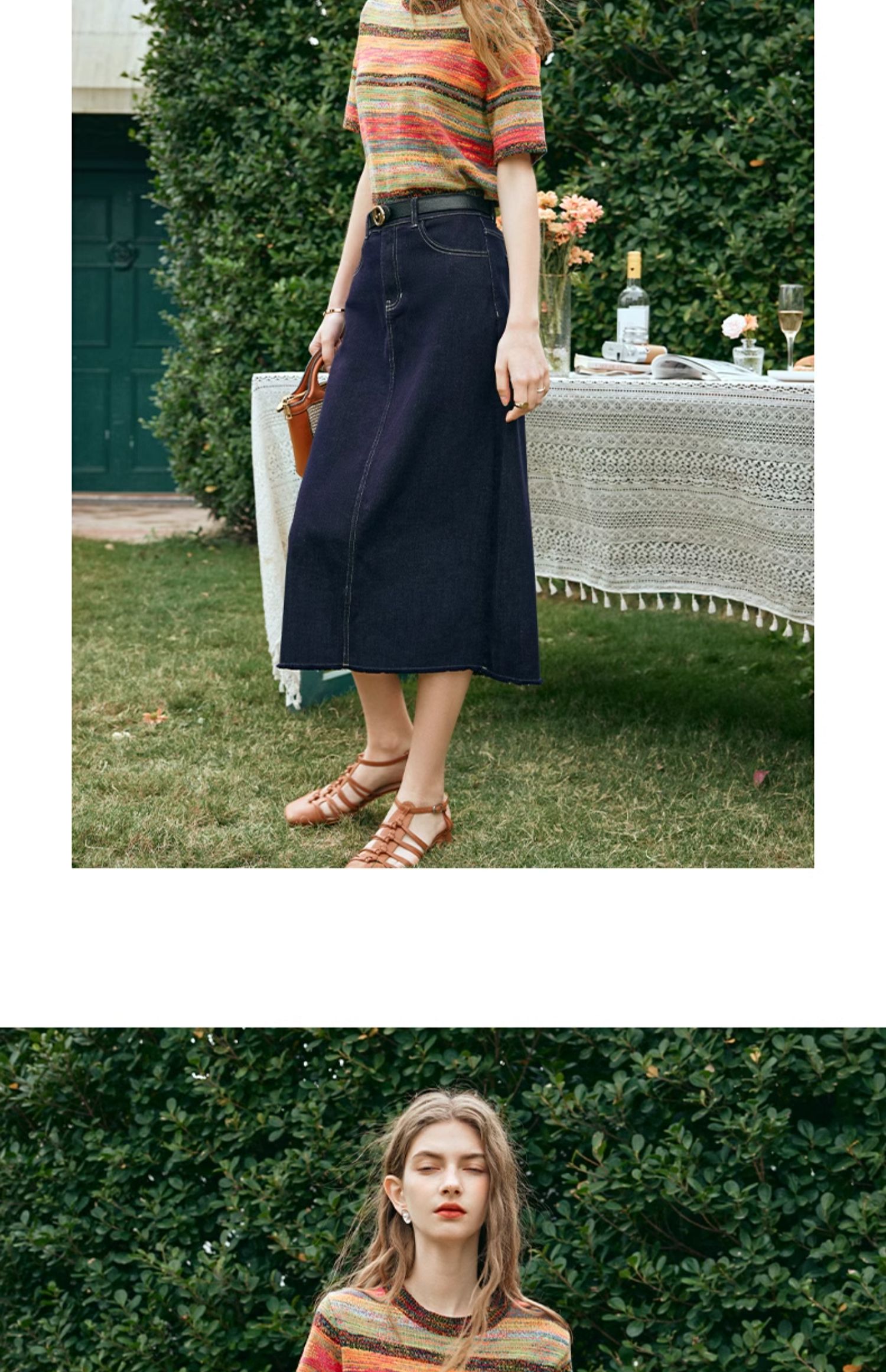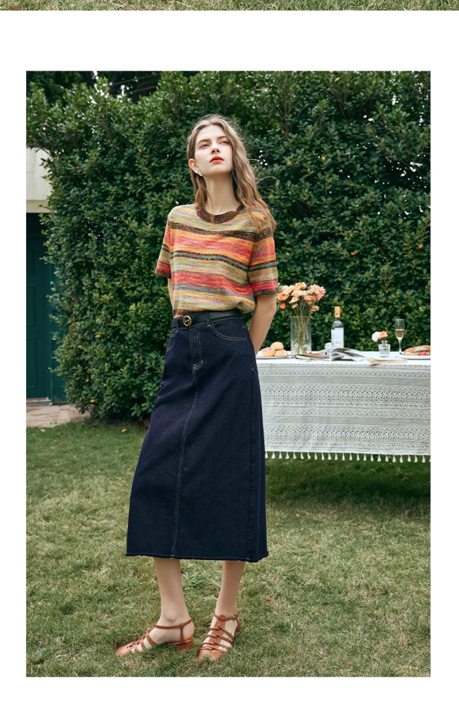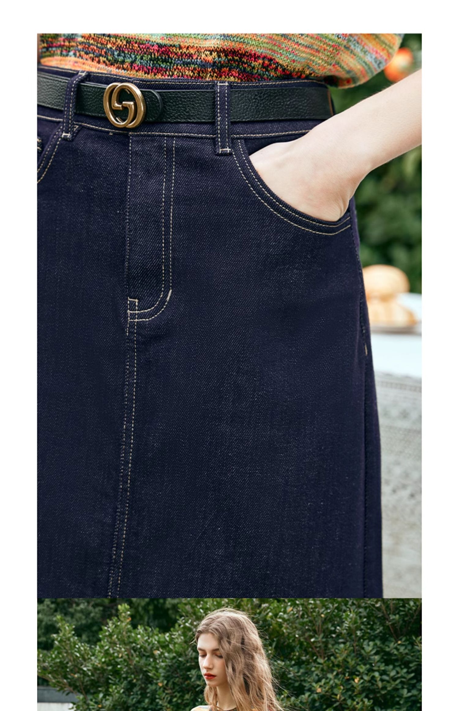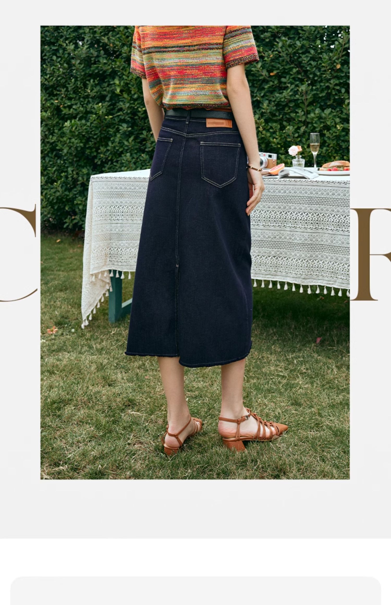 OLrain欧芮儿牛仔蓝半身裙女早春2024年新款高腰开叉A字包臀裙
