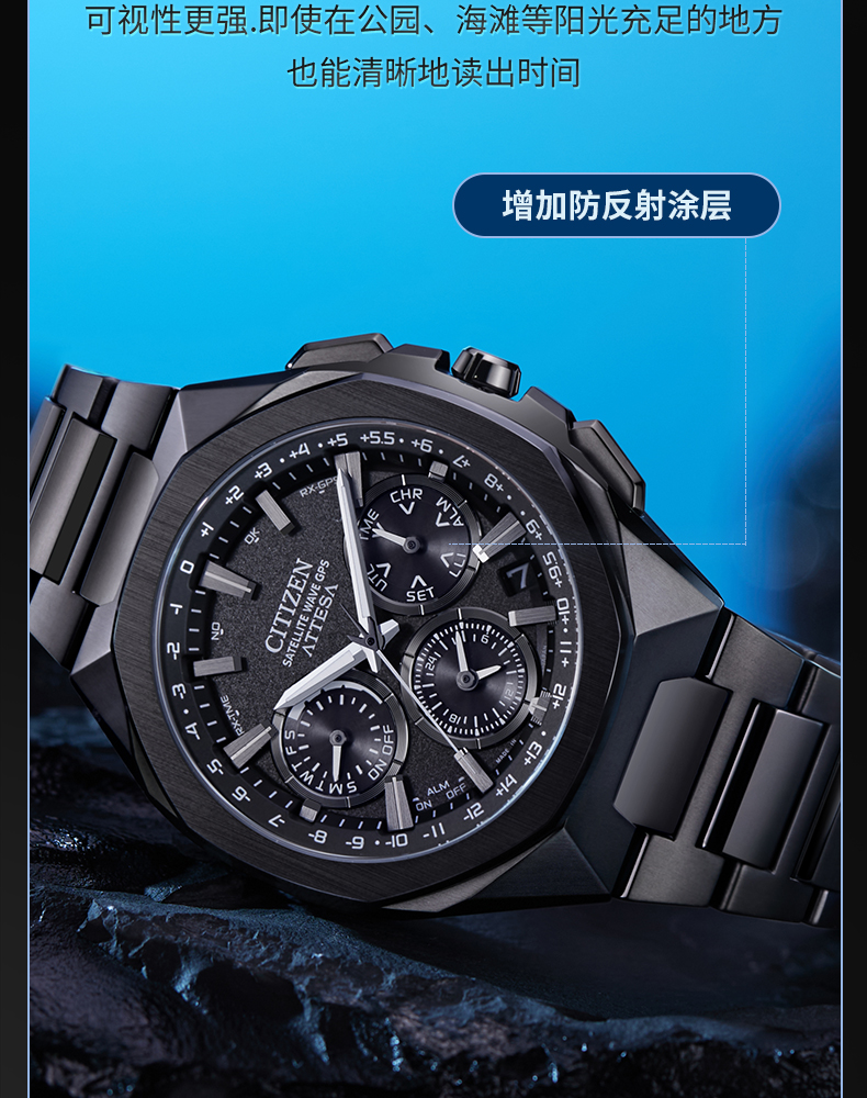 西铁城/CITIZEN卫星对时ATTESA系列舒博钛八角男表CC4104-53E