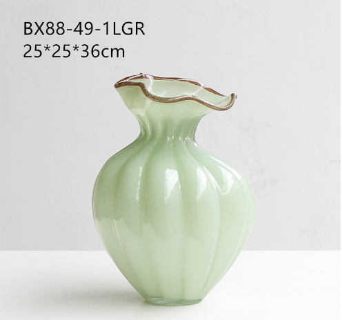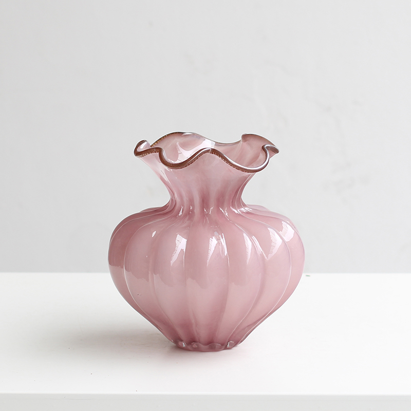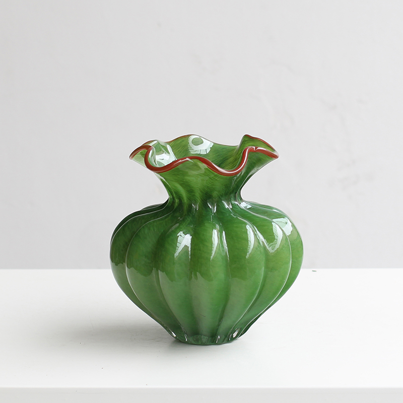 北欧手工波浪口花边糖果色歪脖大肚子南瓜花瓶样板间客厅装饰花瓶