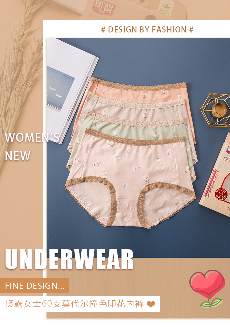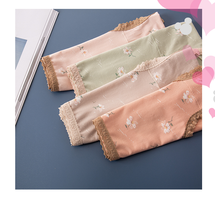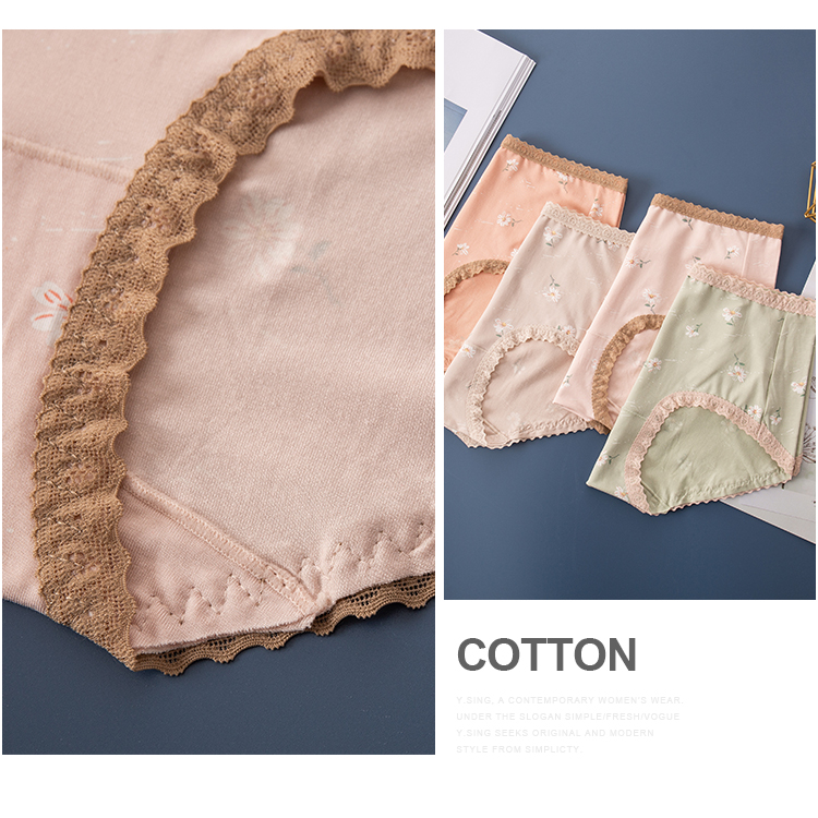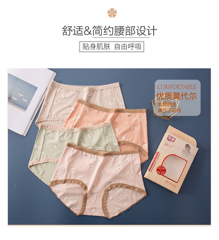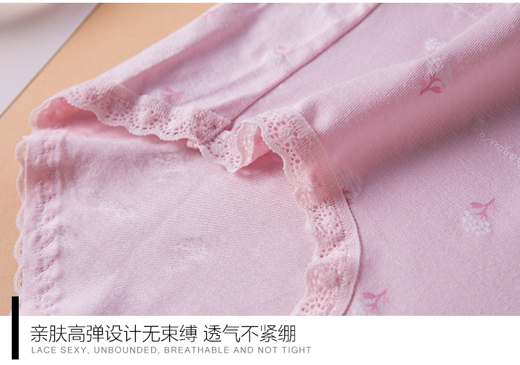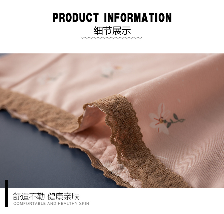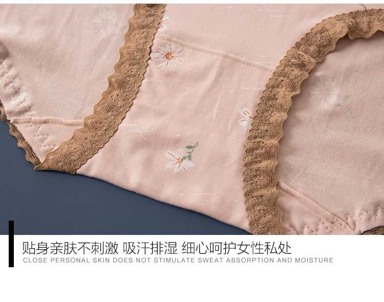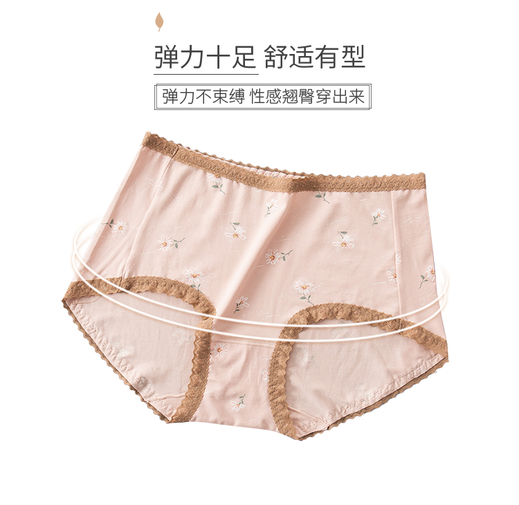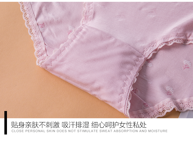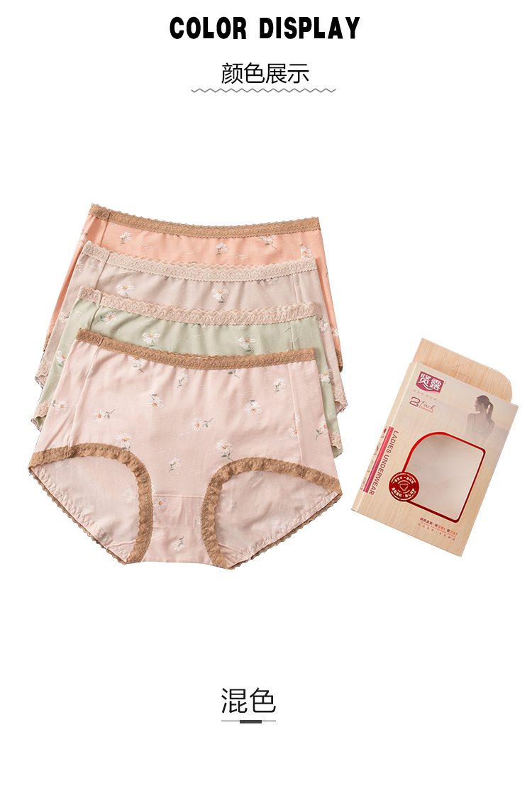 女士彩纱莫代尔大版蕾丝花边撞色印花三角内裤2897/2925/2917/2909