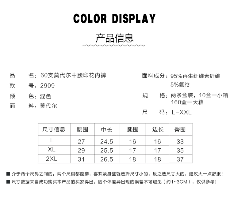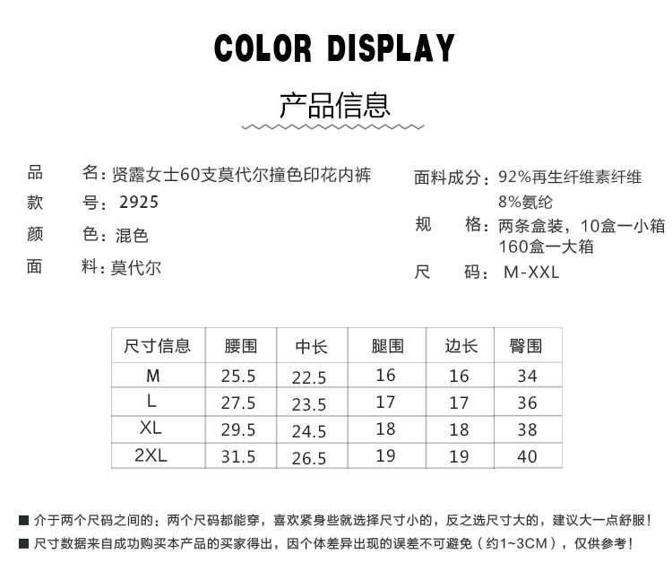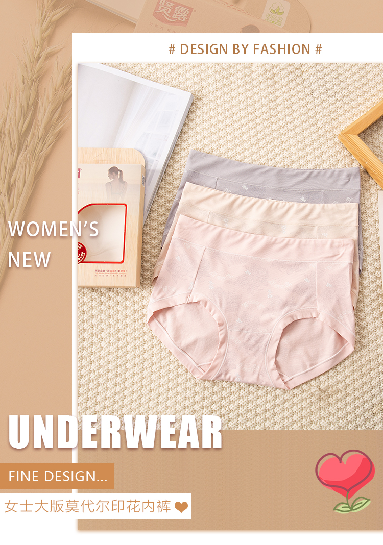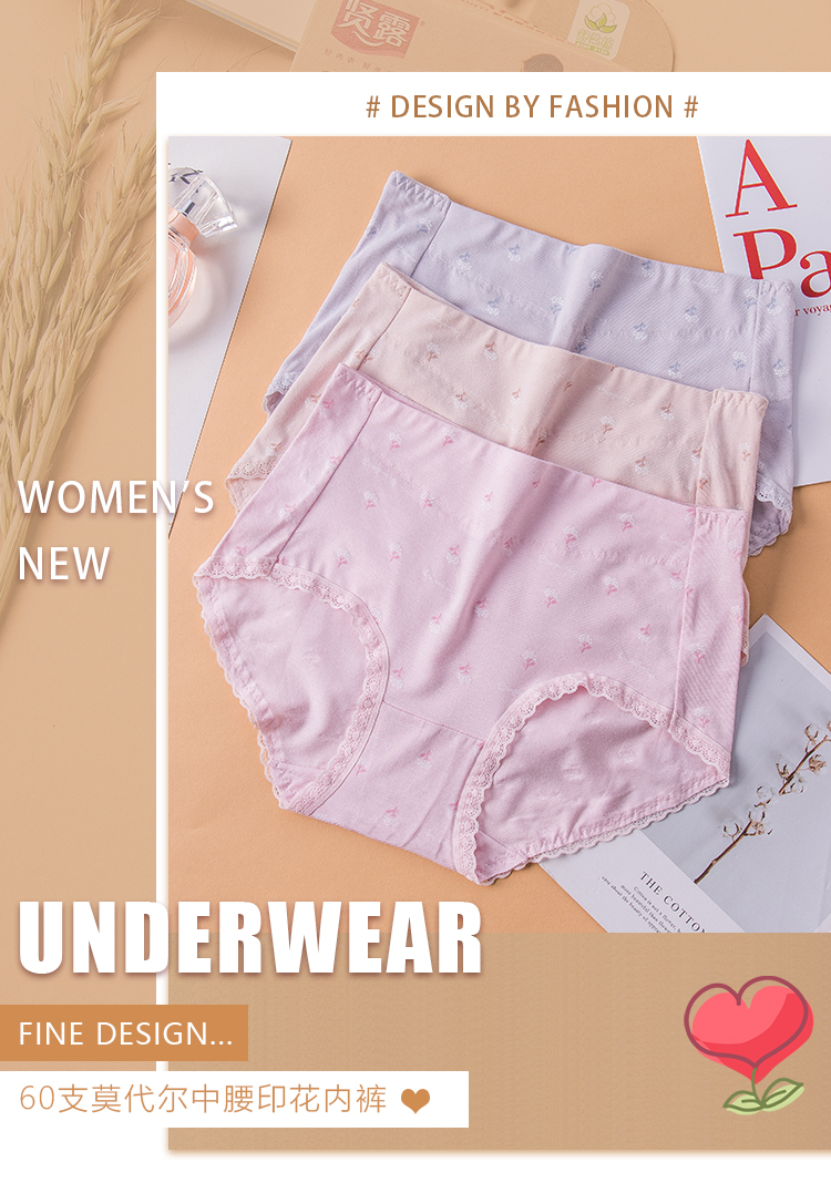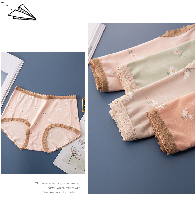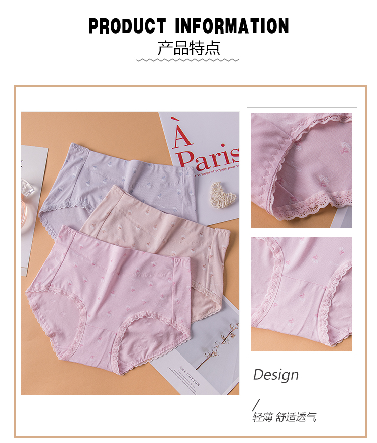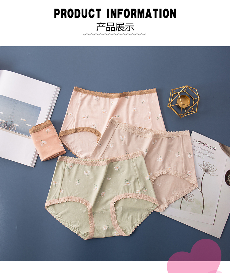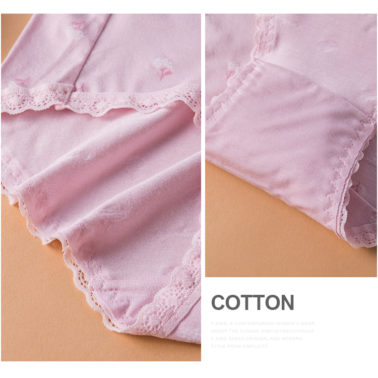 女士彩纱莫代尔大版蕾丝花边撞色印花三角内裤2897/2925/2917/2909