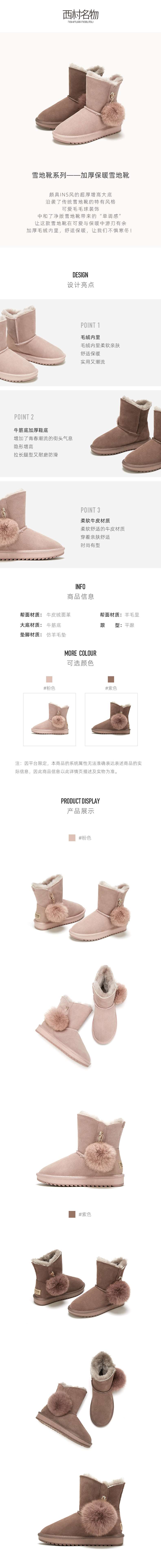 西村名物2020冬季新款雪地靴百搭加绒加厚保暖棉鞋短靴女靴T20DS42581