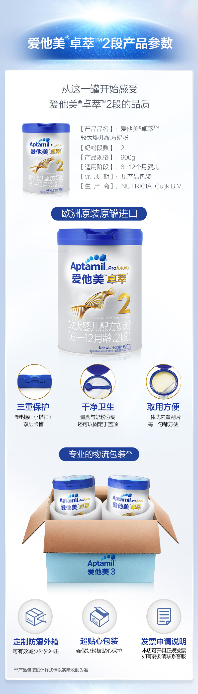 爱他美卓萃较大婴儿配方奶粉(6-12月龄2段)900g