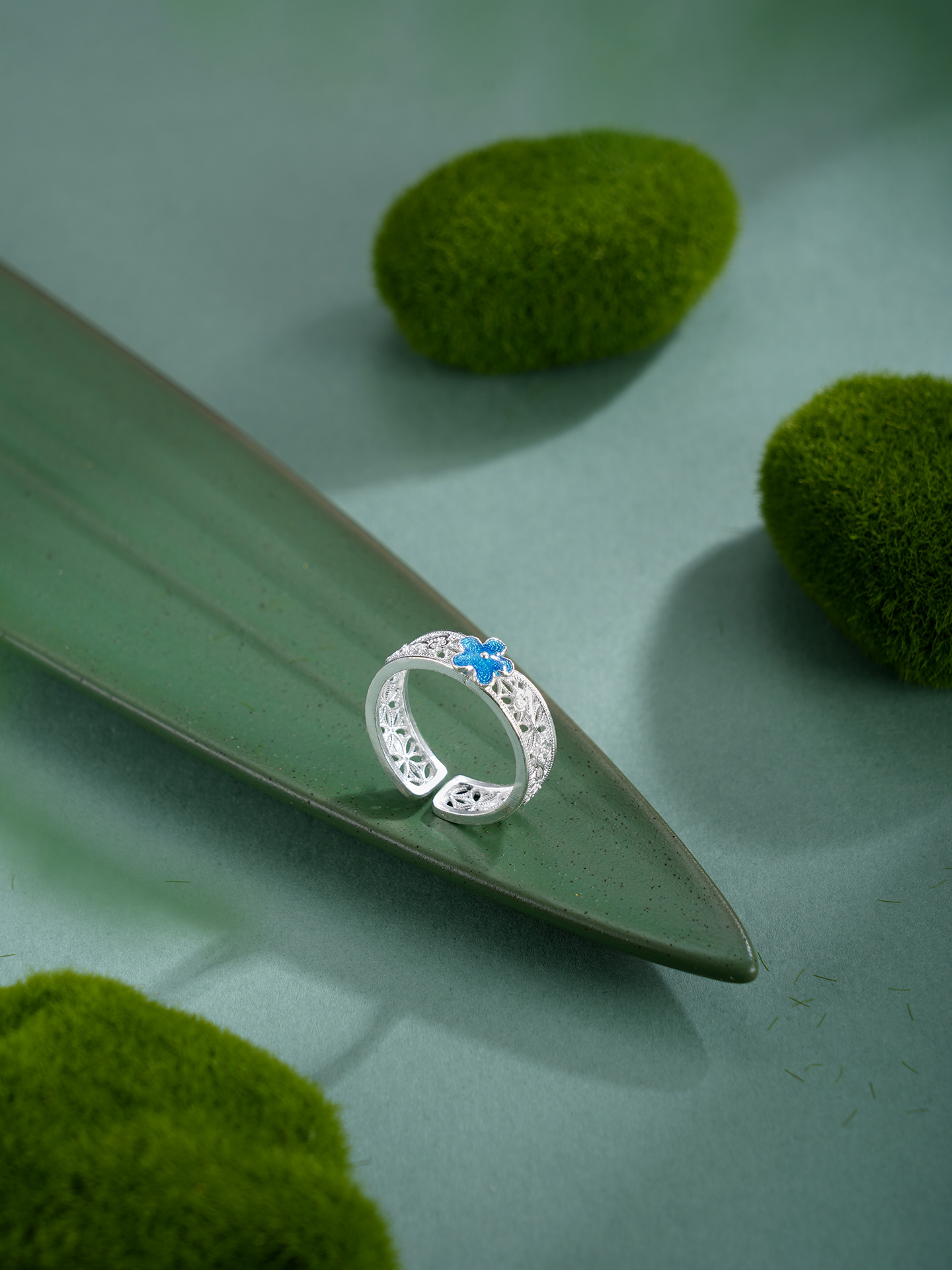【寓意】:花寄生命绚烂,云承吉祥期许,银花丝工艺交织成作,寓意一生喜乐,岁岁祥和。