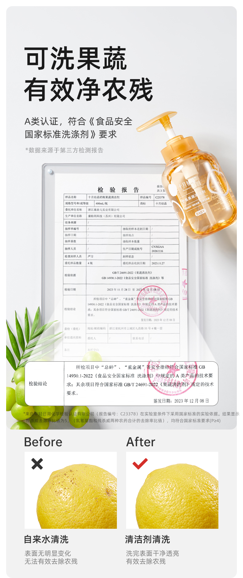 婴儿奶瓶餐具果蔬清洁剂 赠【婴儿洗手液1瓶】