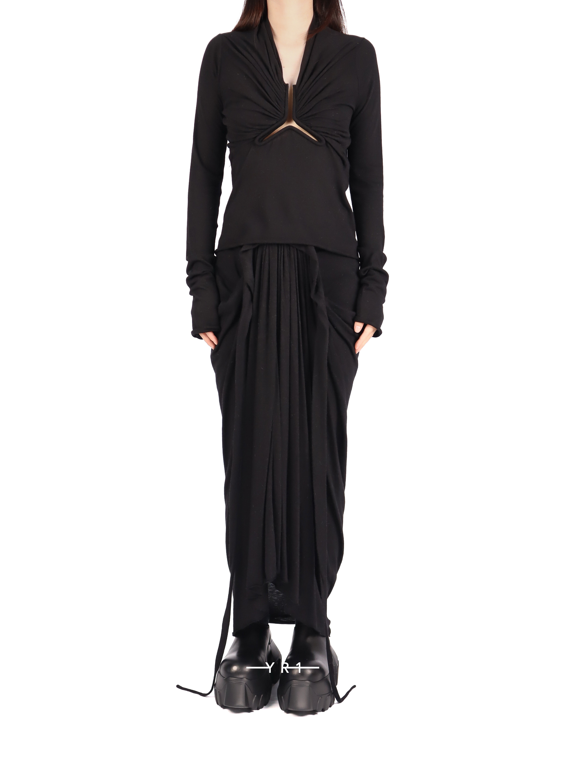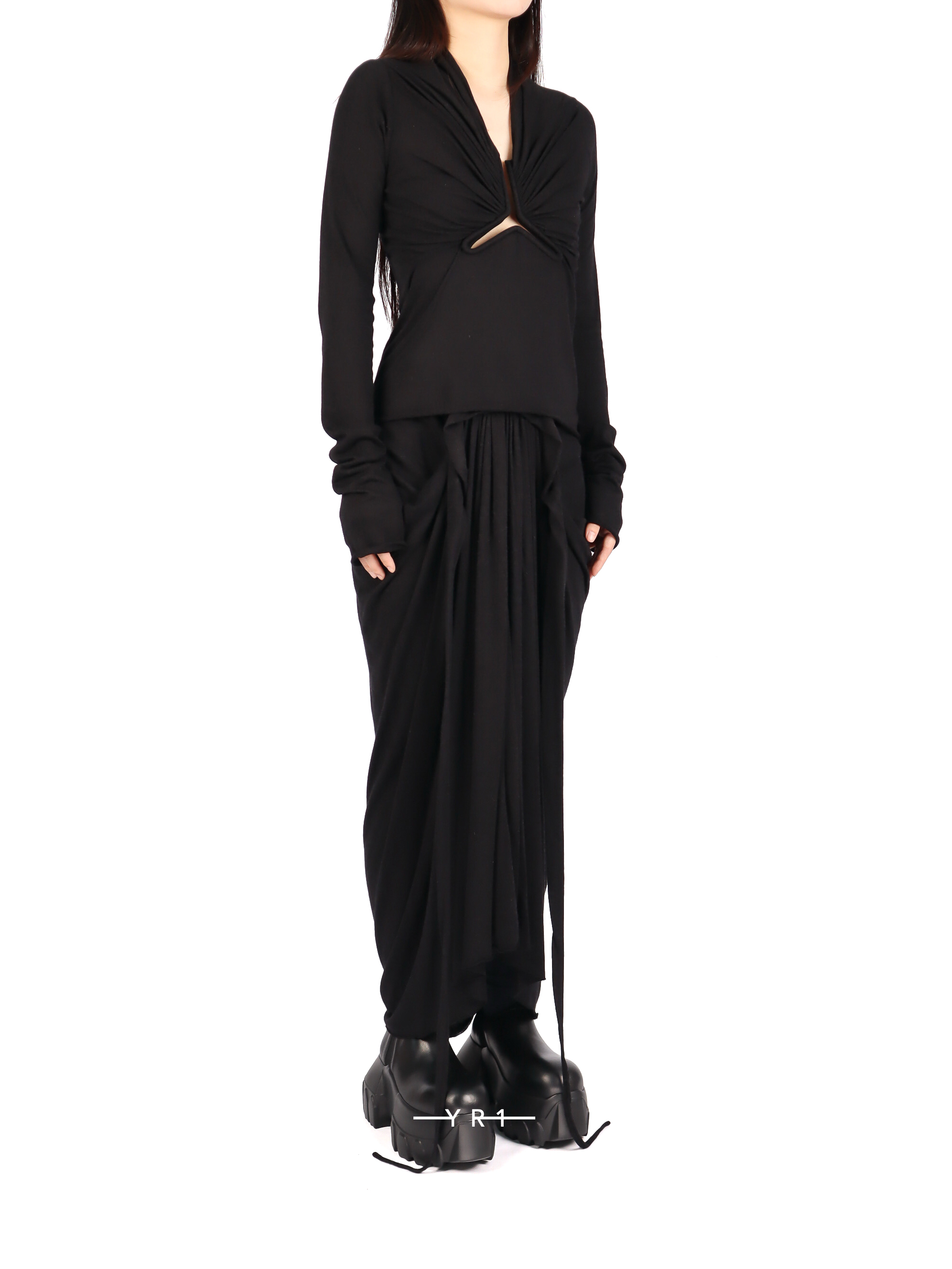 Rick Owens 女款 Allanah 长袖上衣采用柔软的黑色针织面料