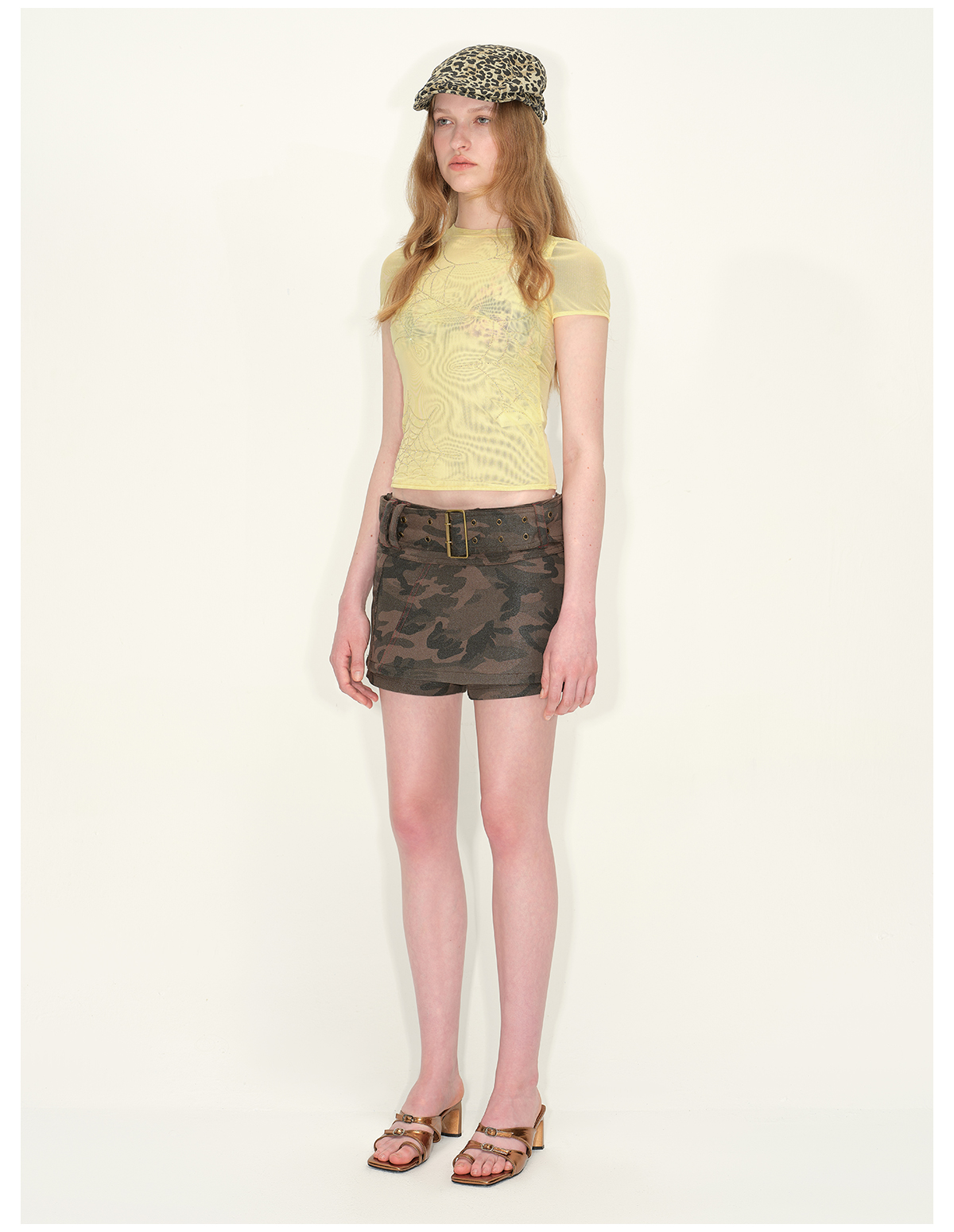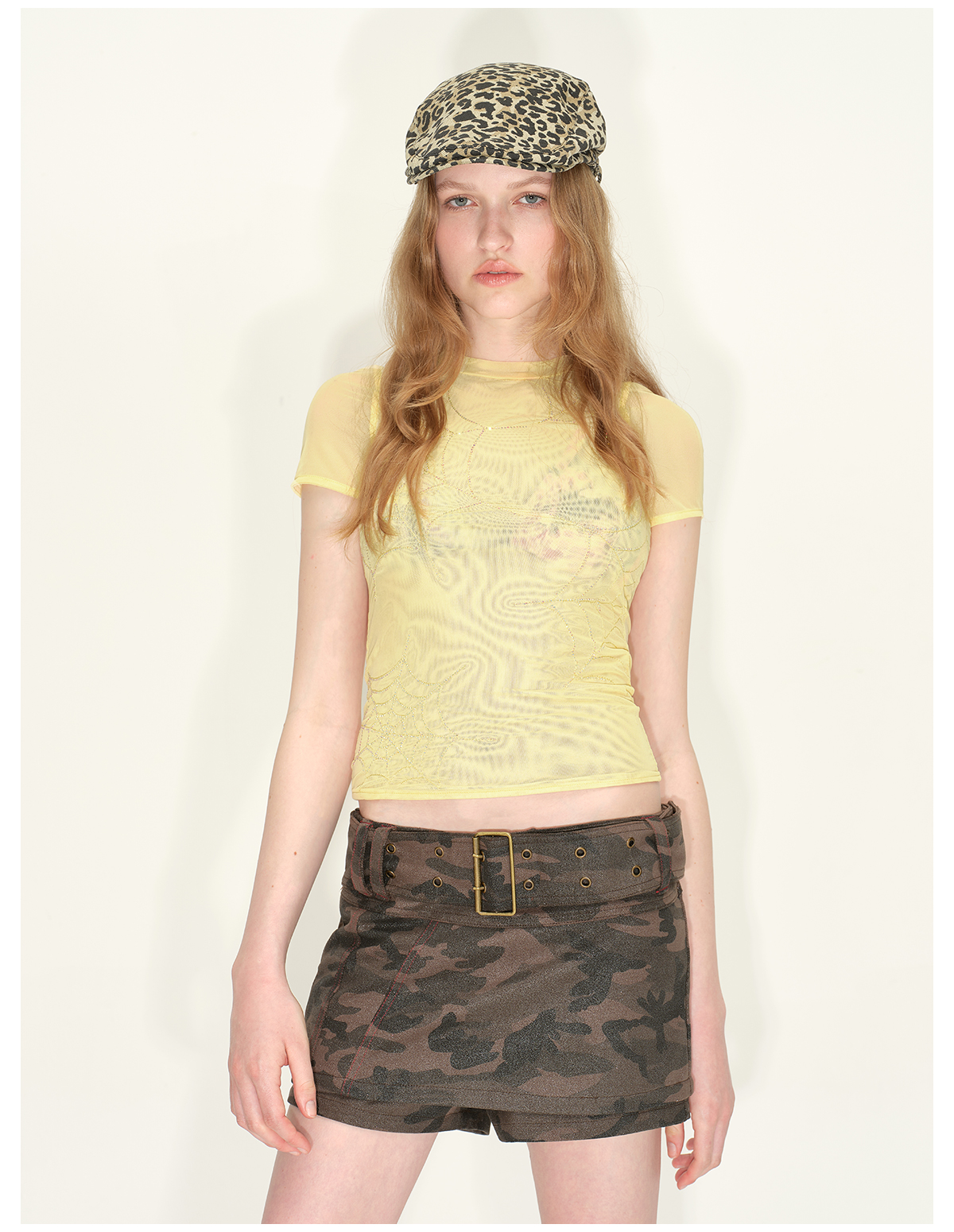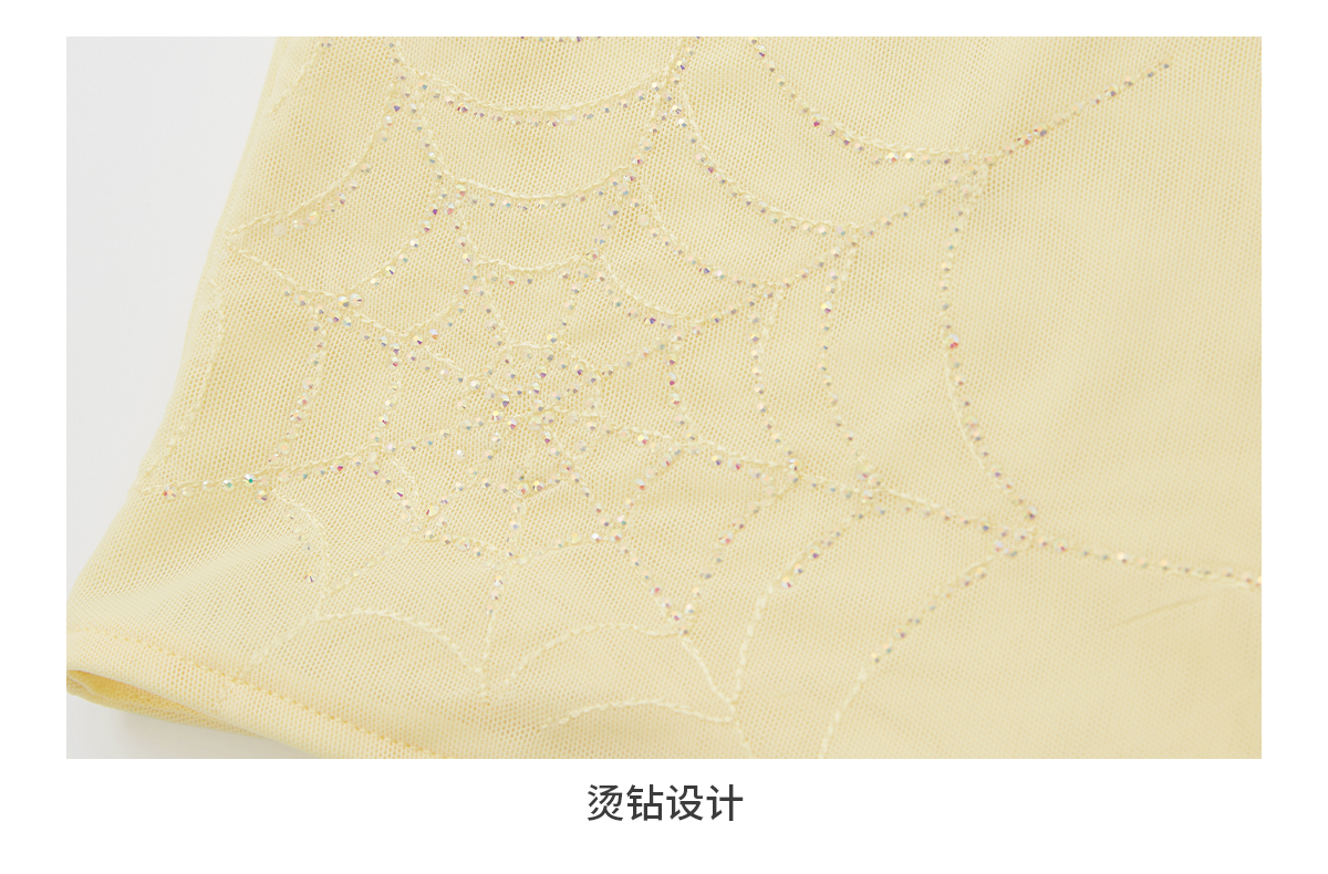 出逃赤岗西/24SST92/轻薄网纱T恤女夏季蜘蛛网烫钻修身正肩短袖