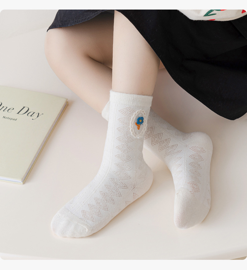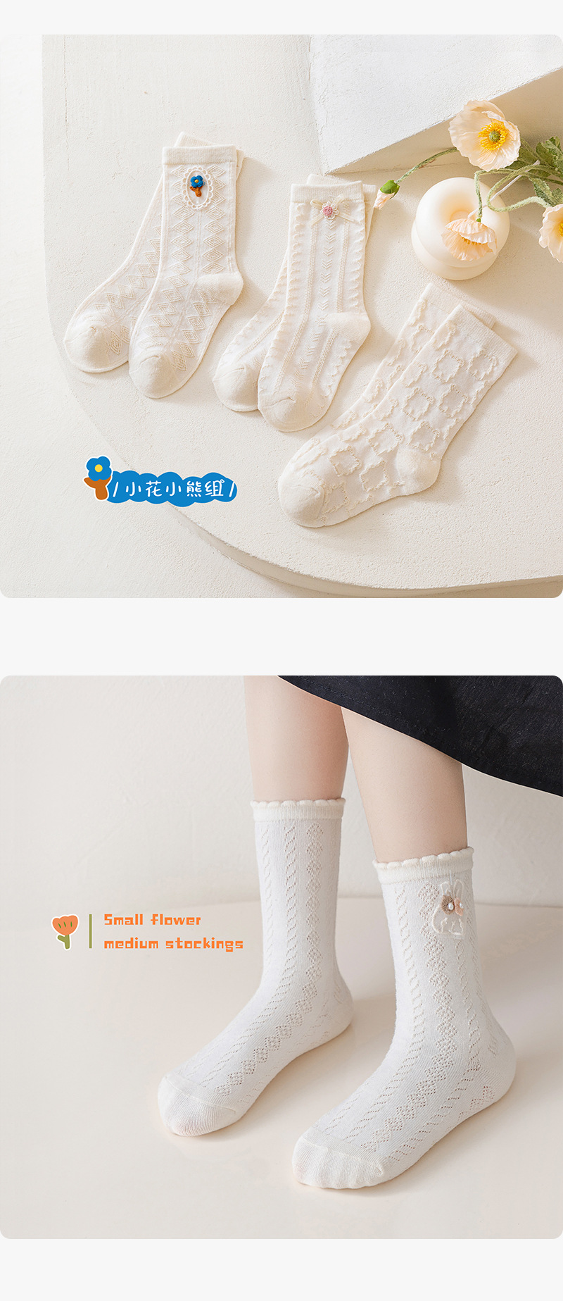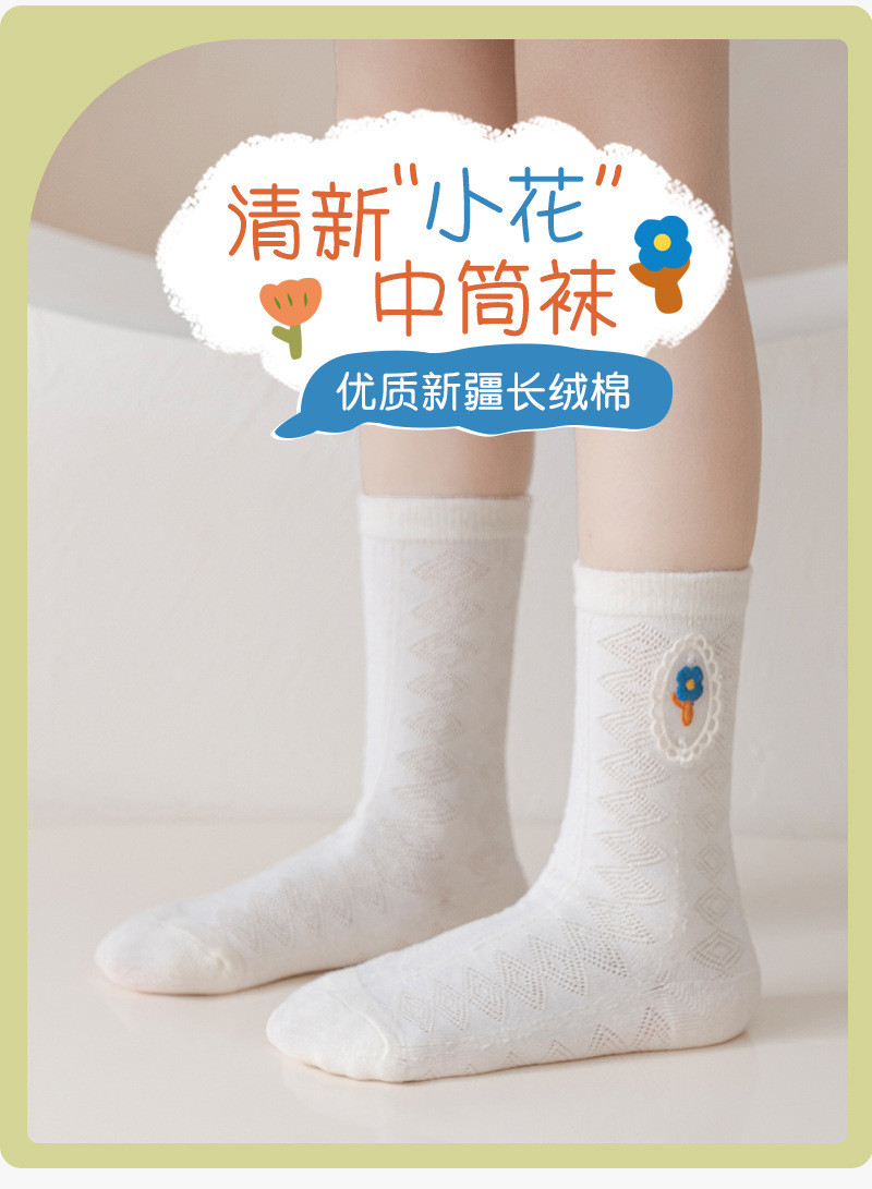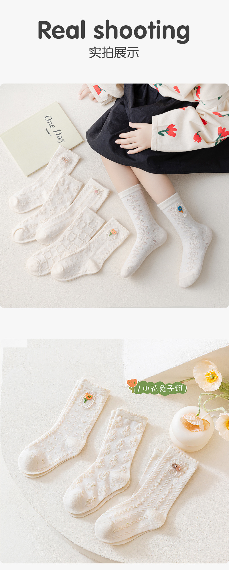 littletime2024春夏透气卡通提花女童中筒袜白色韩版儿童运动袜