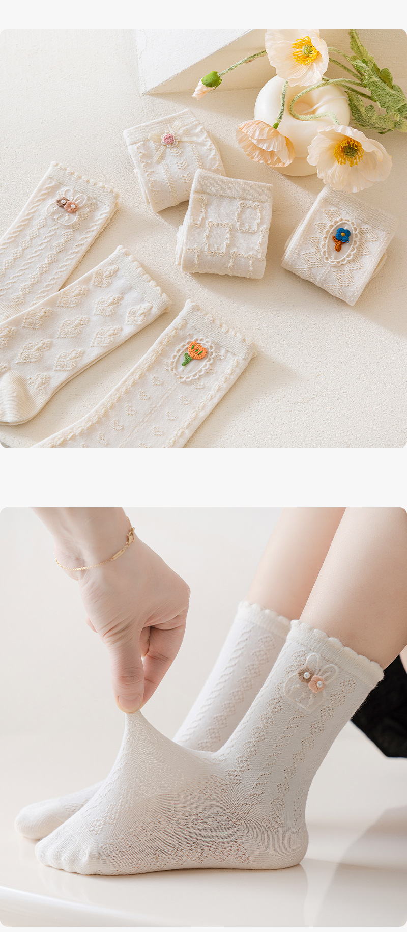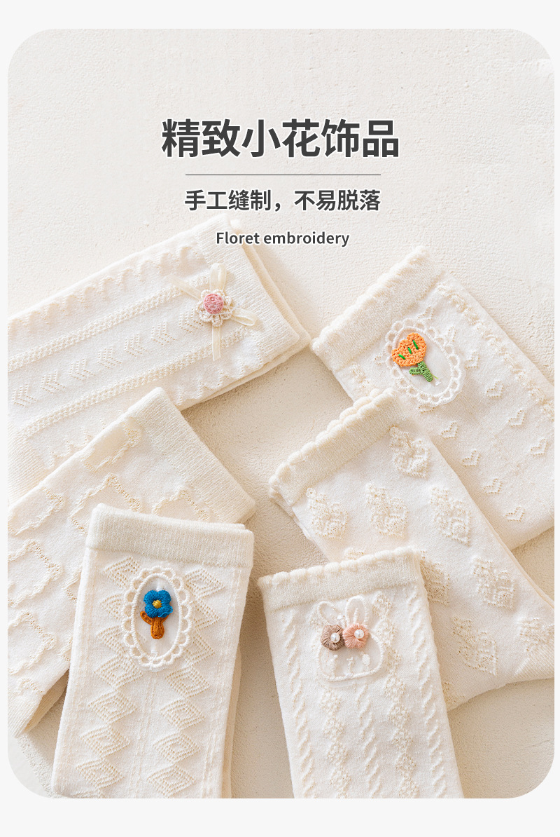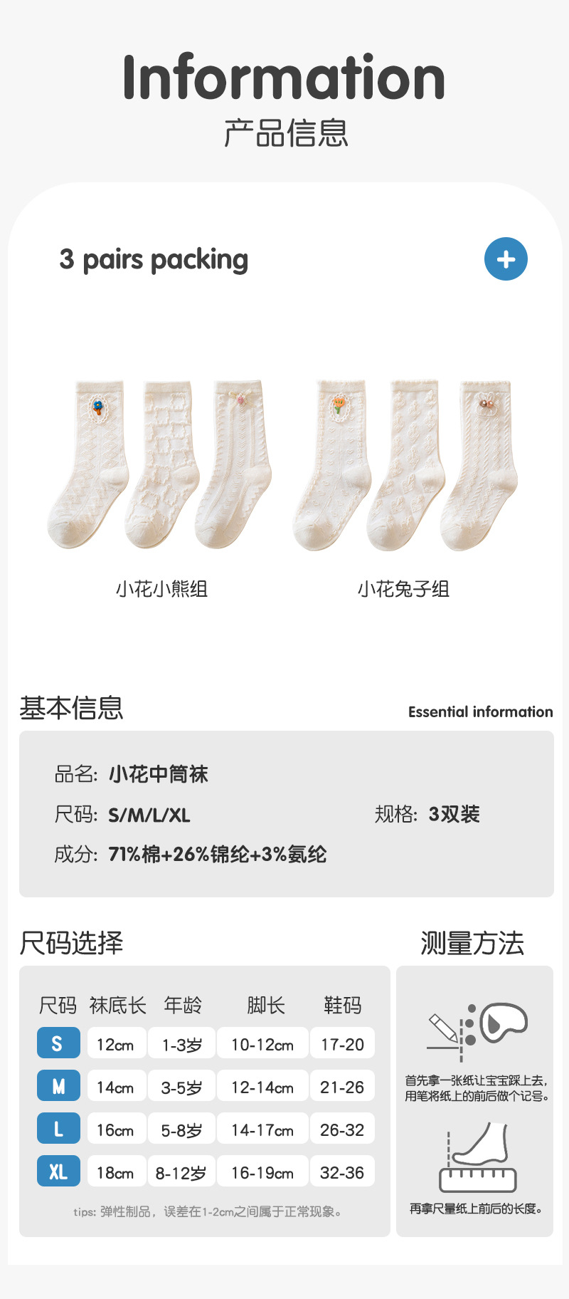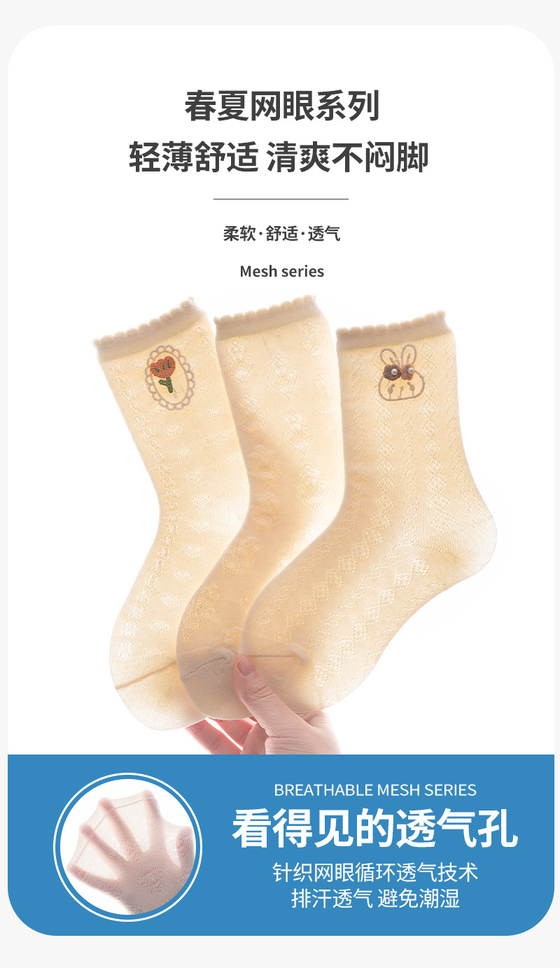littletime2024春夏透气卡通提花女童中筒袜白色韩版儿童运动袜