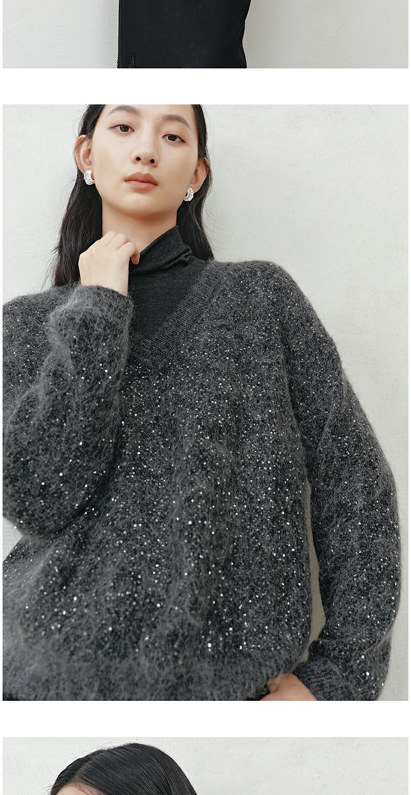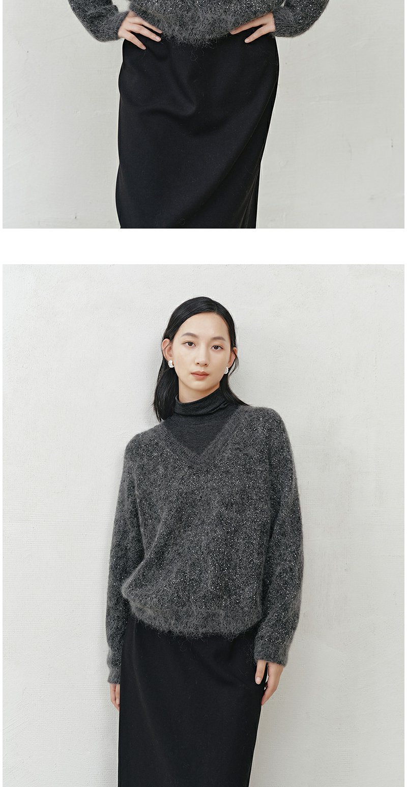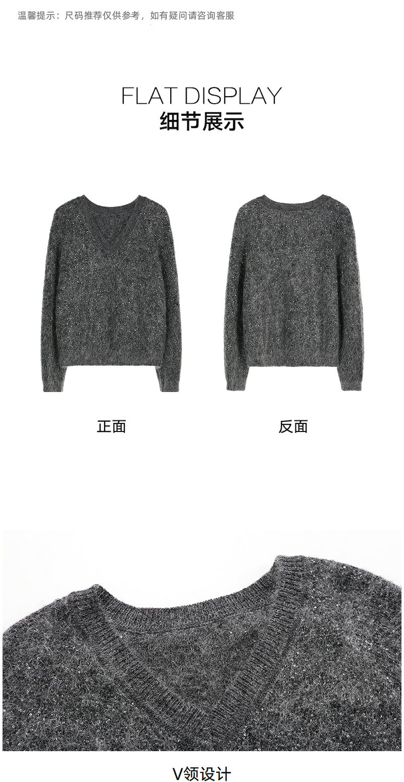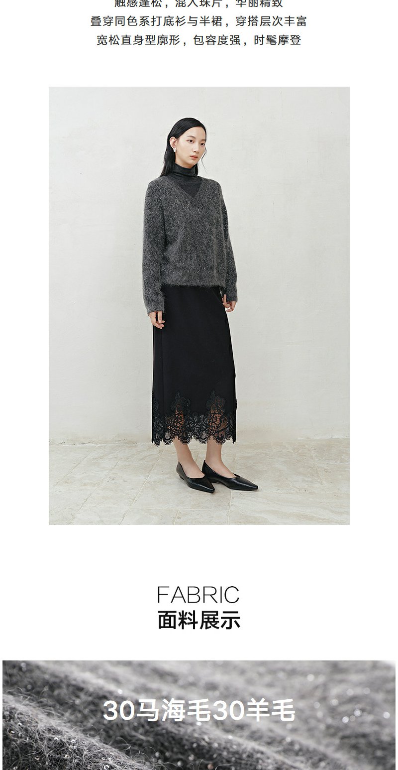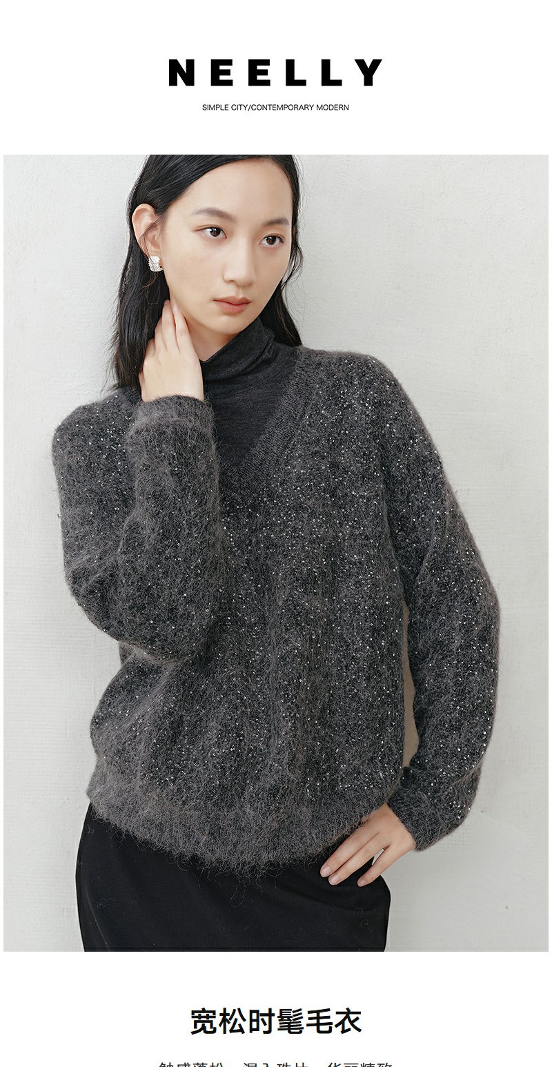NEELLY纳俪商场同款冬新款时尚宽松V领毛衣女叠穿感户外通勤上衣N25103A01059