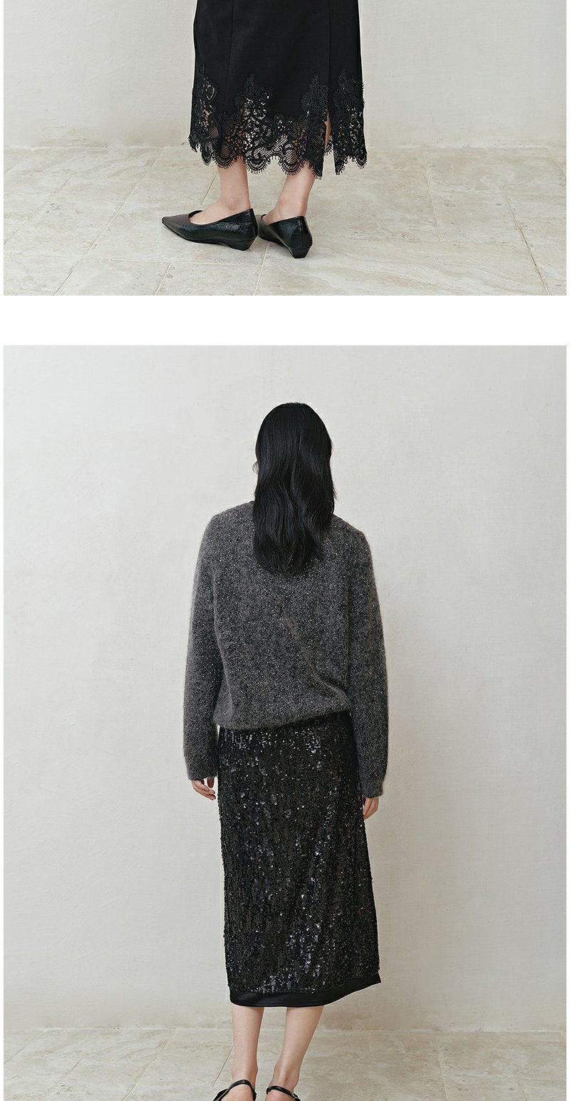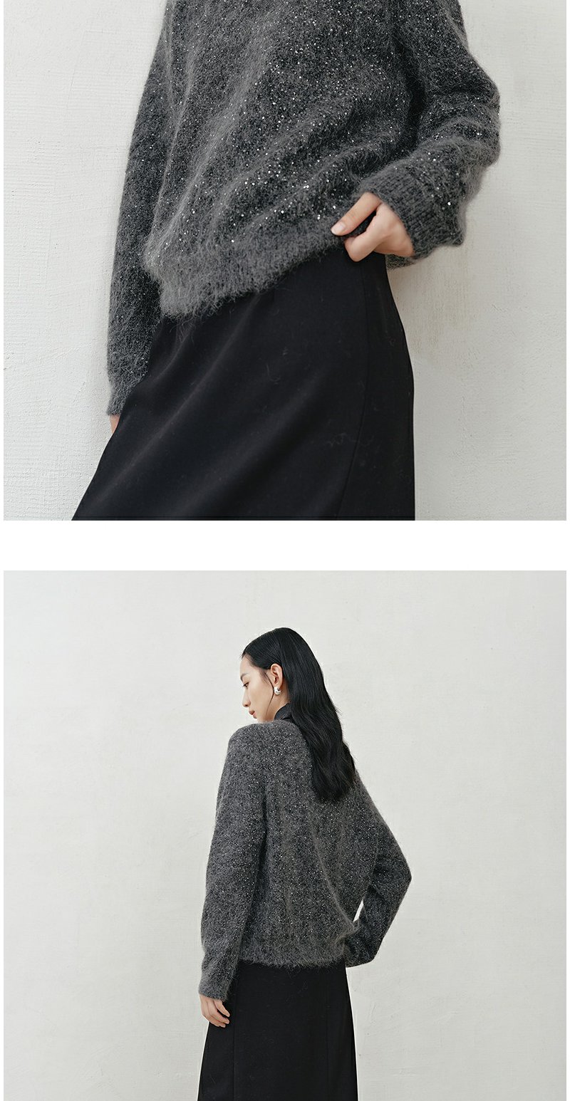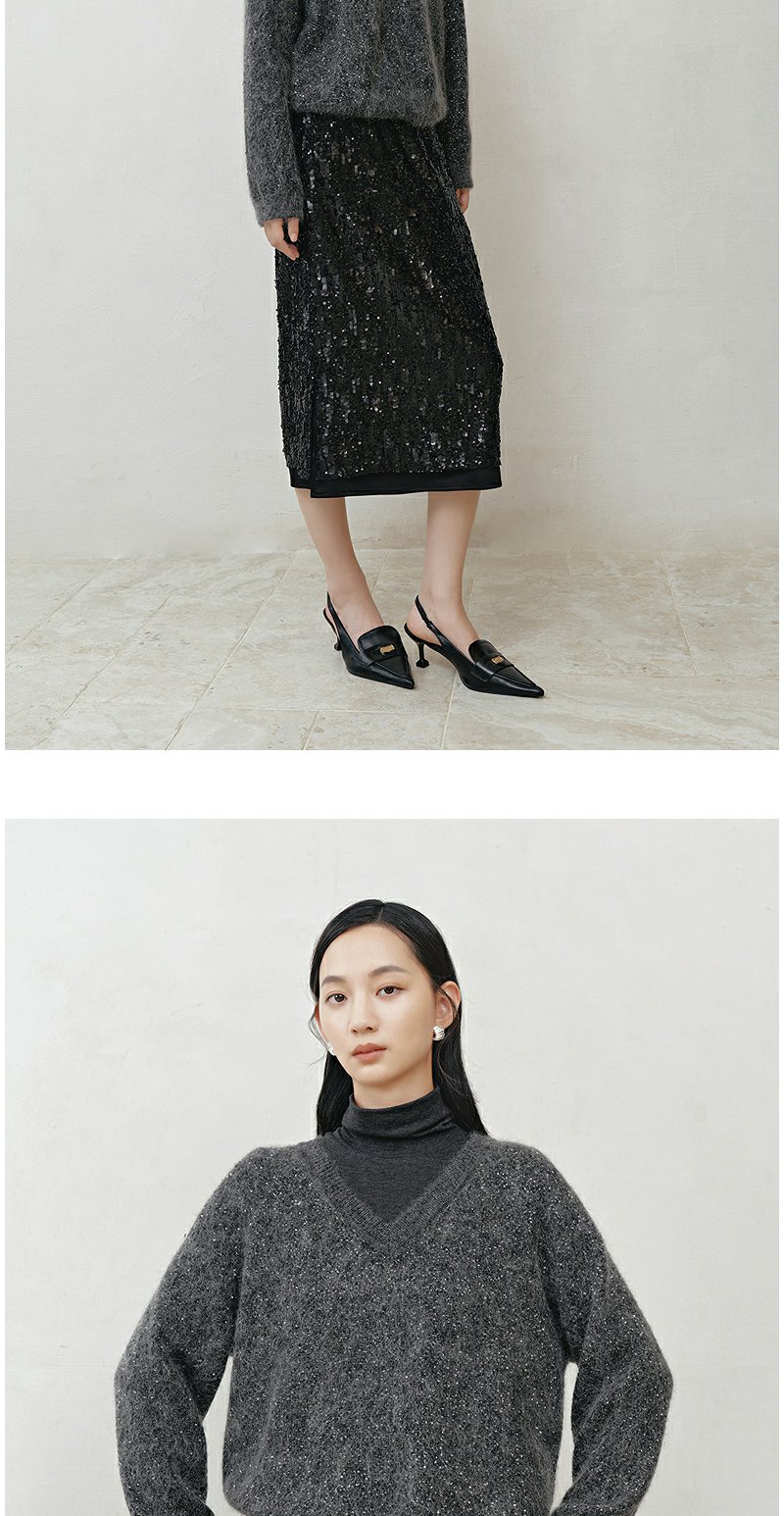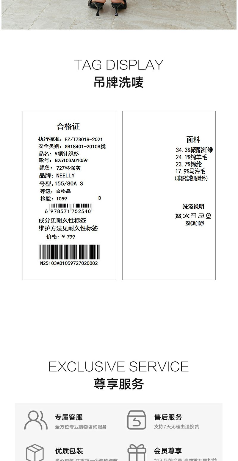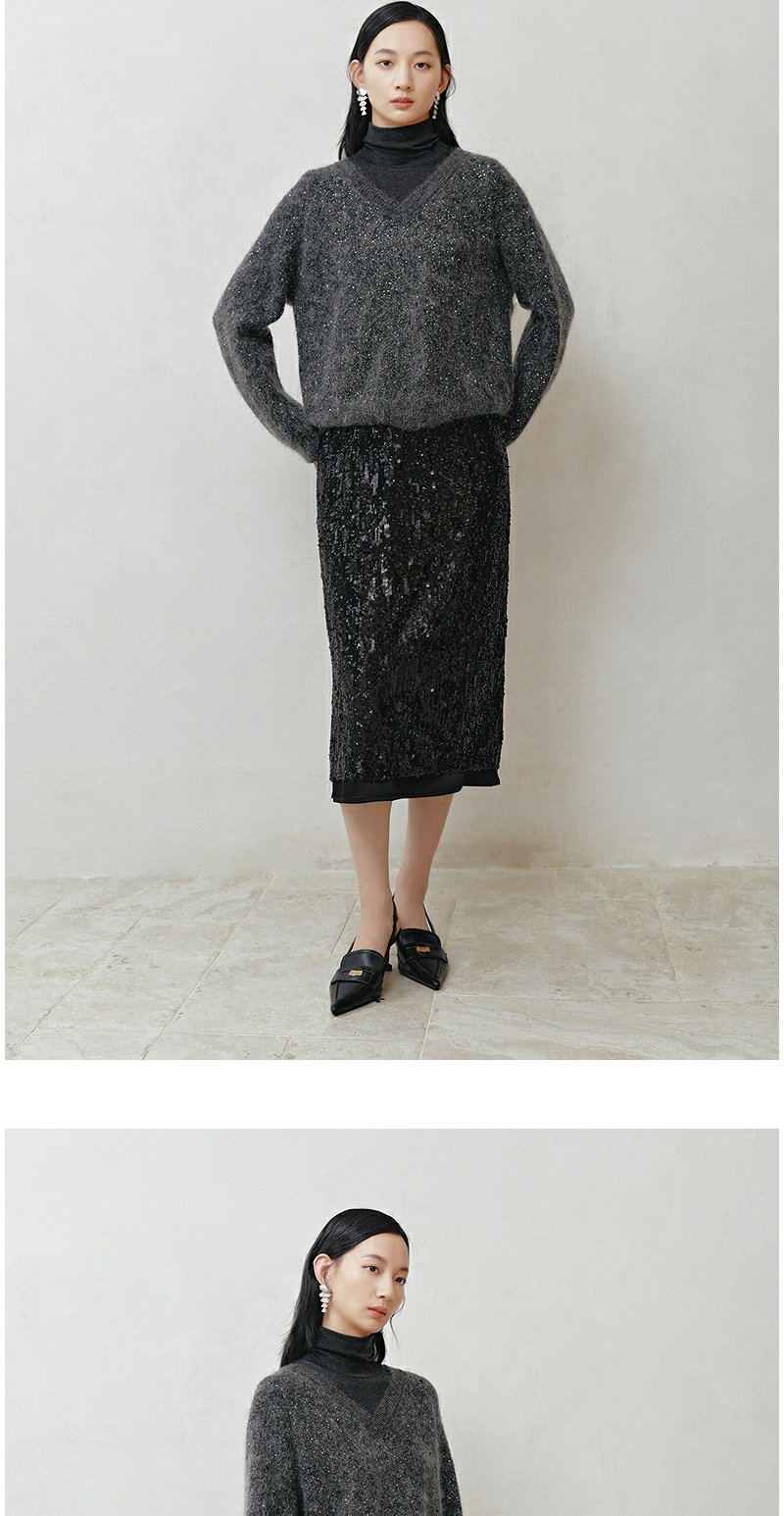 NEELLY纳俪商场同款冬新款时尚宽松V领毛衣女叠穿感户外通勤上衣N25103A01059
