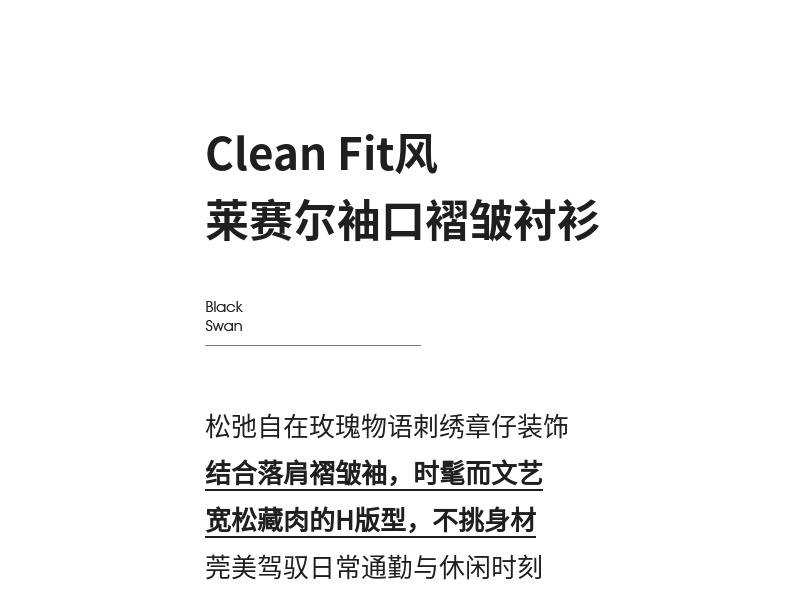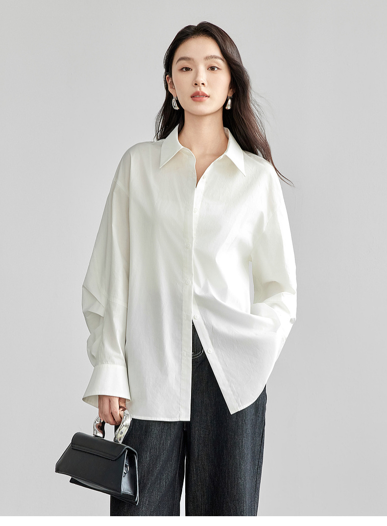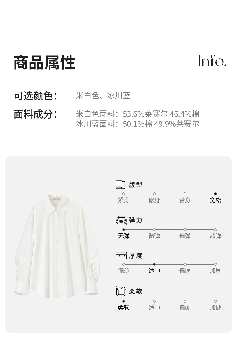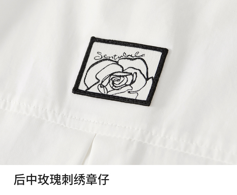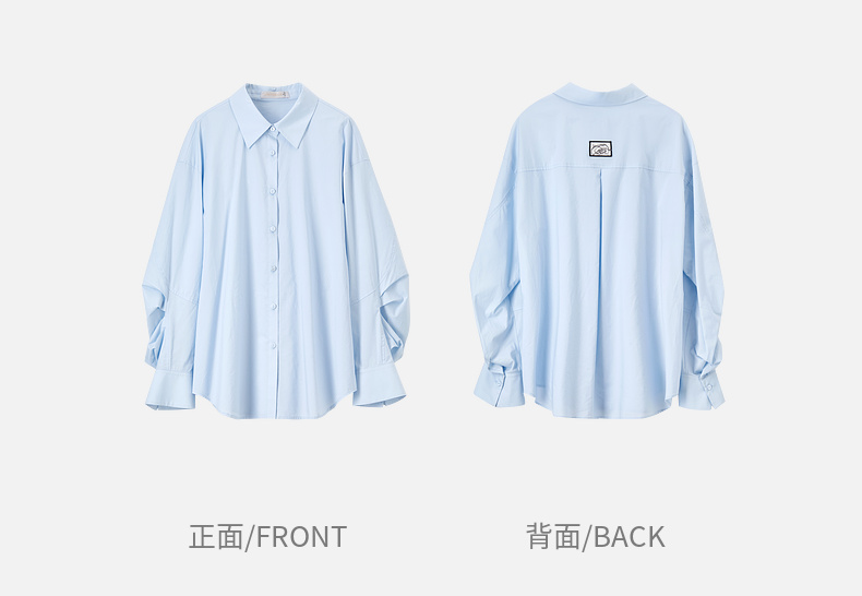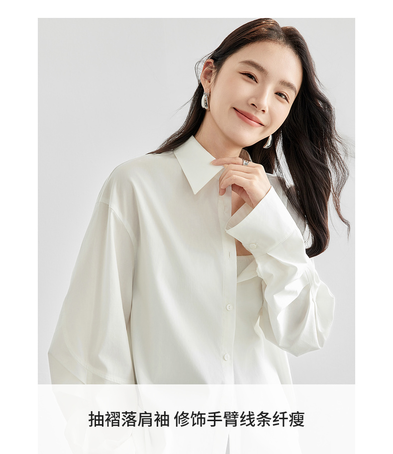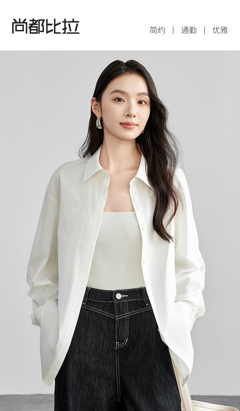 【尚都比拉】玫瑰花章仔通勤系列莱赛尔混纺褶皱长袖宽松H版型气质衬衫-151C58039