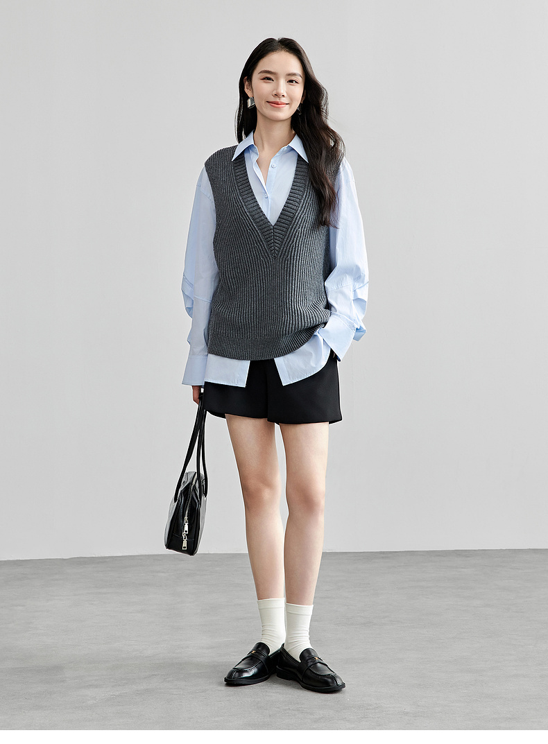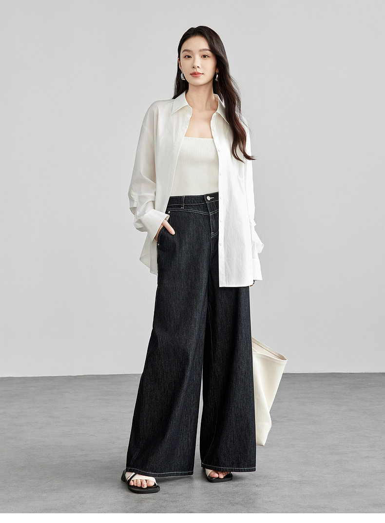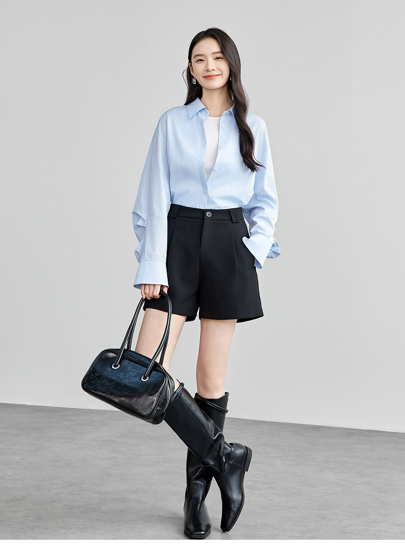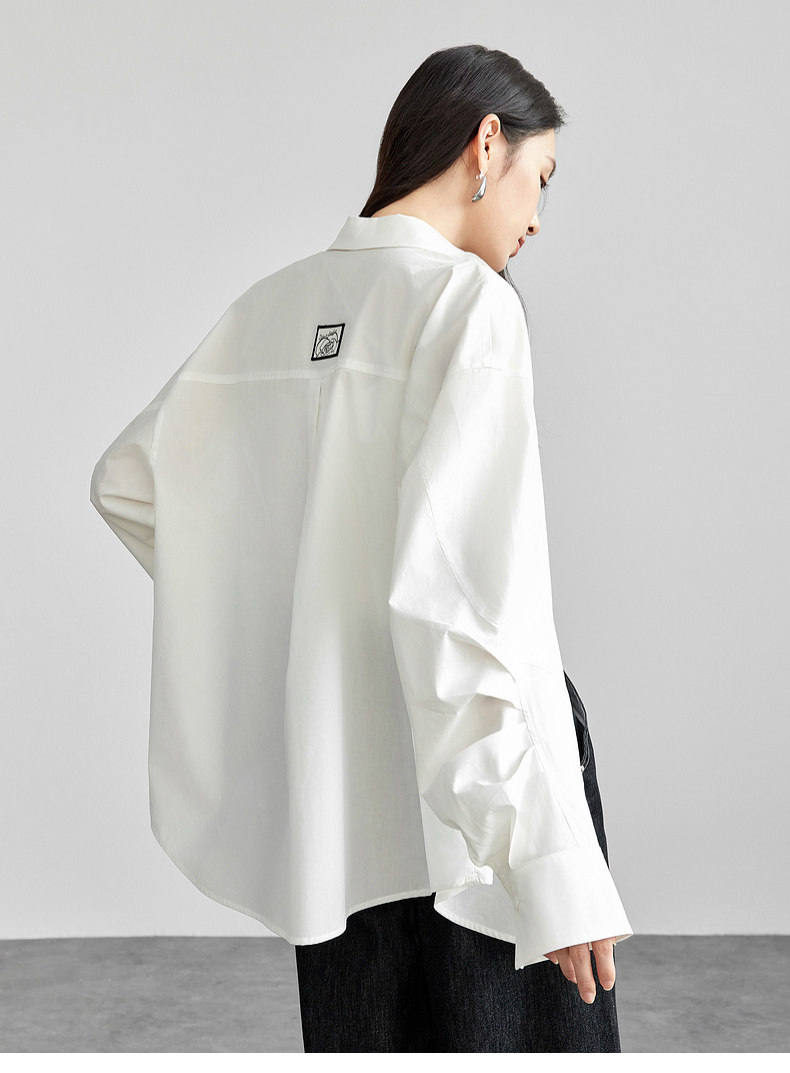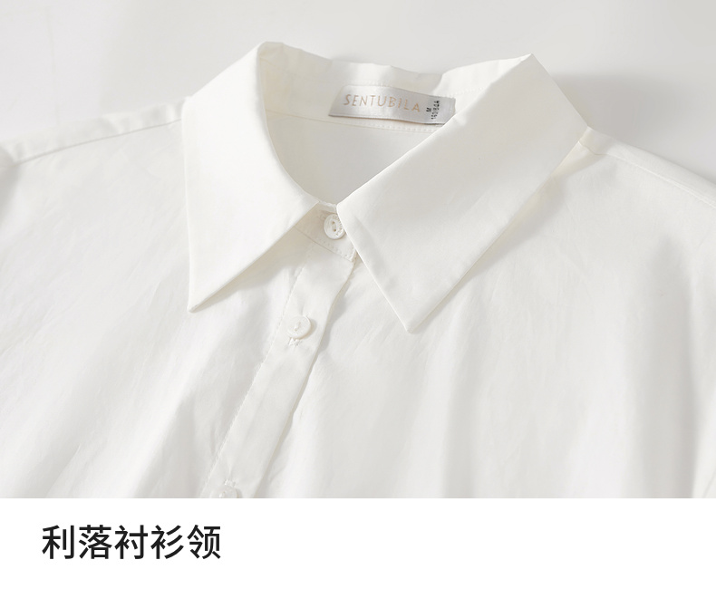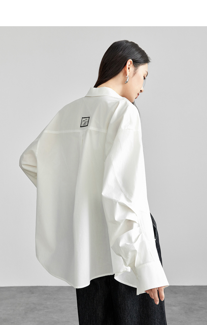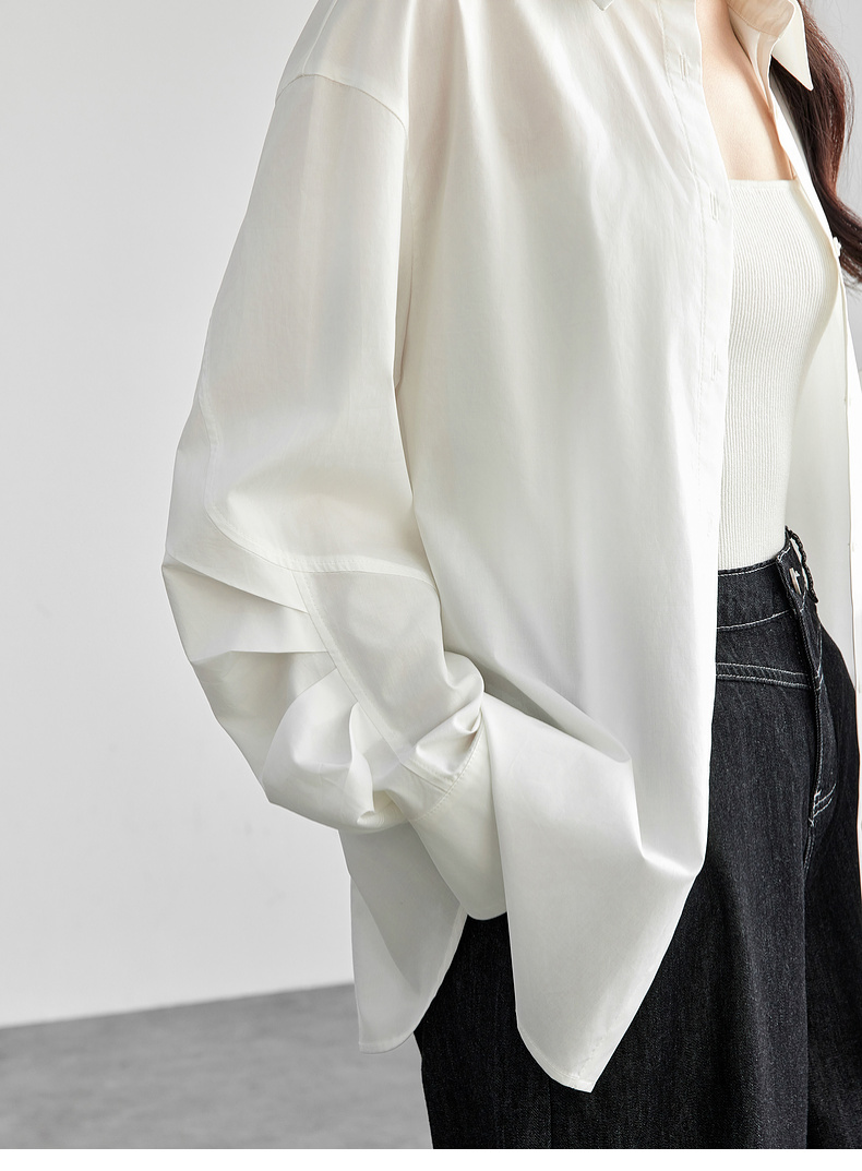 【尚都比拉】玫瑰花章仔通勤系列莱赛尔混纺褶皱长袖宽松H版型气质衬衫-151C58039