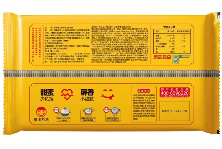 思念 冷冻零添加蔗糖大黄米黑芝麻汤圆 400g(12g/颗)/袋