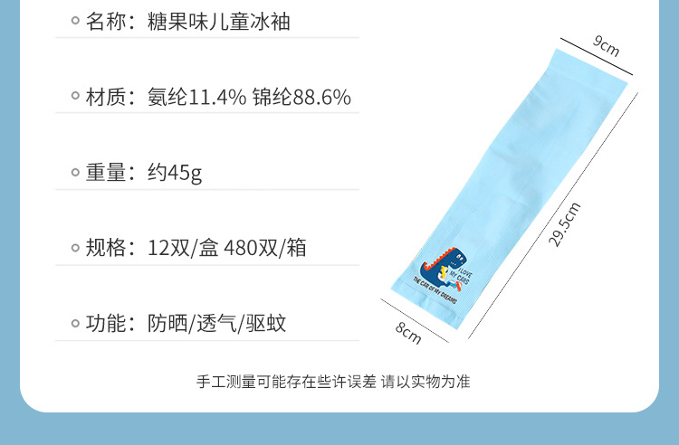 糖果味儿儿童冰袖422儿童冰袖防晒袖套宝宝夏季冰丝套袖男童女童户外可爱薄款冰袖