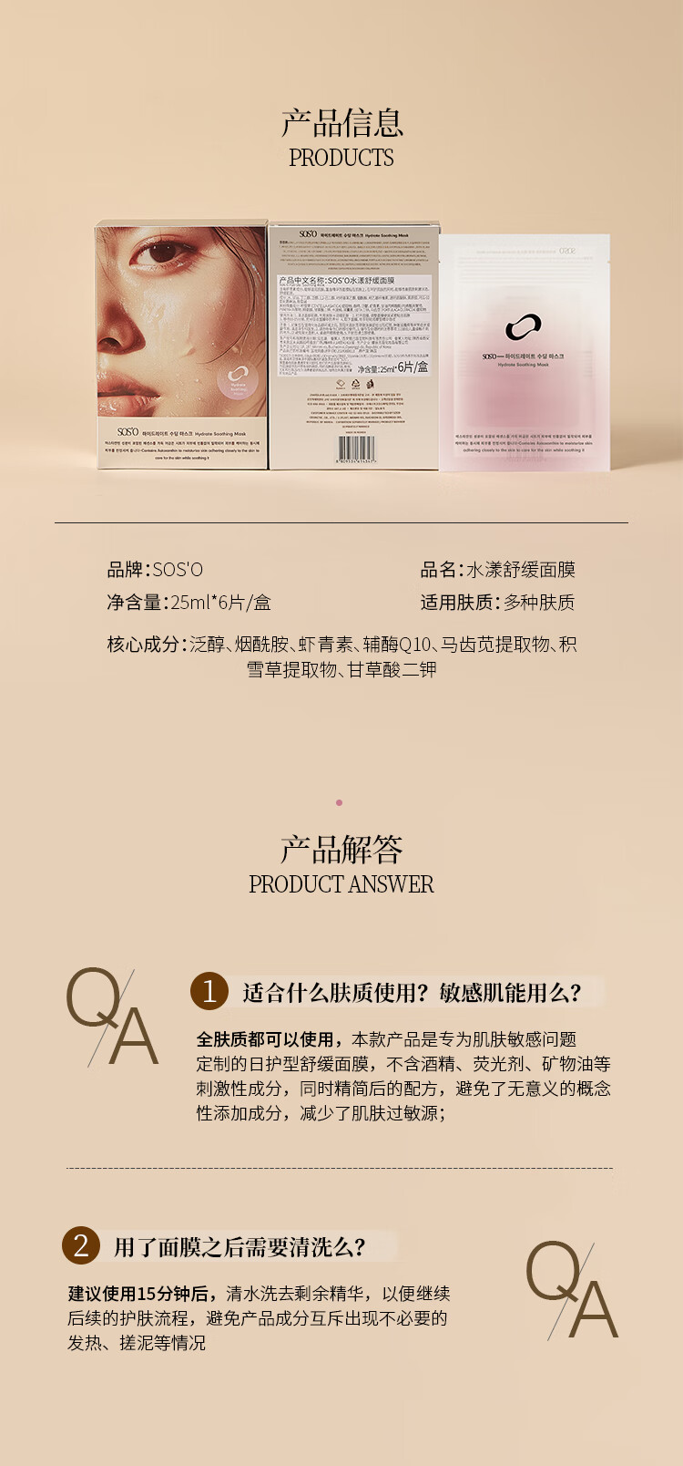 SOS'O水漾舒缓面膜 12片/盒