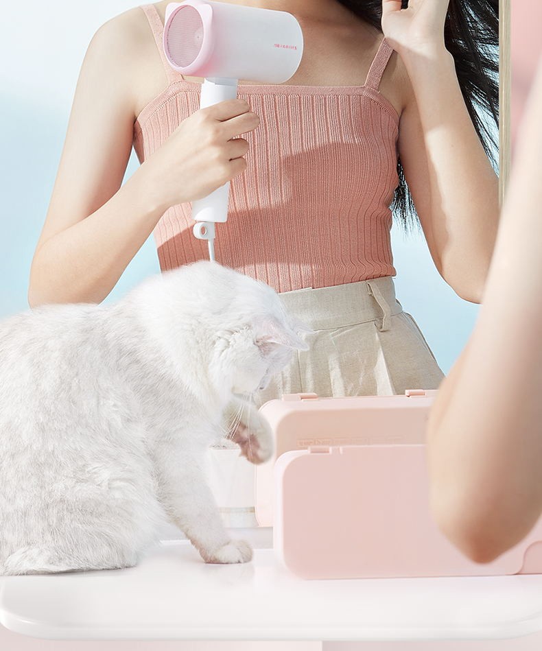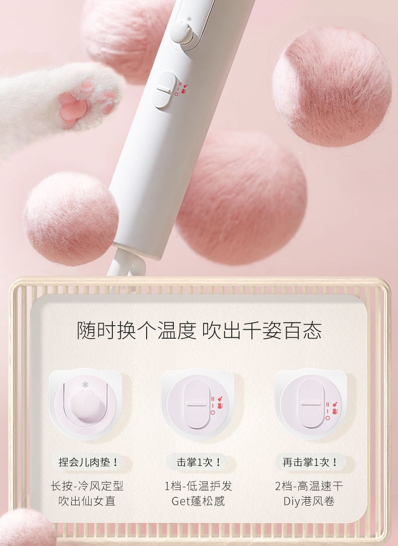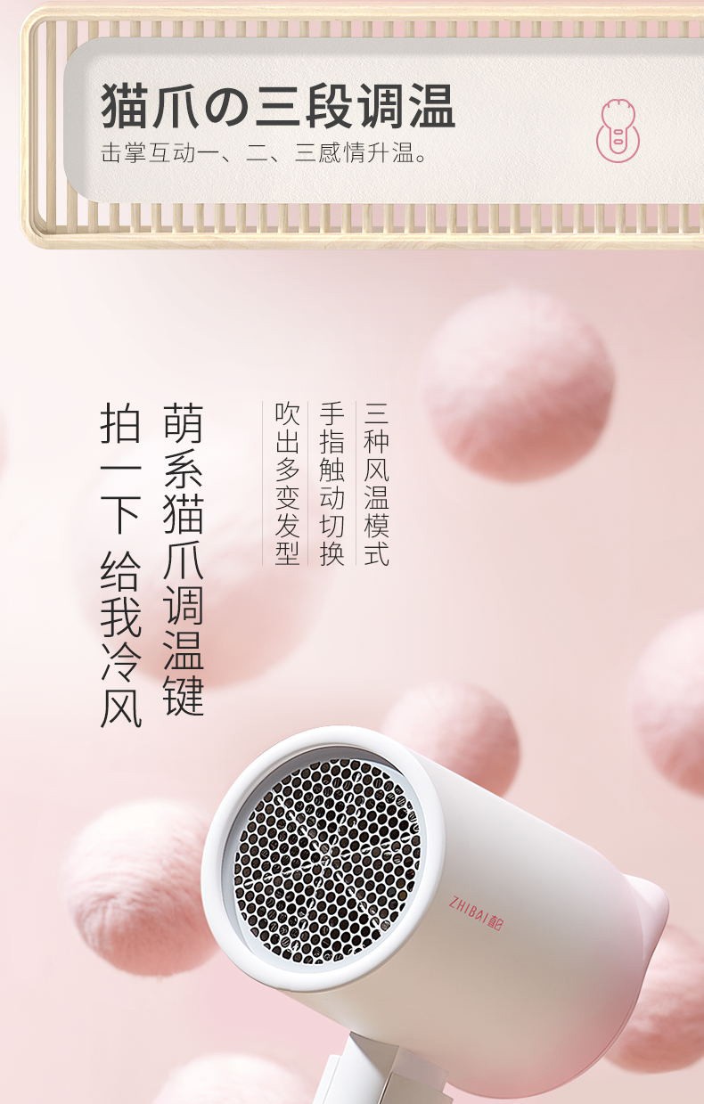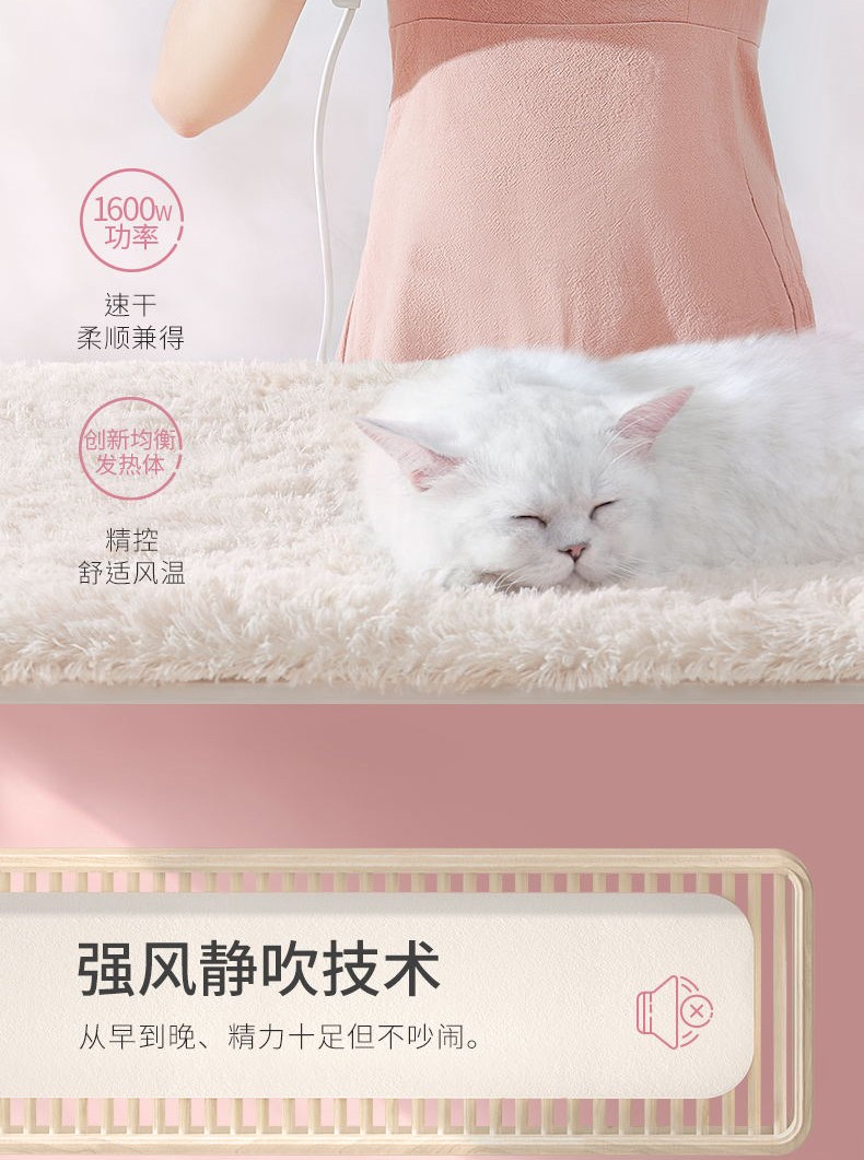直白负离子电吹风HL210/1600W负离子家用吹风机可折叠速干大功率学生宿舍护发吹风筒 可爱樱花猫 HL210