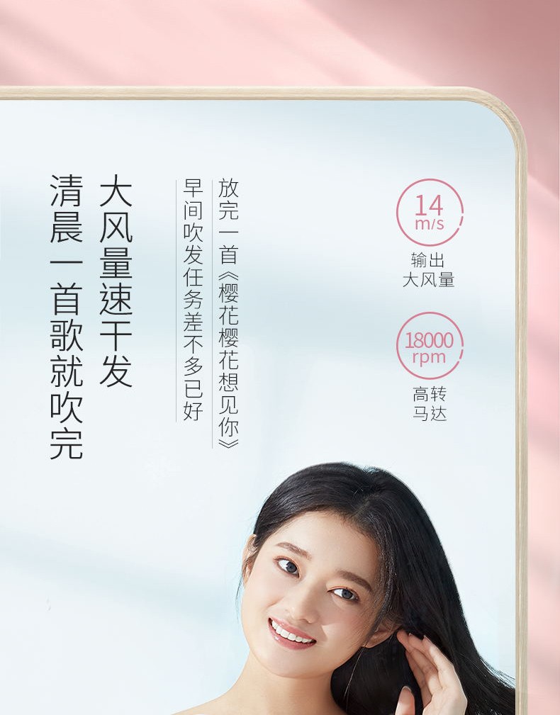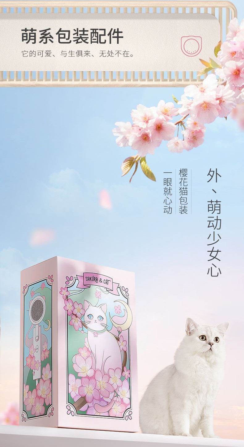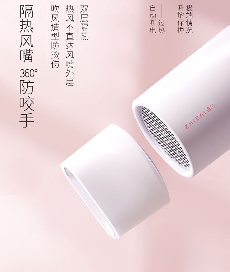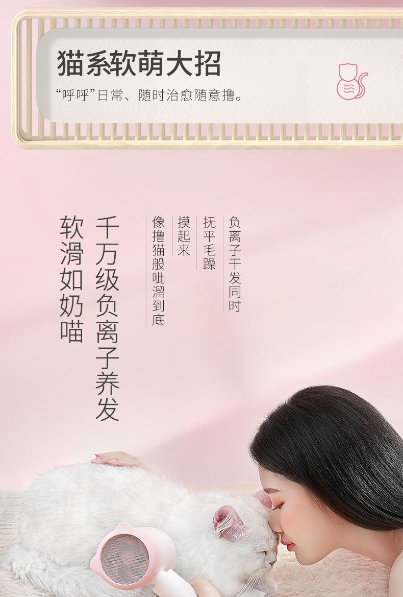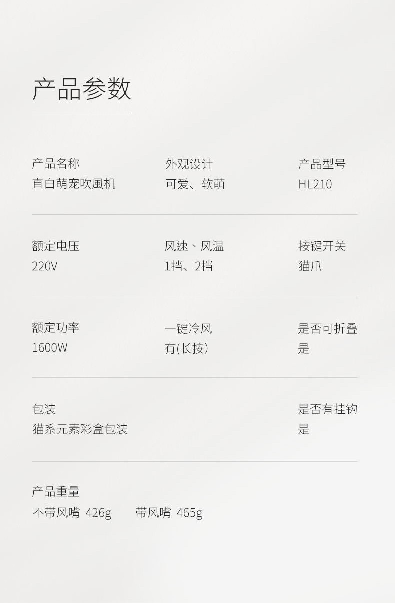 直白负离子电吹风HL210/1600W负离子家用吹风机可折叠速干大功率学生宿舍护发吹风筒 可爱樱花猫 HL210
