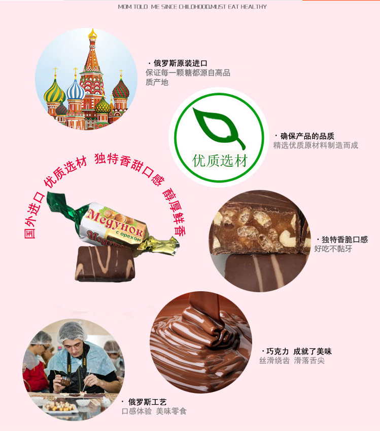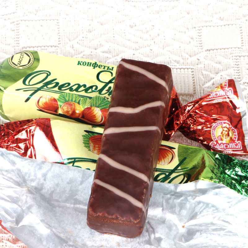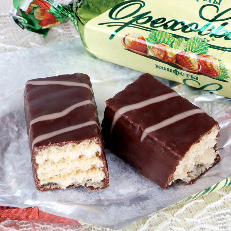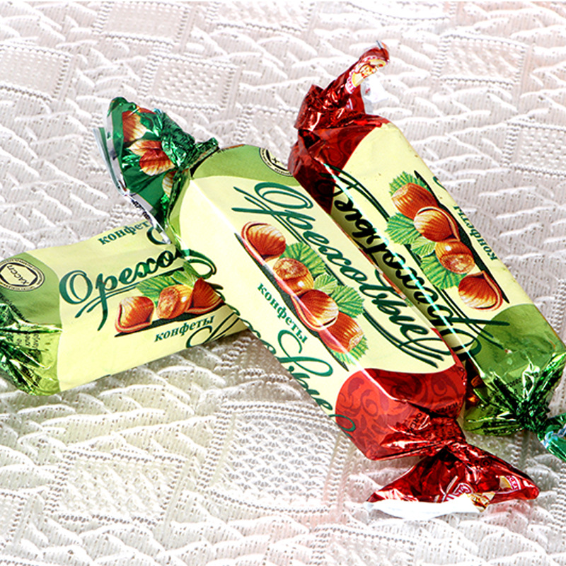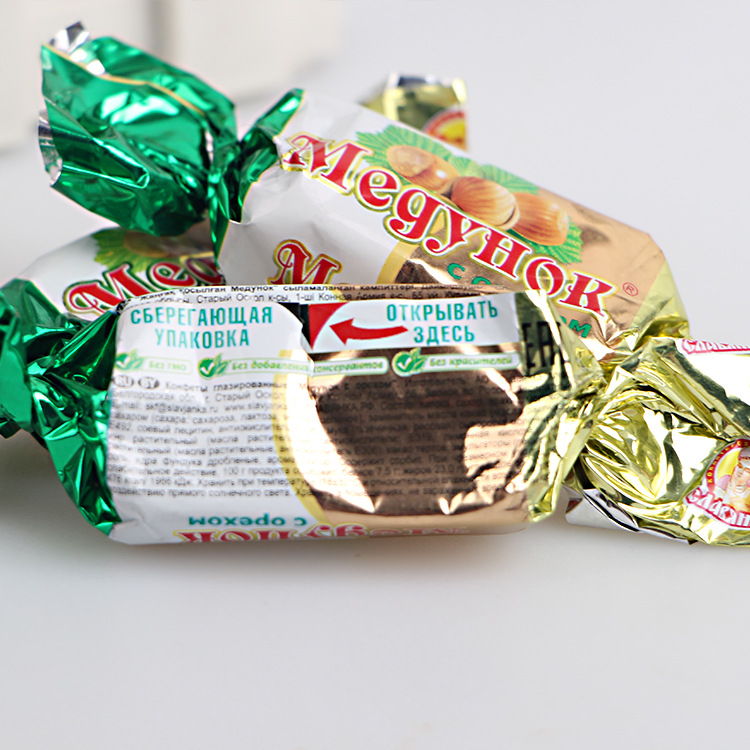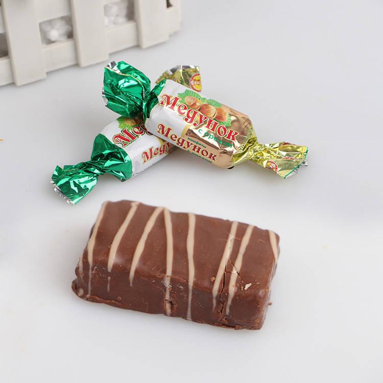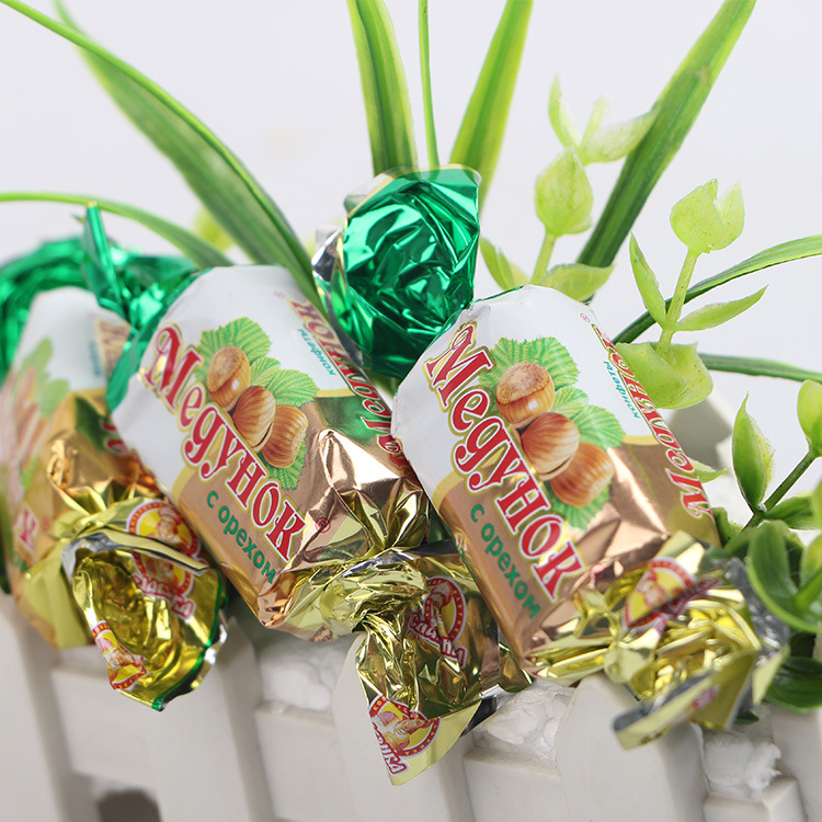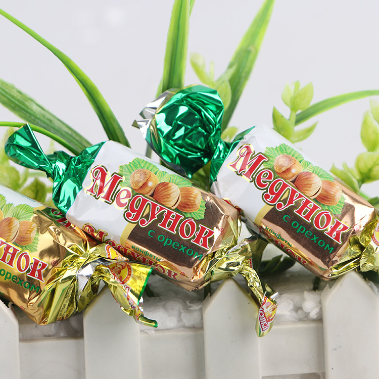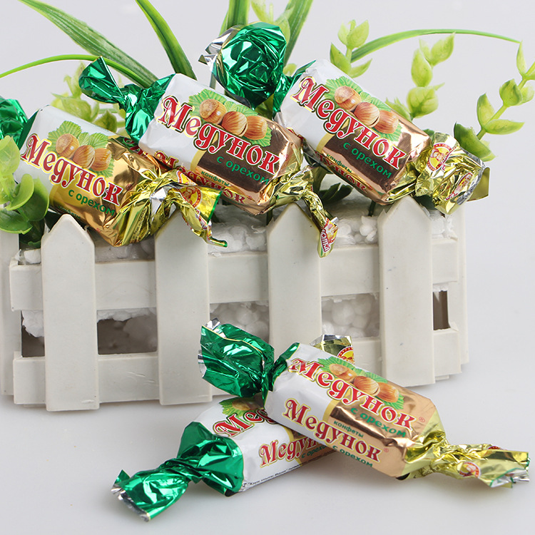 【中欧班列精选】俄罗斯糖果三颗榛子绿色 四颗榛子红色 巧克力夹心果仁威化糖休闲零食礼包婚庆500g/袋