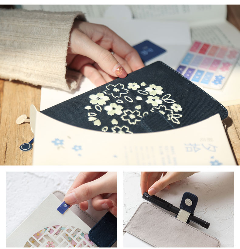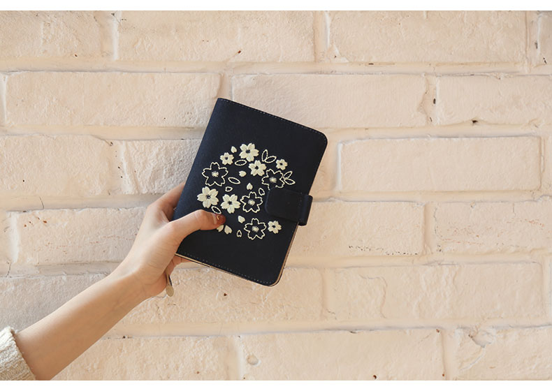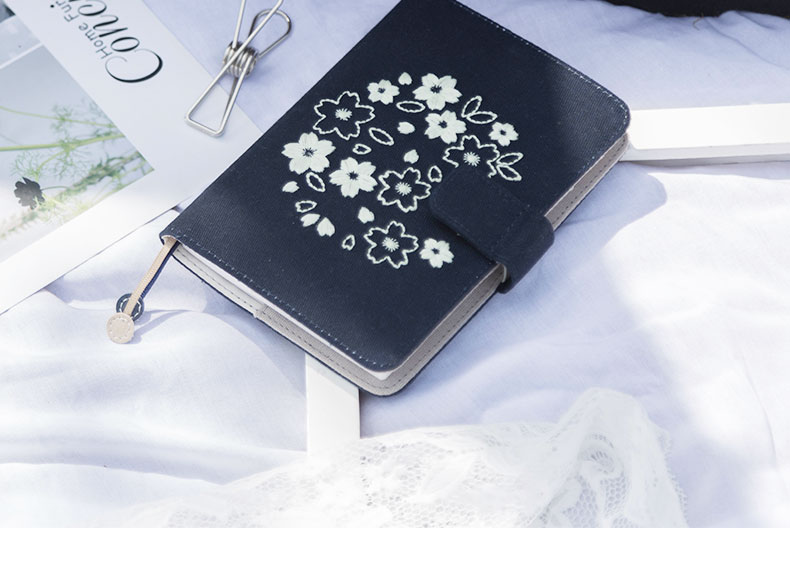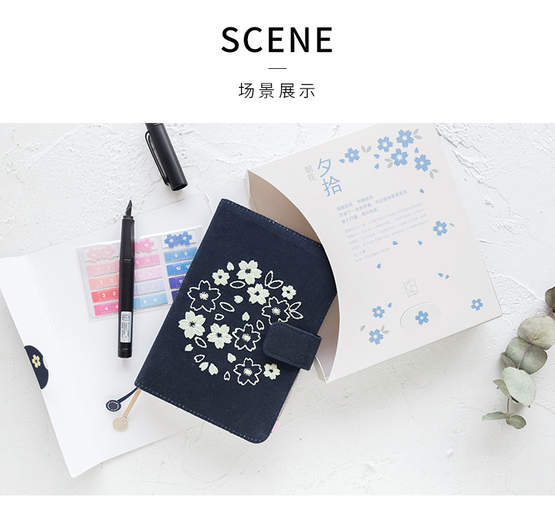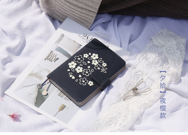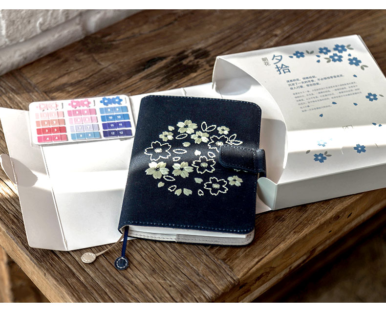 广博-夕拾夜樱DTB61131kinbor樱花系列夜樱手帐本自填式樱花套装日历日程本布面刺绣古风手账笔记本A6手帐本