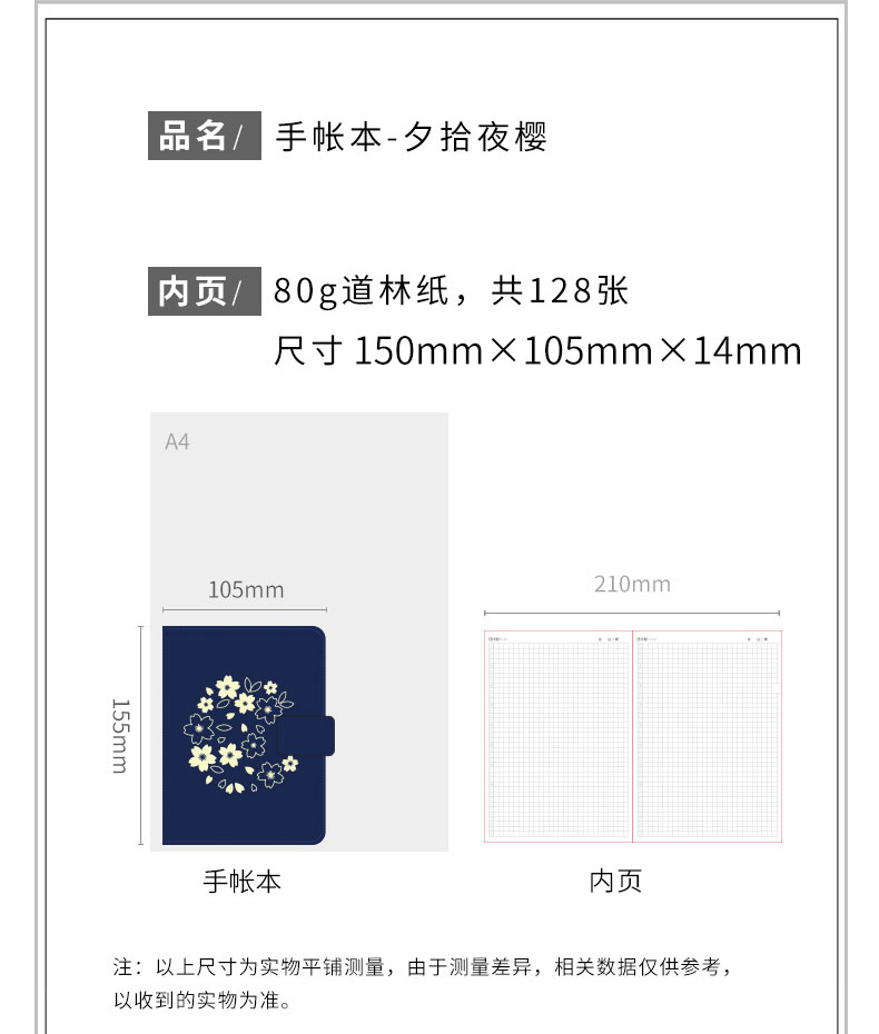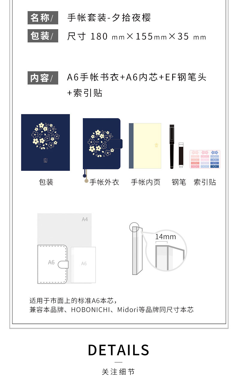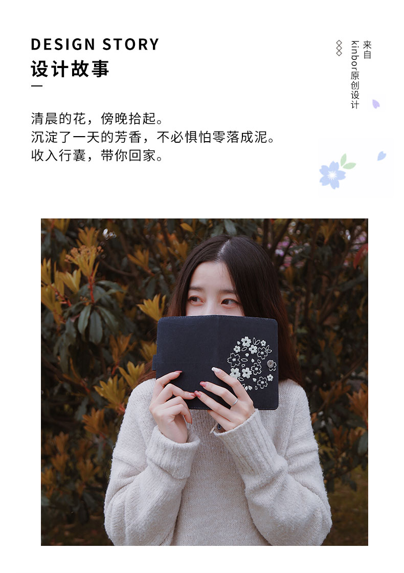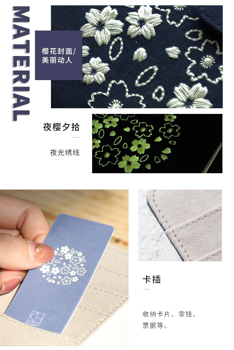 广博-夕拾夜樱DTB61131kinbor樱花系列夜樱手帐本自填式樱花套装日历日程本布面刺绣古风手账笔记本A6手帐本