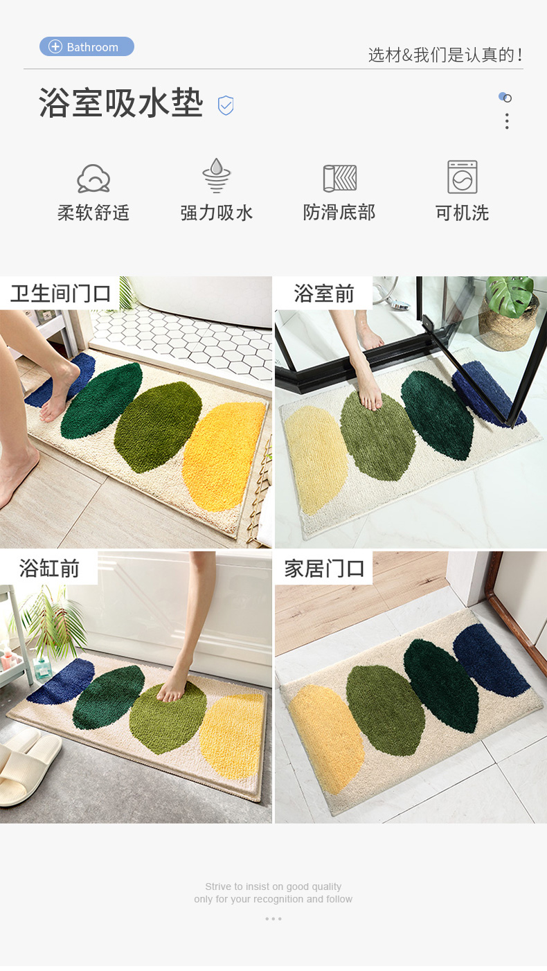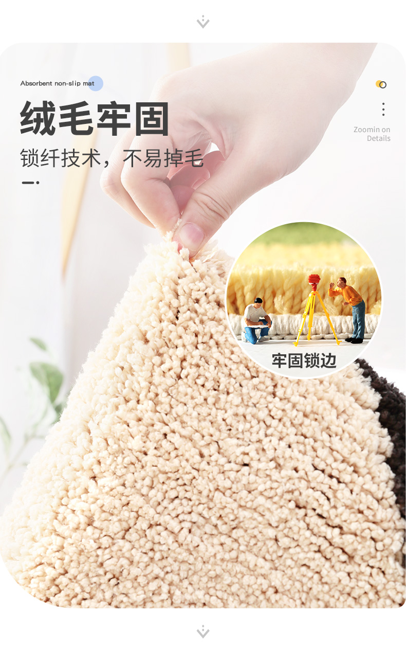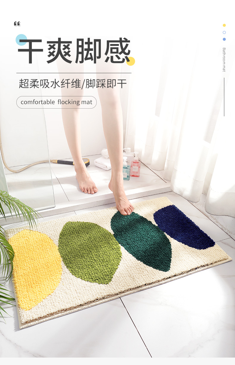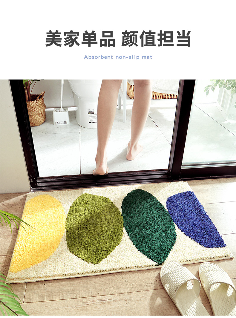 大江植绒地垫柠檬-米黄50*80卧室客厅地毯简约家用厨房卫生间门口吸水防滑脚垫子