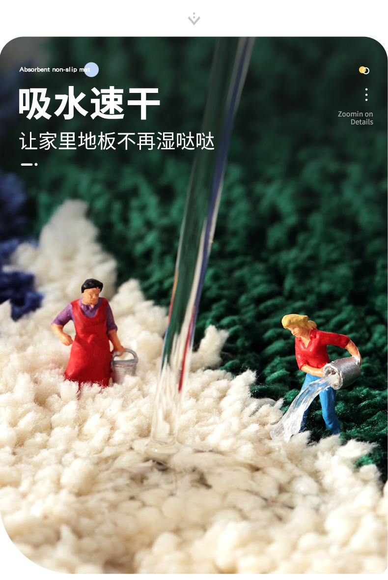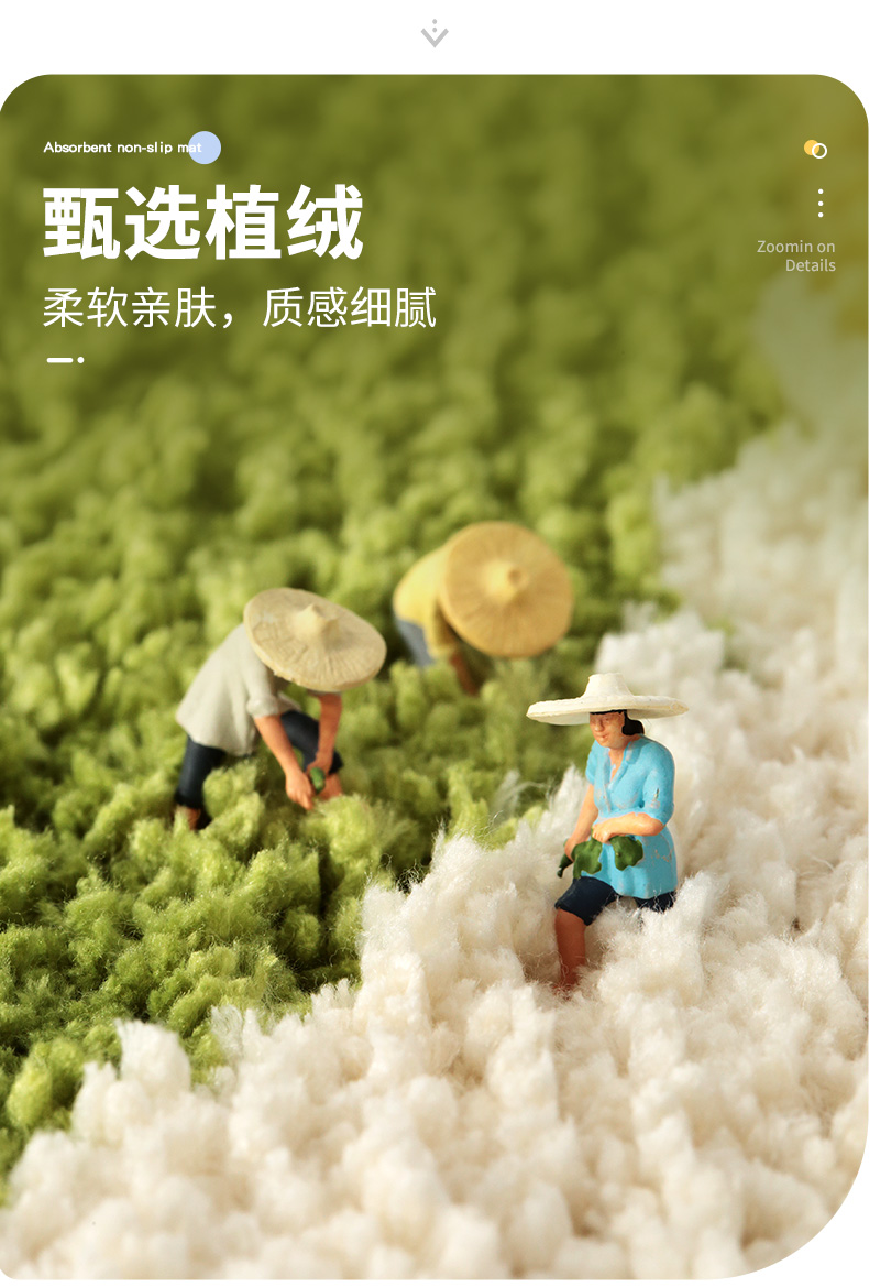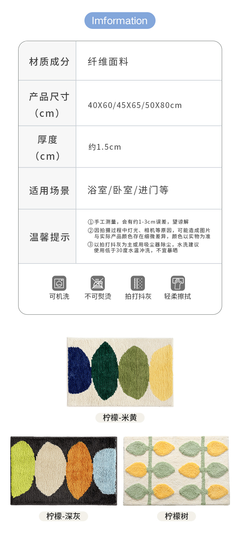 大江植绒地垫柠檬-米黄50*80卧室客厅地毯简约家用厨房卫生间门口吸水防滑脚垫子