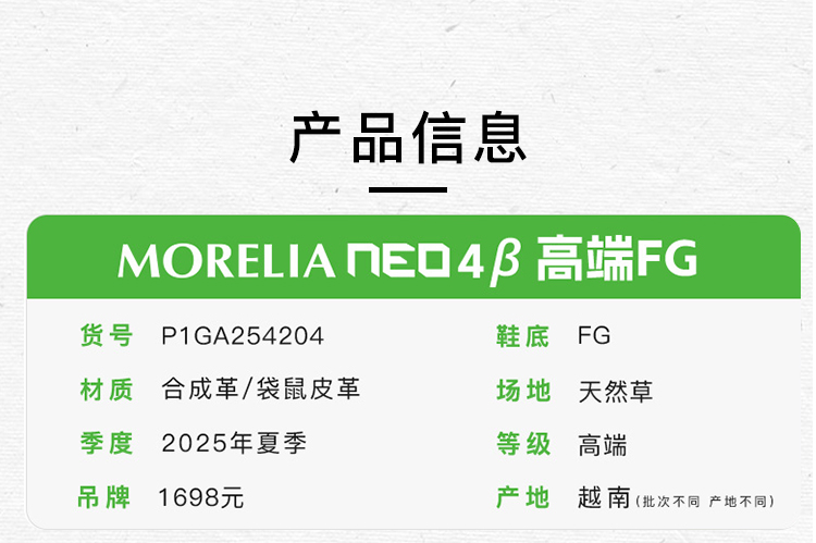 小李子美津浓莫雷拉MORELIA NEO4β高端FG长钉袋鼠皮足球鞋成人男