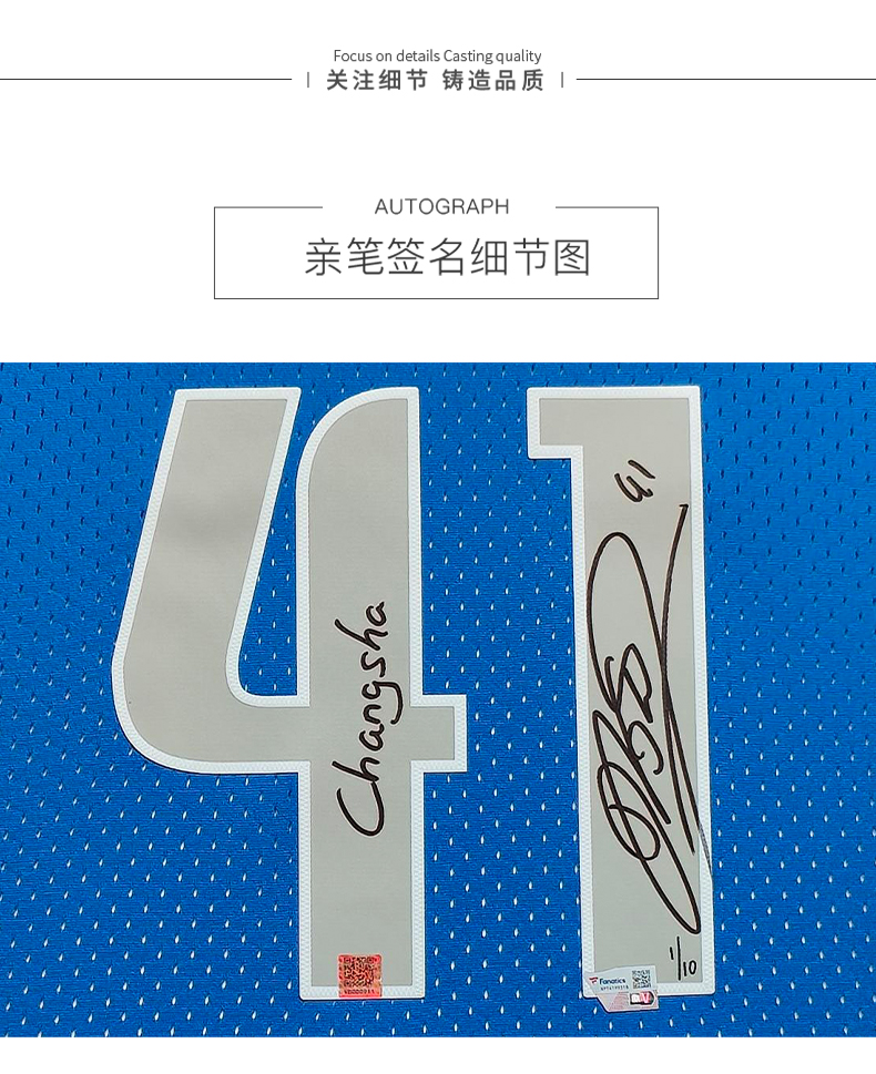 收藏系列 诺维斯基 长沙城市限量版 亲笔签名球衣