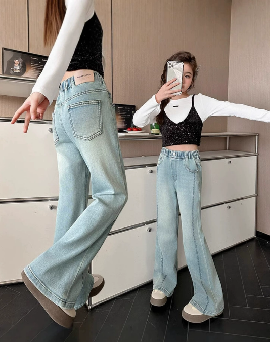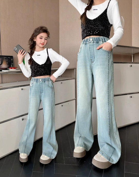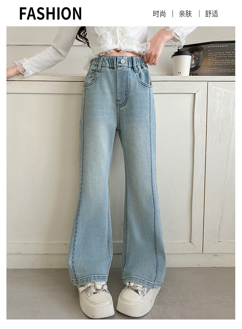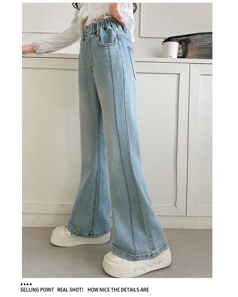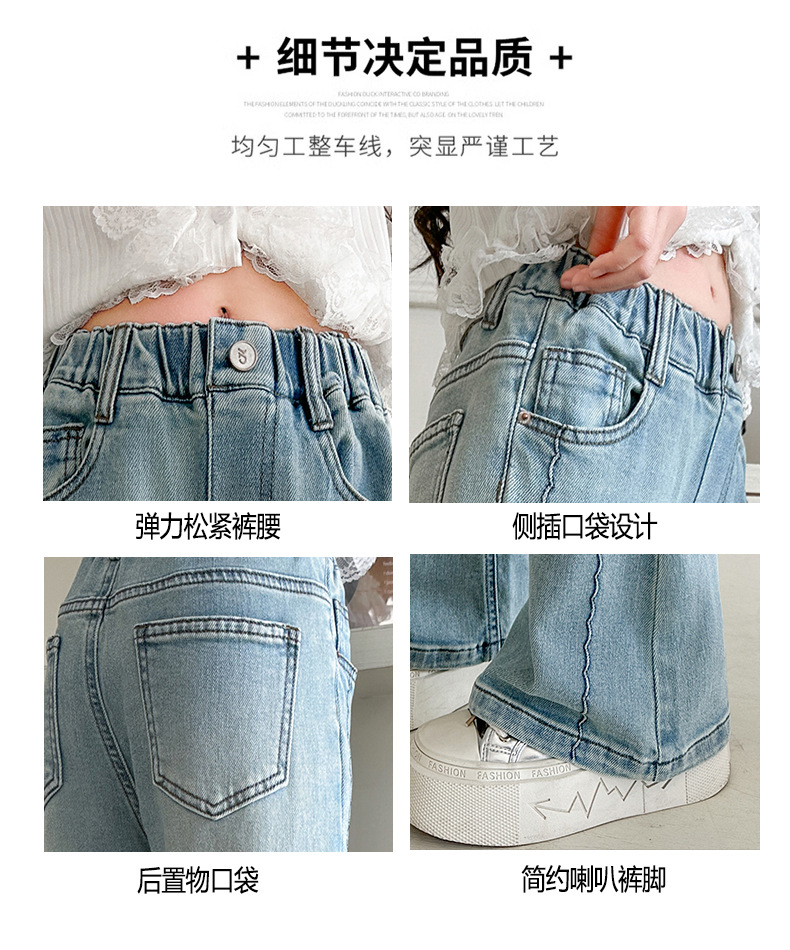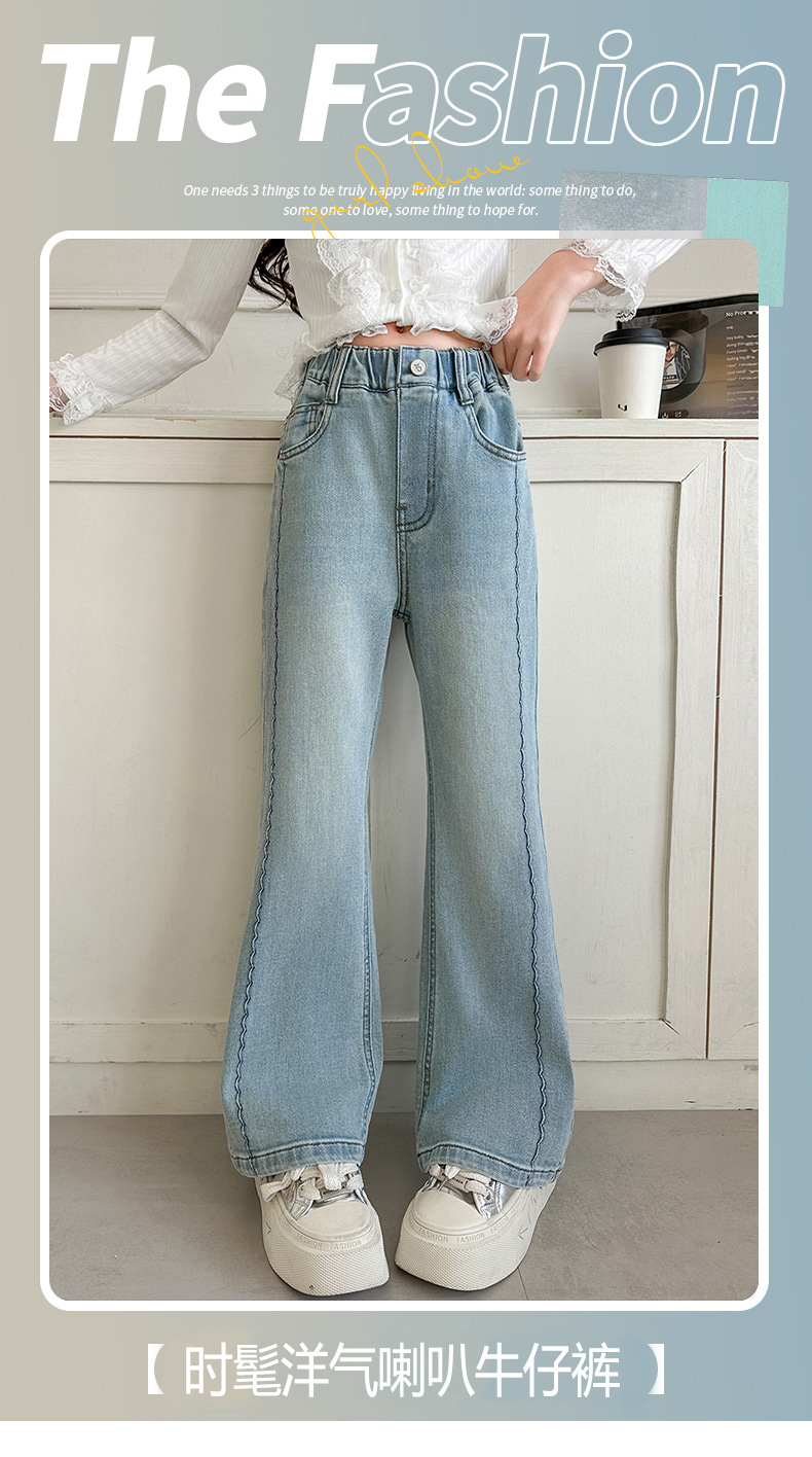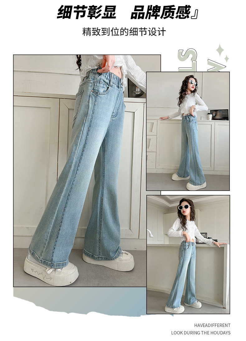 【春日童装 | 吾家波浪工艺喇叭裤】可穿至170码,面料柔软亲肤,不易变形好打理,细节设计精致到位,肤感舒适透气,腰部弹力设计,侧插口袋方便装物,风格简约百搭。