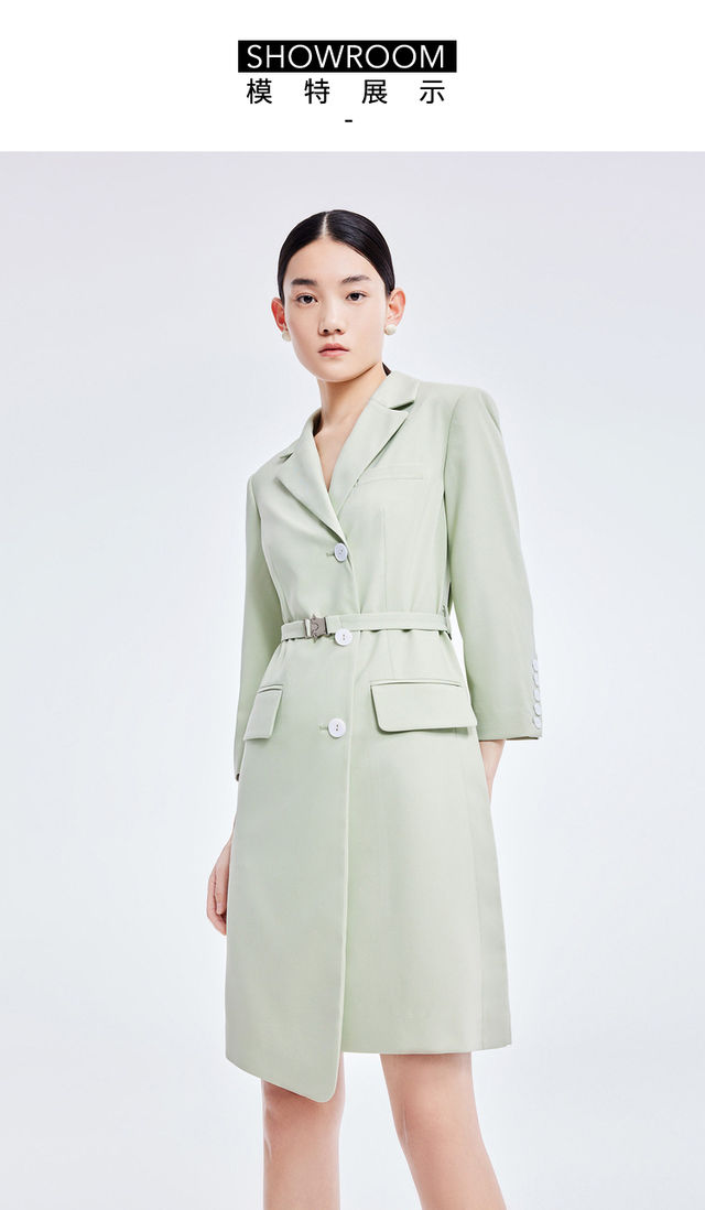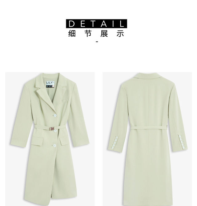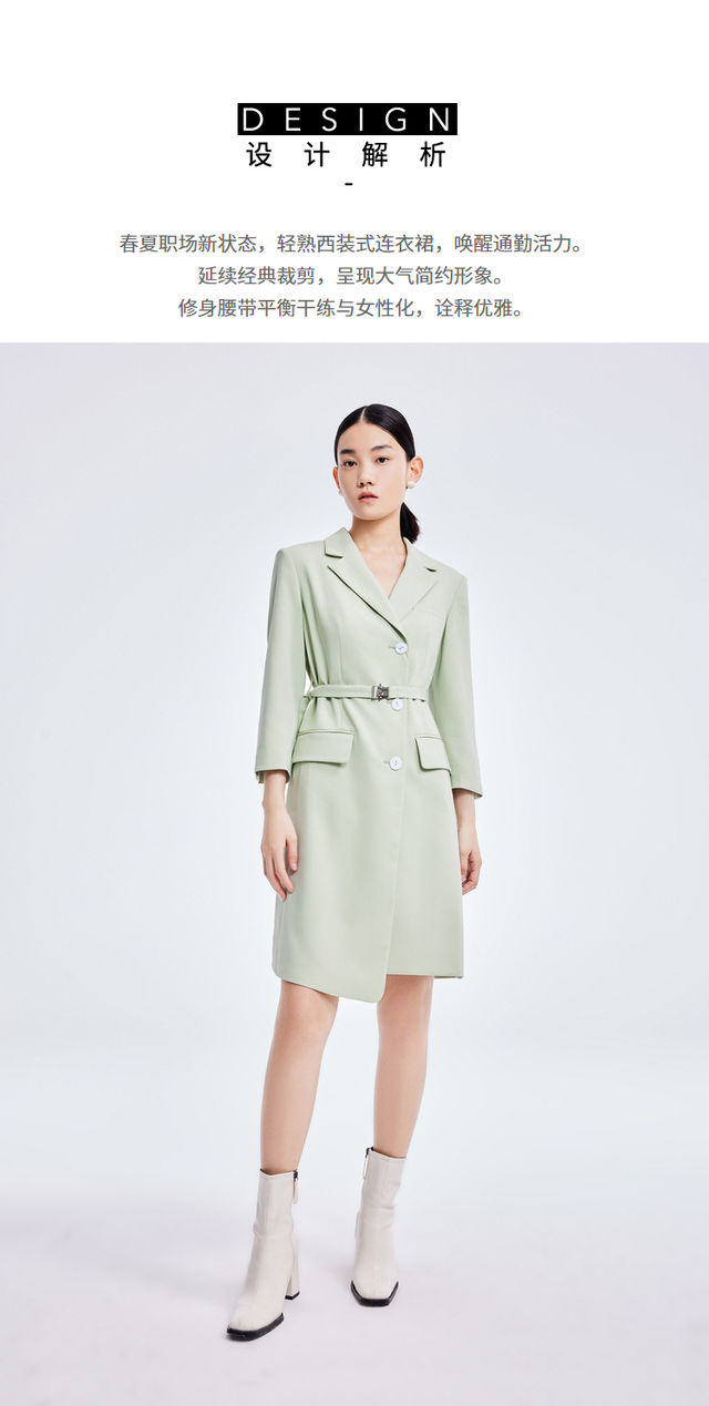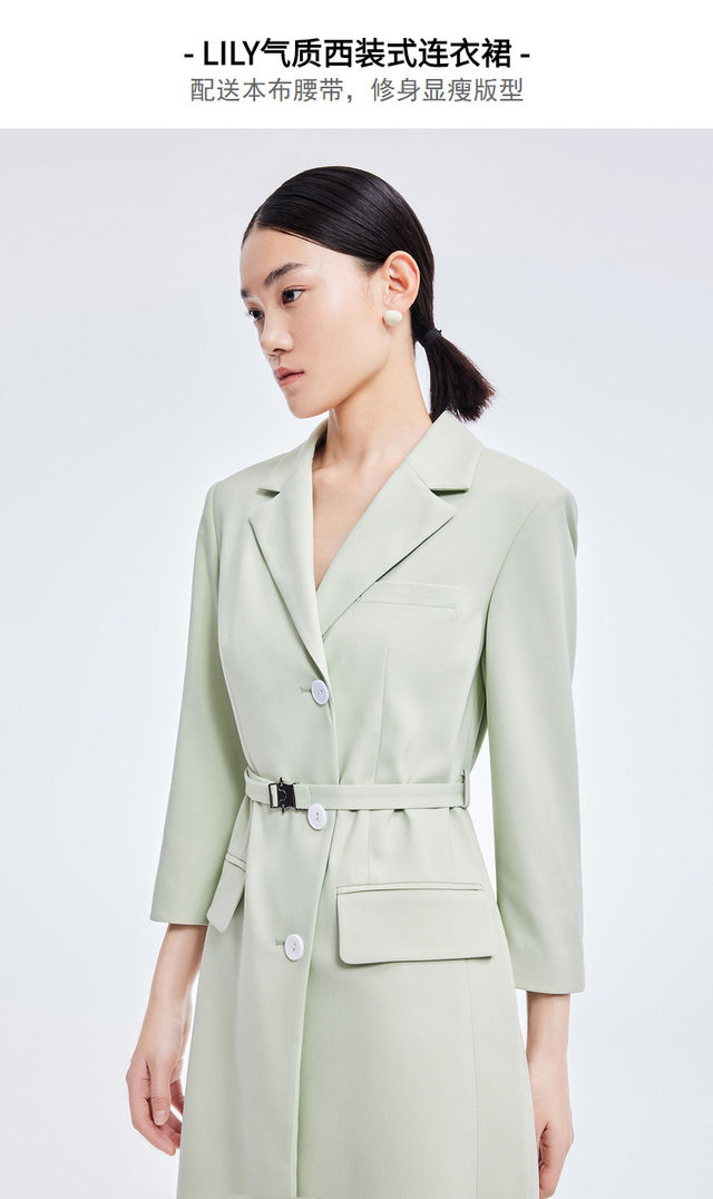 LILY2022夏季新款女装气质纯色通勤款显瘦西装式连衣裙122210C7559