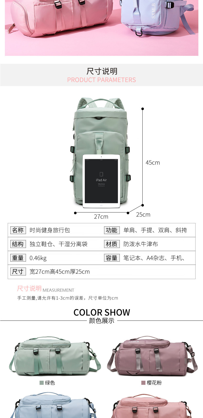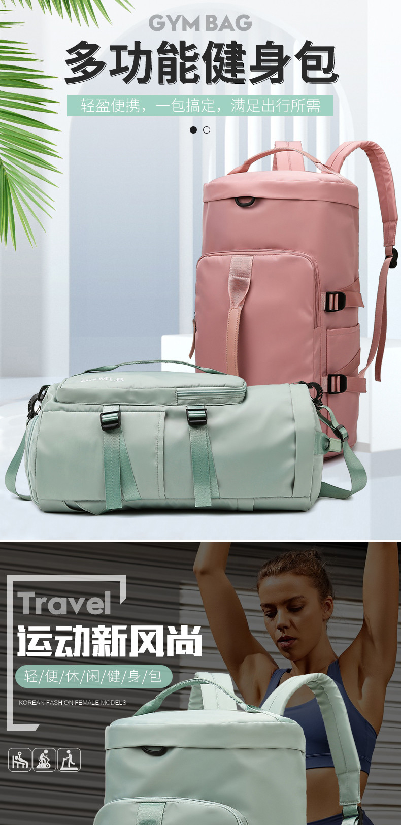 多功能时尚健身旅行包(八色可选)