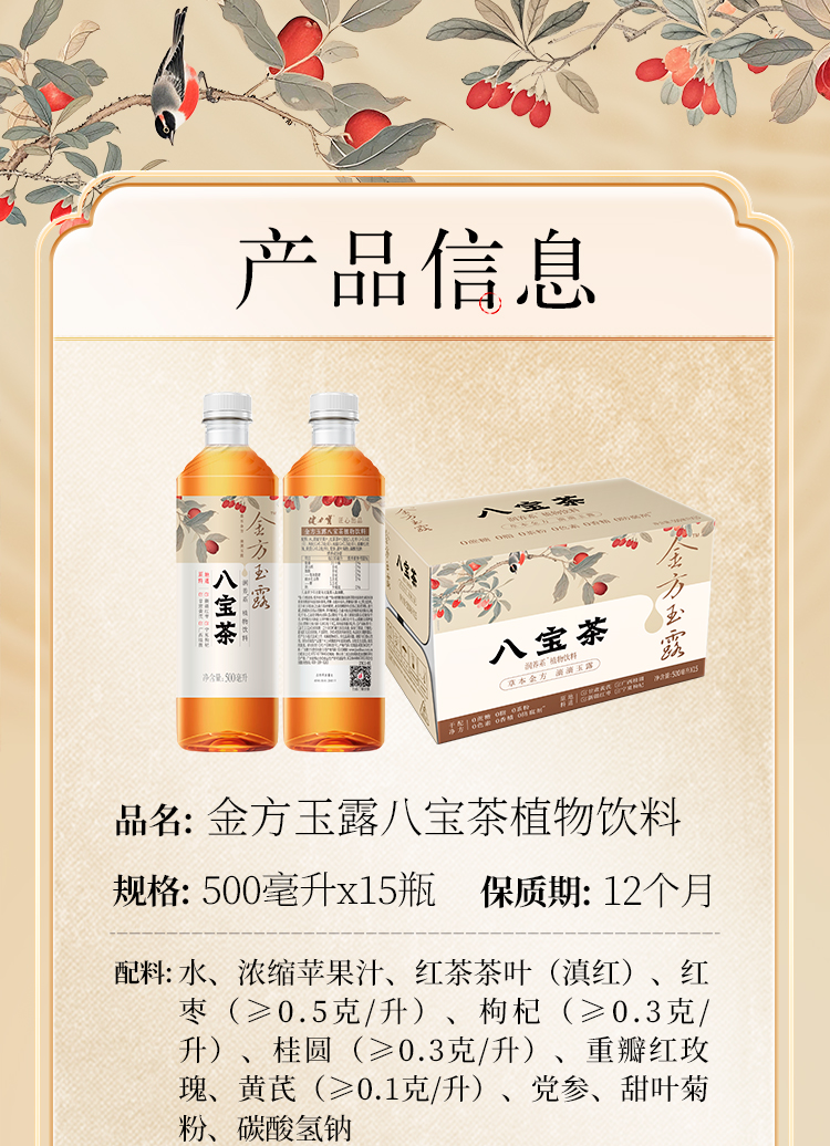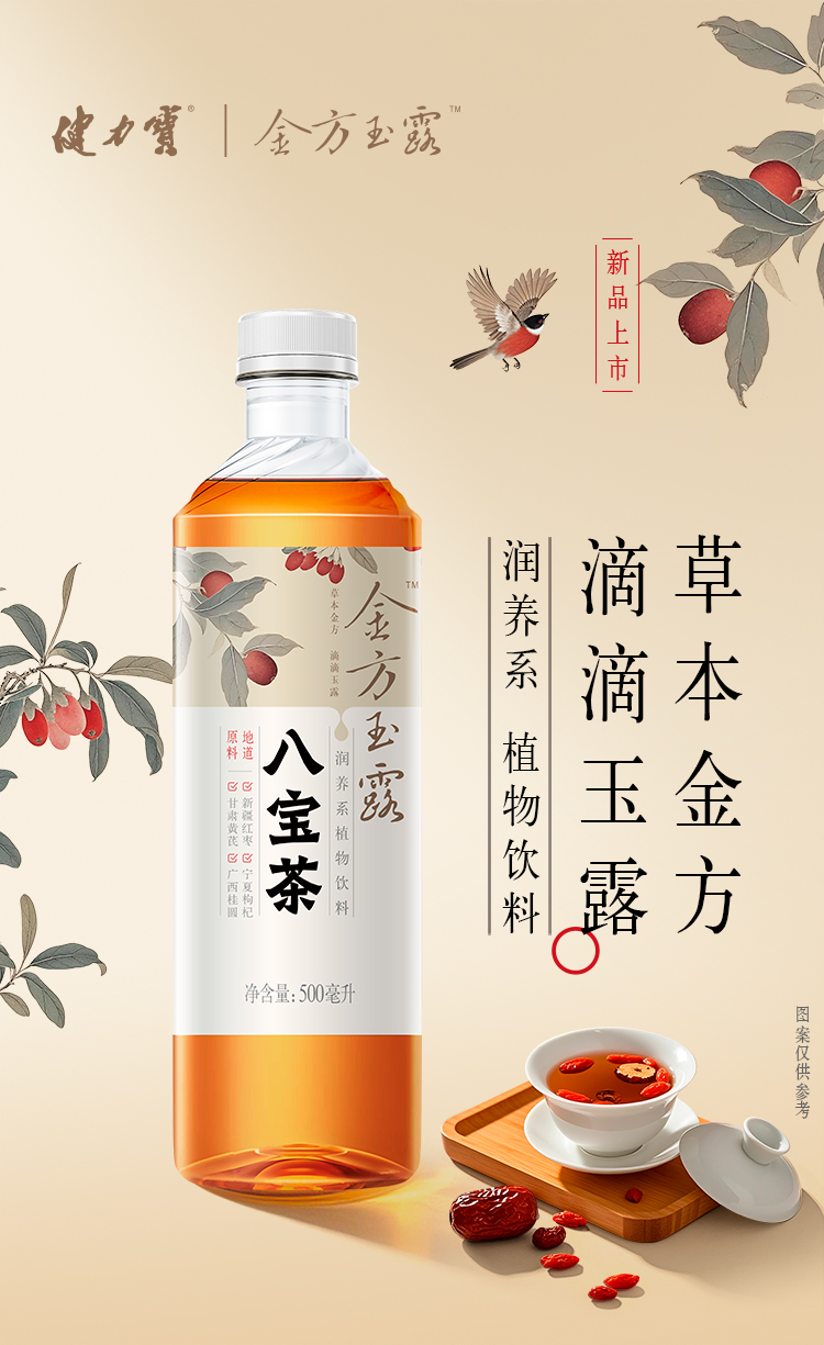 健力宝金方玉露八宝茶植物饮料500ml*15瓶整箱 红枣枸杞桂圆茶 滋补饮品