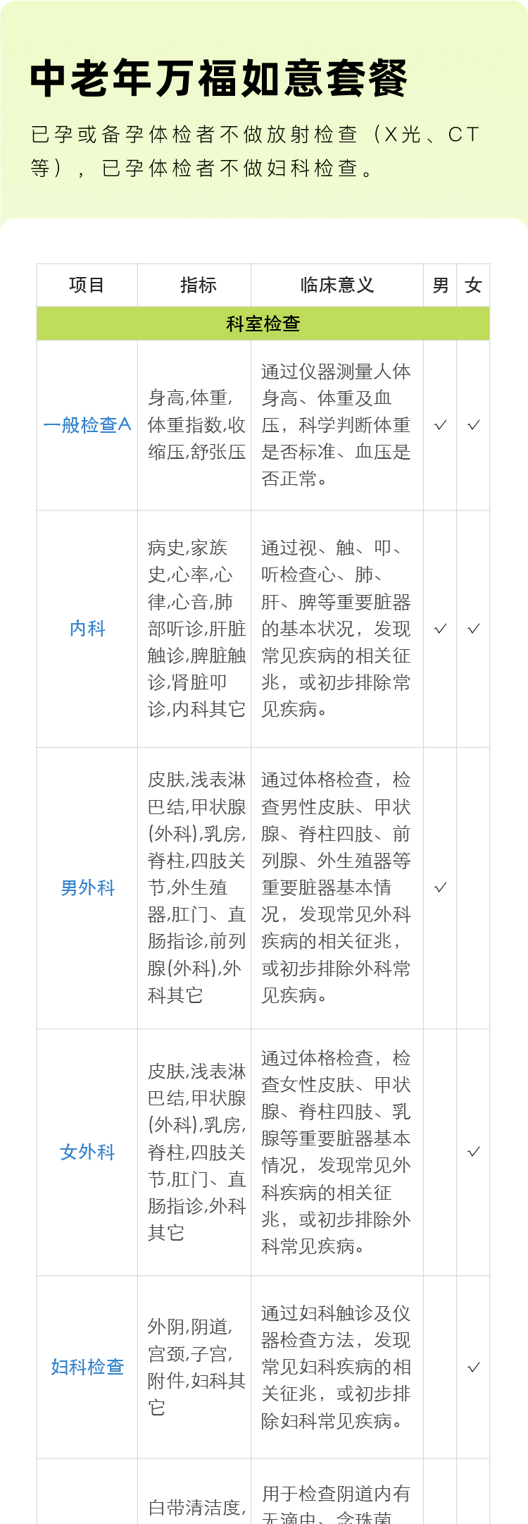 中老年万福如意套餐(男)适用爱康国宾/国宾VIP/卓悦