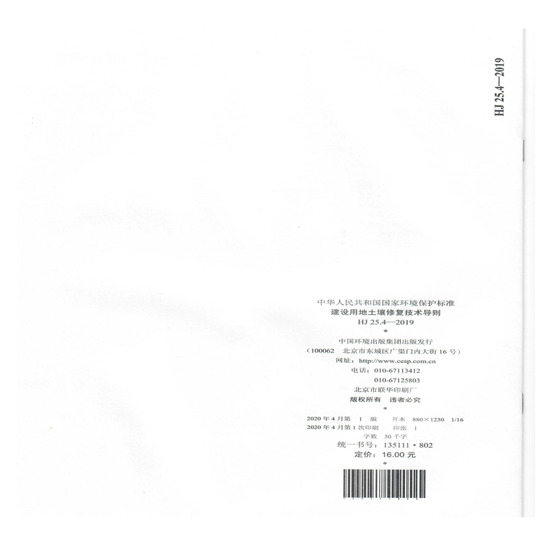HJ 25.4—2019 建设用地土壤修复技术导则 135111·802