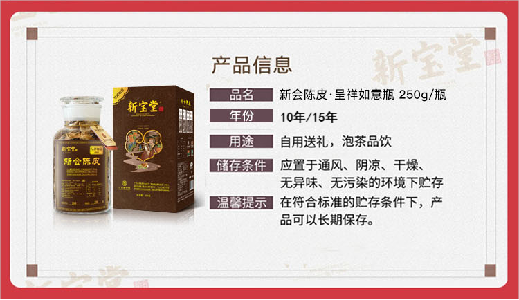 【新宝堂】呈祥如意瓶250g(10年/15年新货陈皮)