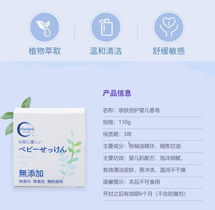 琪优卡(chucapa)婴儿无味香皂 日本原装进口儿童孕妇沐浴洗手皂 110g