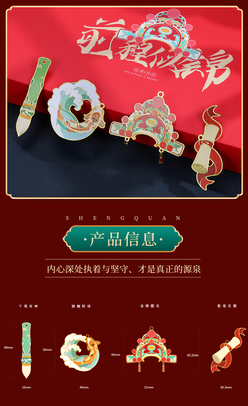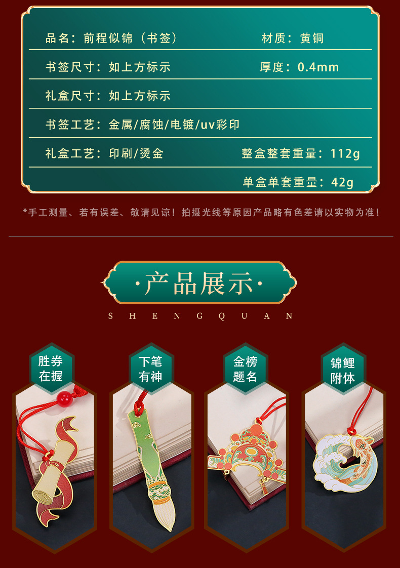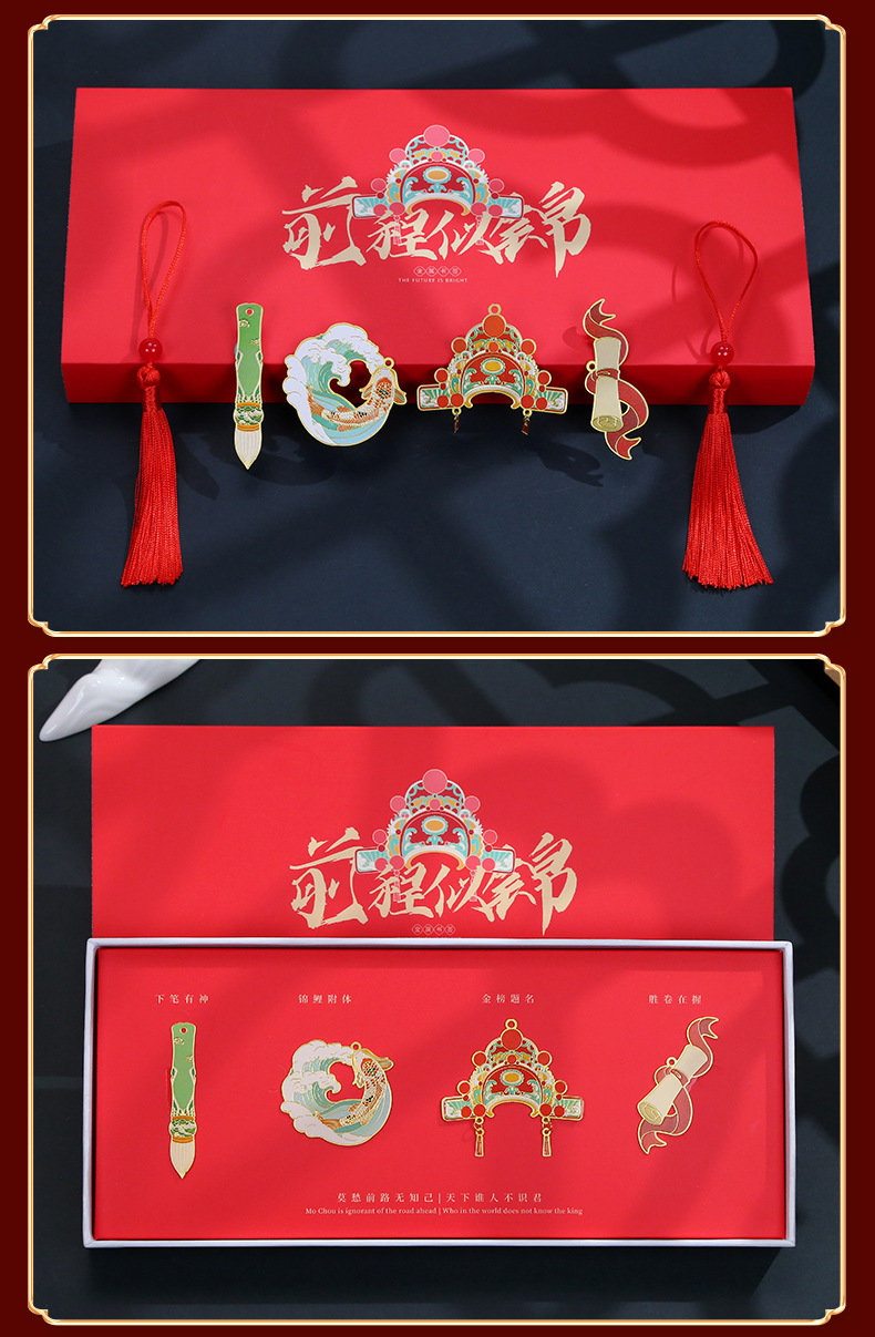 「礼盒装!四款可选」前程似锦国潮文创礼物金属书签礼盒装 学生祈福礼品学生考试送礼文化用品