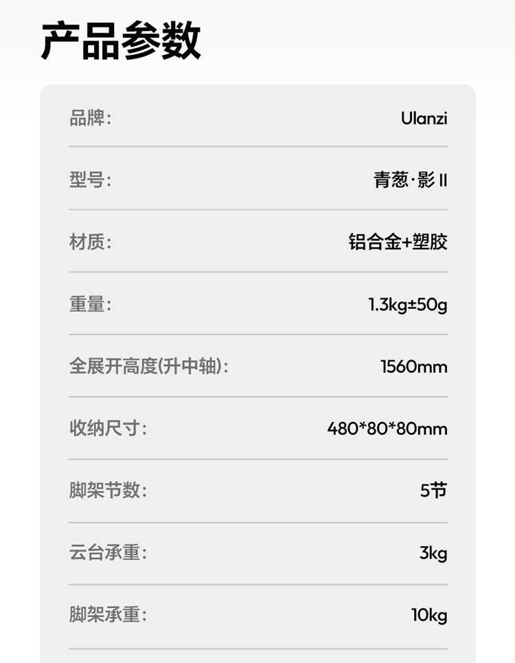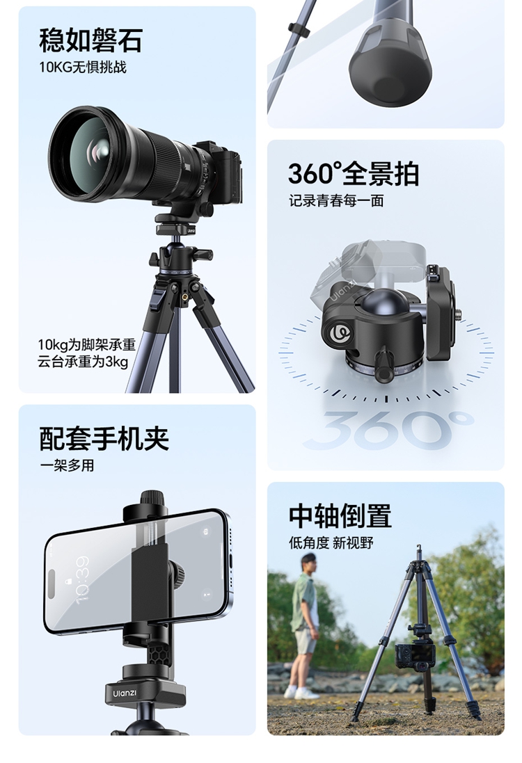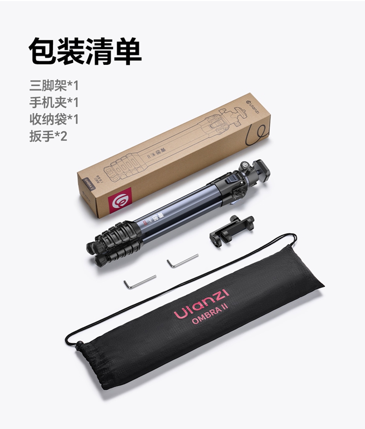 Ulanzi优篮子 青葱-影∥金属球头云台三脚架二代手机微单单反相机专业便携支架旅游拍照摄影摄像户外三角架