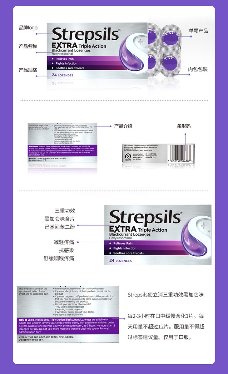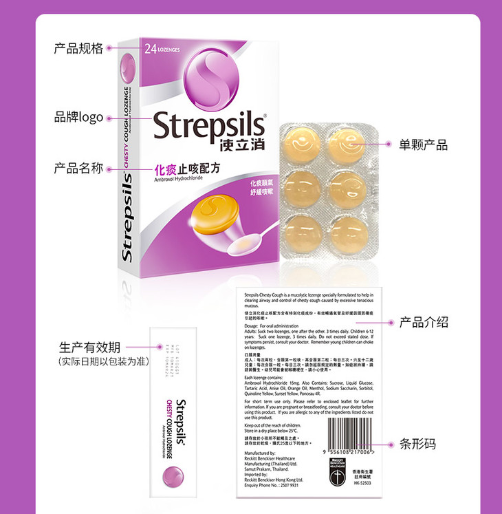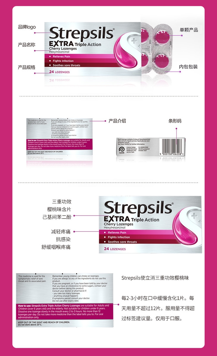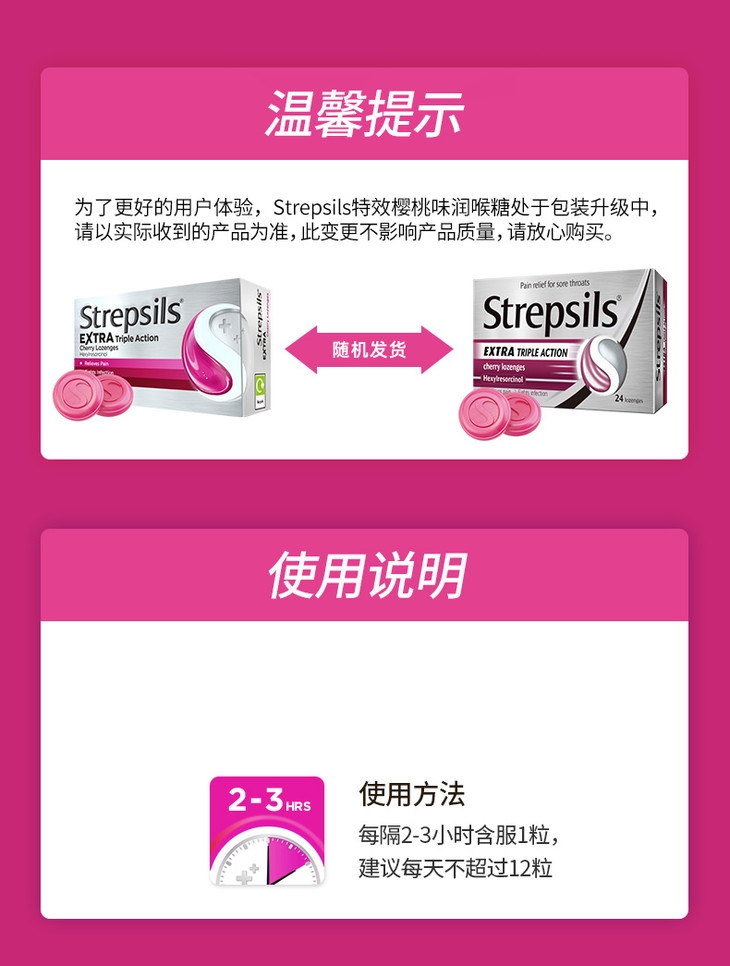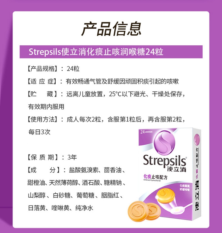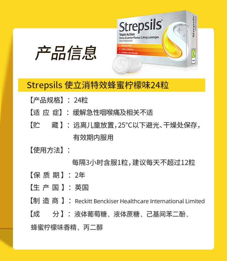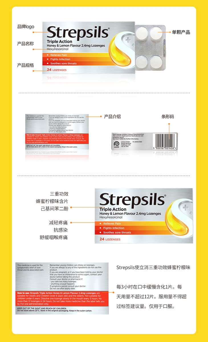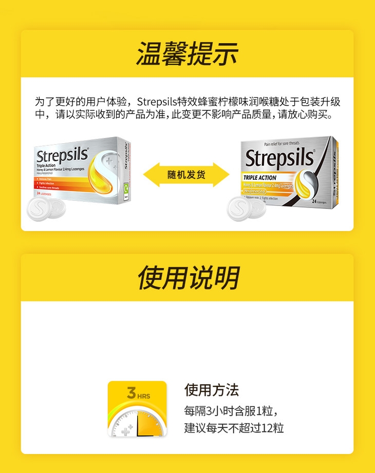 | Strepsils使立消润喉糖,蜂蜜柠檬保质期2年,其它3年 | ||||
